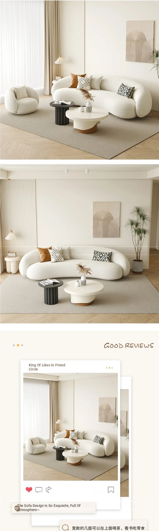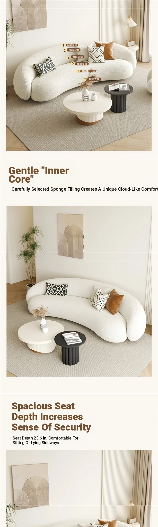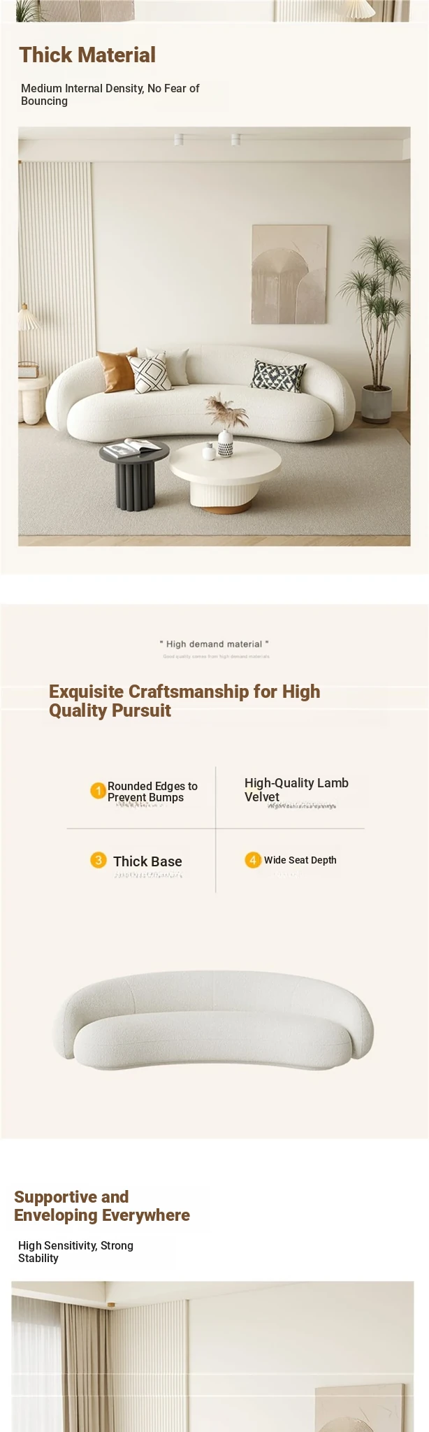 French Curved Lamb Velvet Sofa - Cozy Cream Style for Small Living Rooms, Creative Wabi-Sabi Sofa Set, Perfect for Modern Homes
