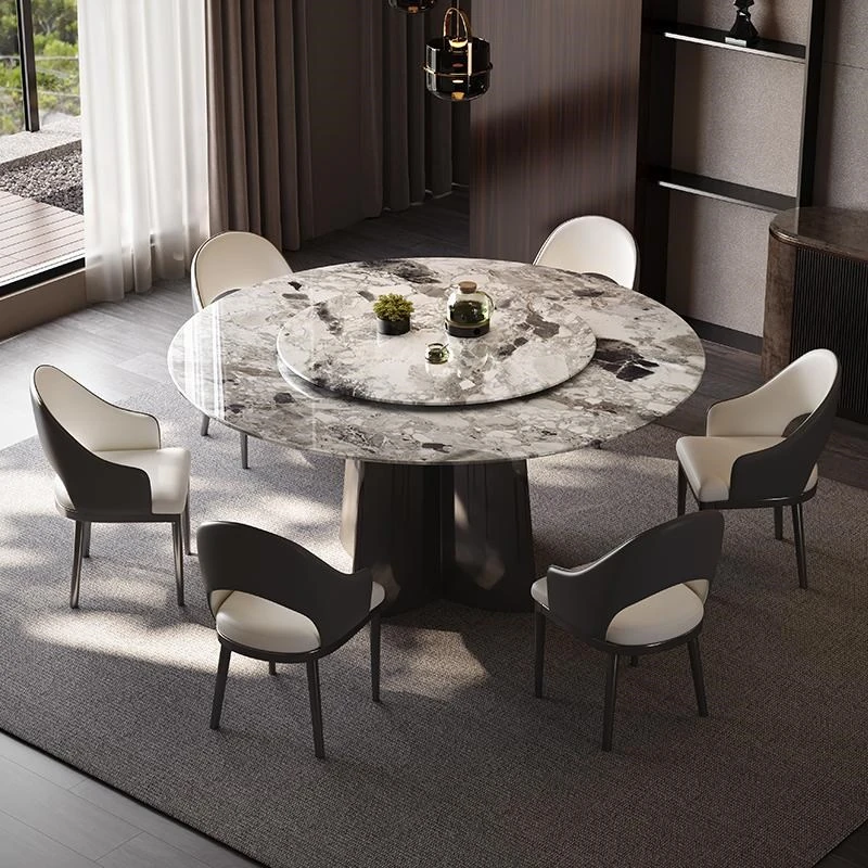 Italian Luxe Super Crystal Stone Dining Table Set - New 2024 Double-Layer Round Table for Spacious Dining Rooms, Perfect for Elegant Meals and Gatherings
