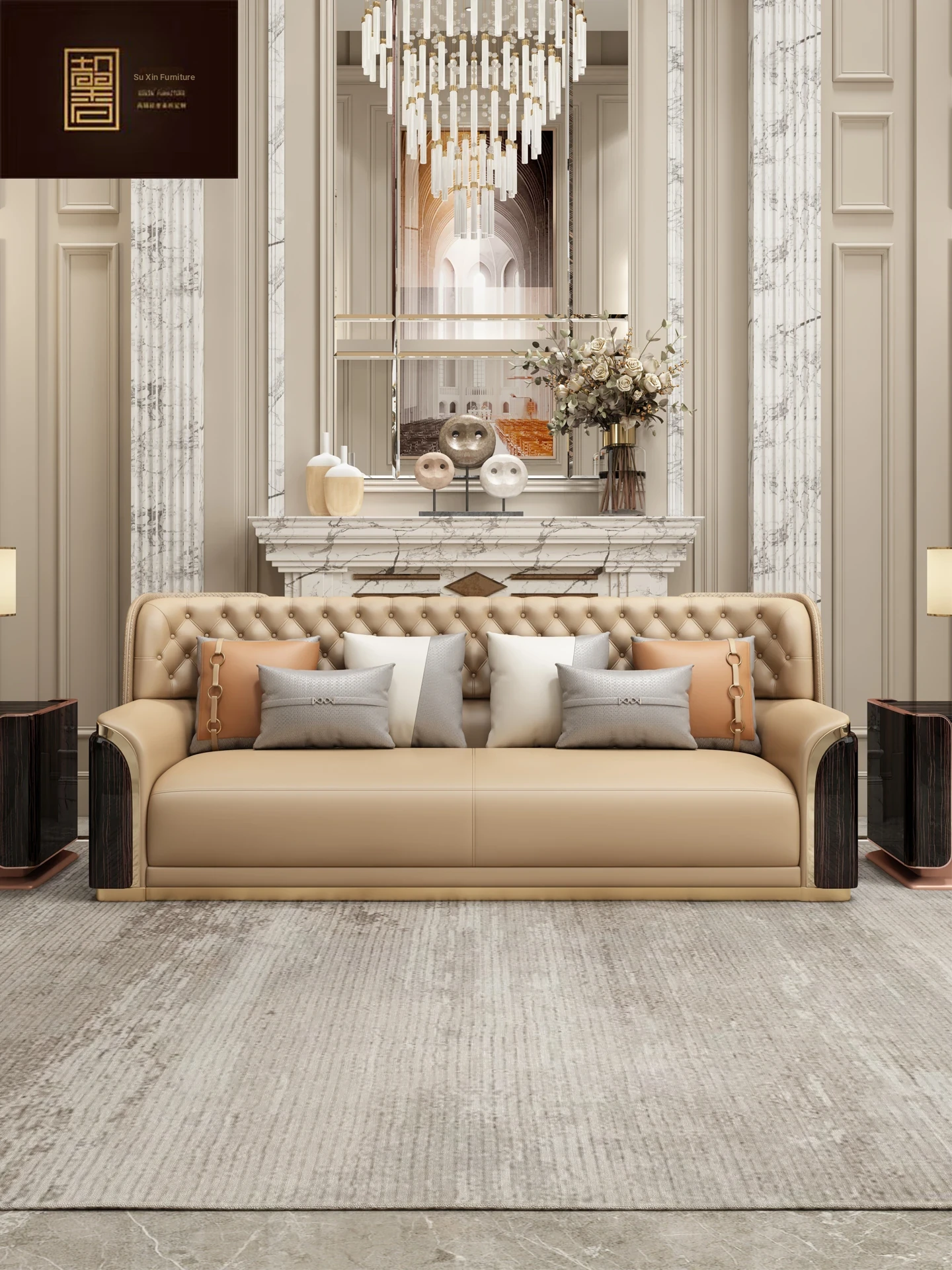Two Casual sofas + Double + three + tea table +86.61 in TV cabinet (Italian Import first layer cowhide)