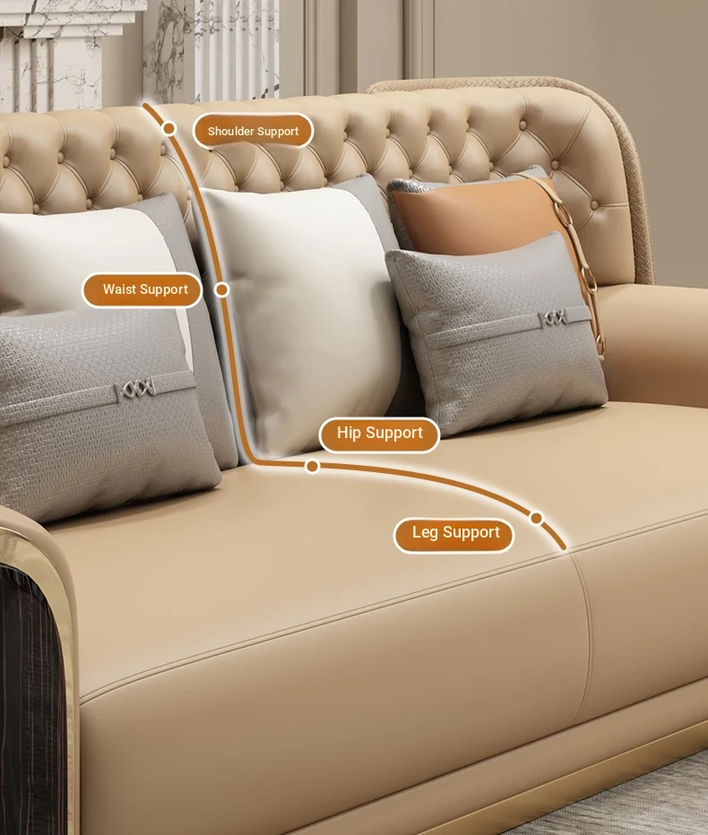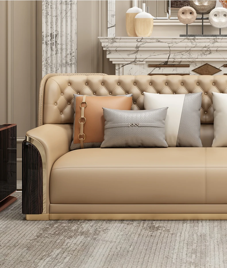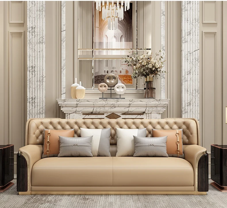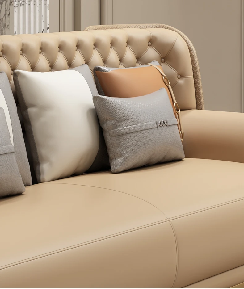 Two Casual sofas + Double + three + tea table +86.61 in TV cabinet + two side tables (Italian Import first layer cowhide)