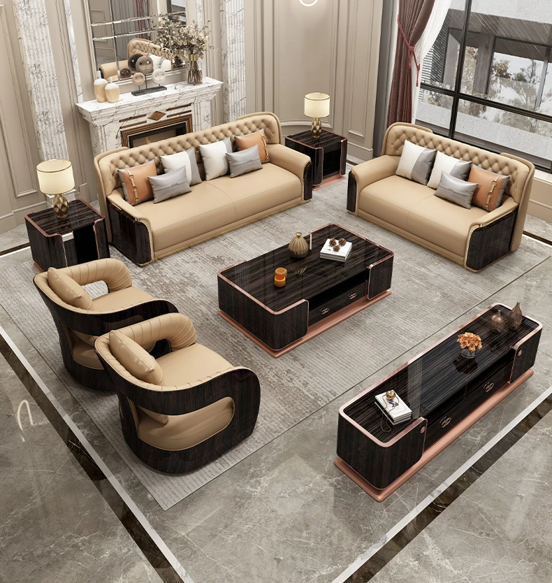 Two Casual sofas + Double + four + tea table +94.49 in TV cabinet (Italian Import first layer cowhide)