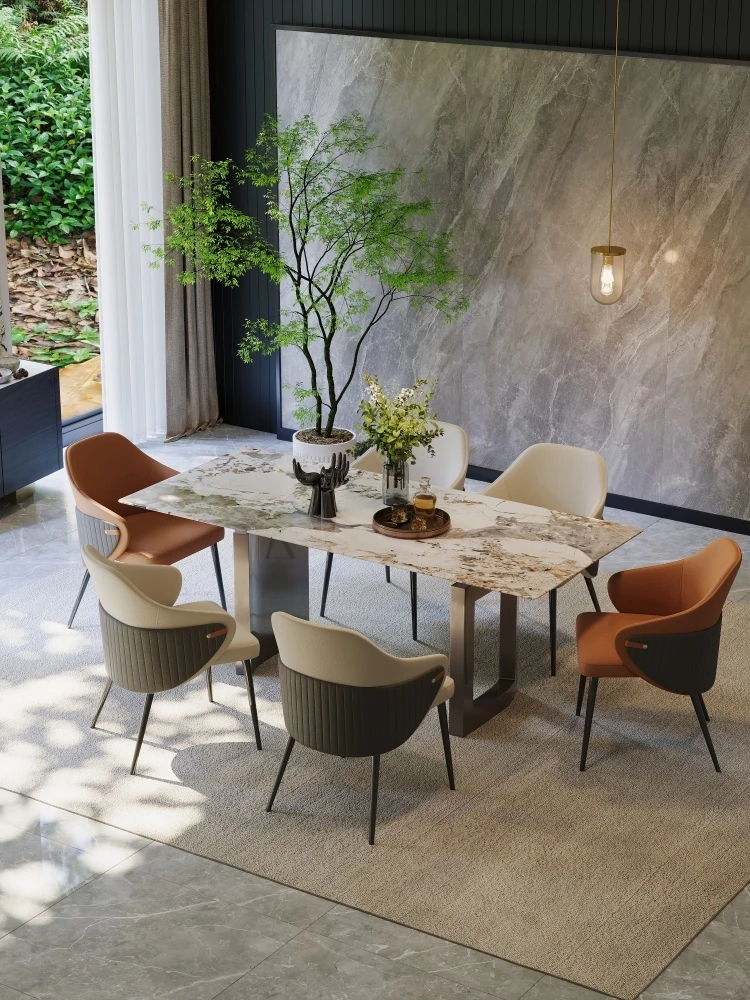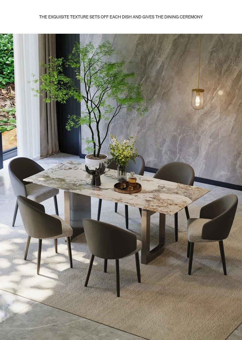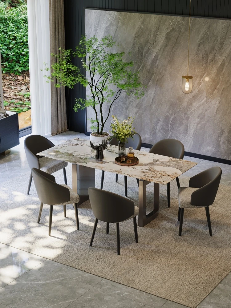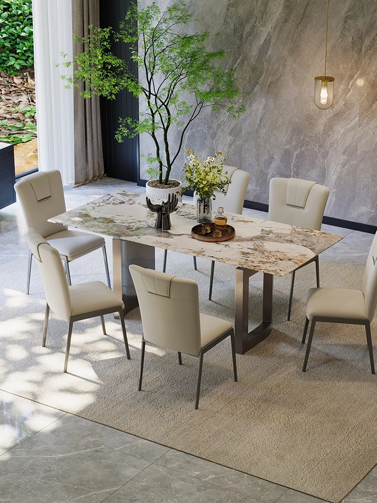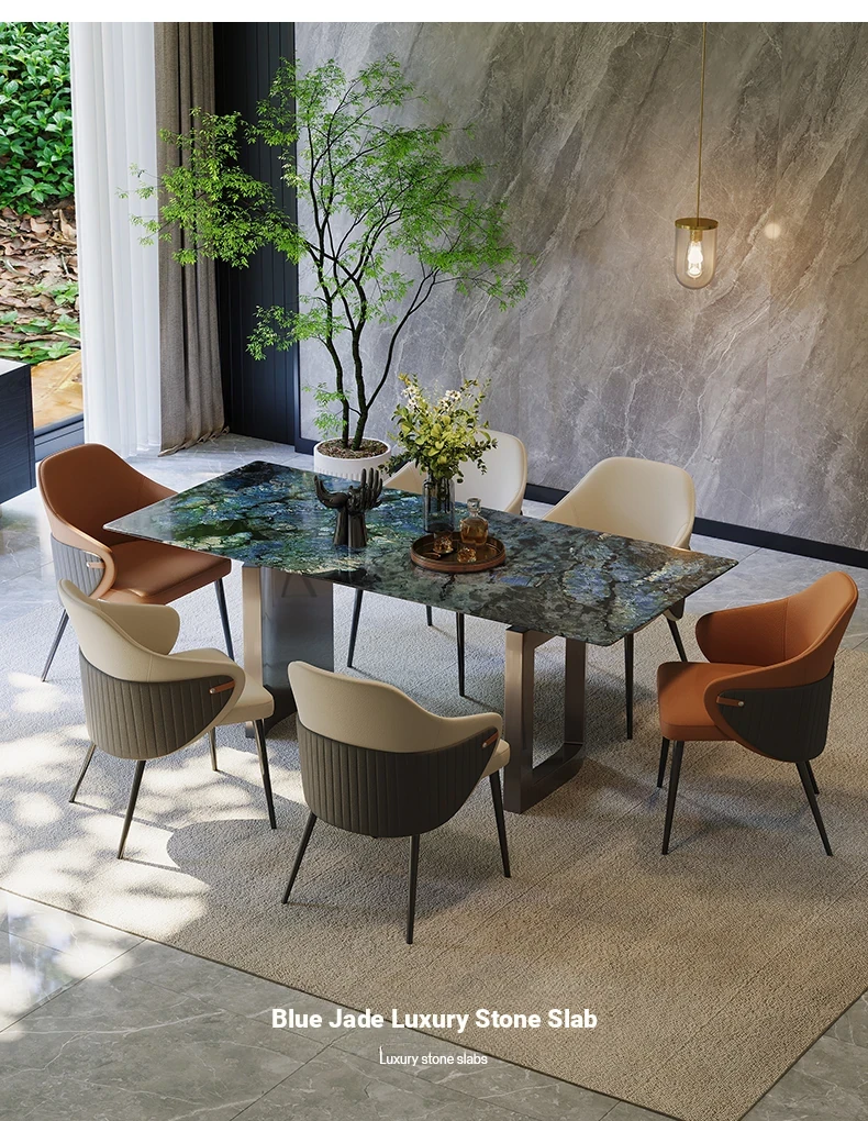 Italian Luxury Marble Dining Table and Chair Set - Blue Emerald Minimalist Ultra-Crystal Dining Room Rectangular Table for Elegant Living Spaces