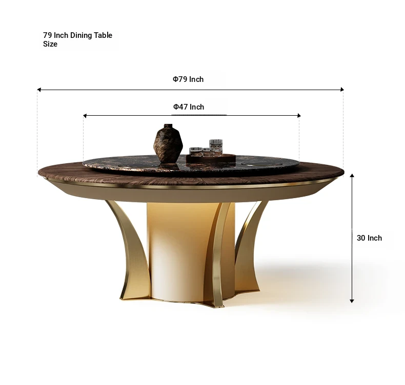 Electric Round Table 78.74in Gentleman Blue Marble + Induction cooker + Platinum Diamond Turntable