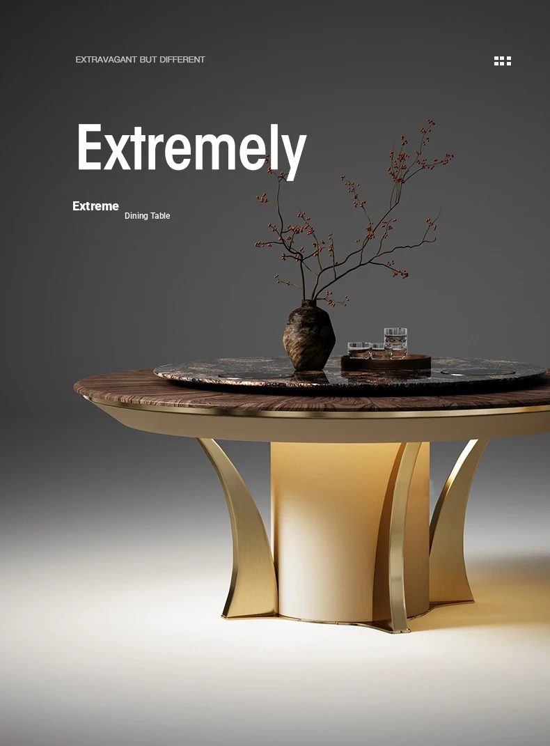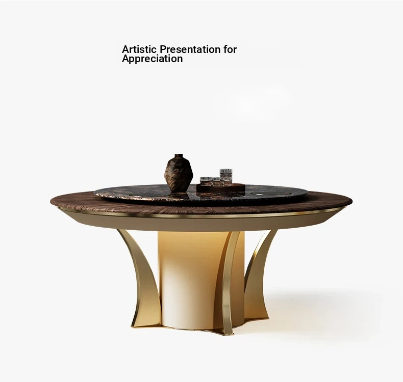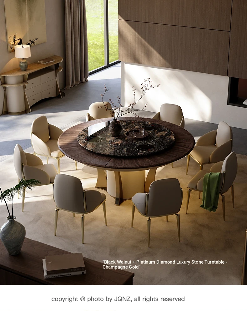 Electric Round Table 78.74in Black Walnut + Induction cooker + Platinum Diamond Turntable