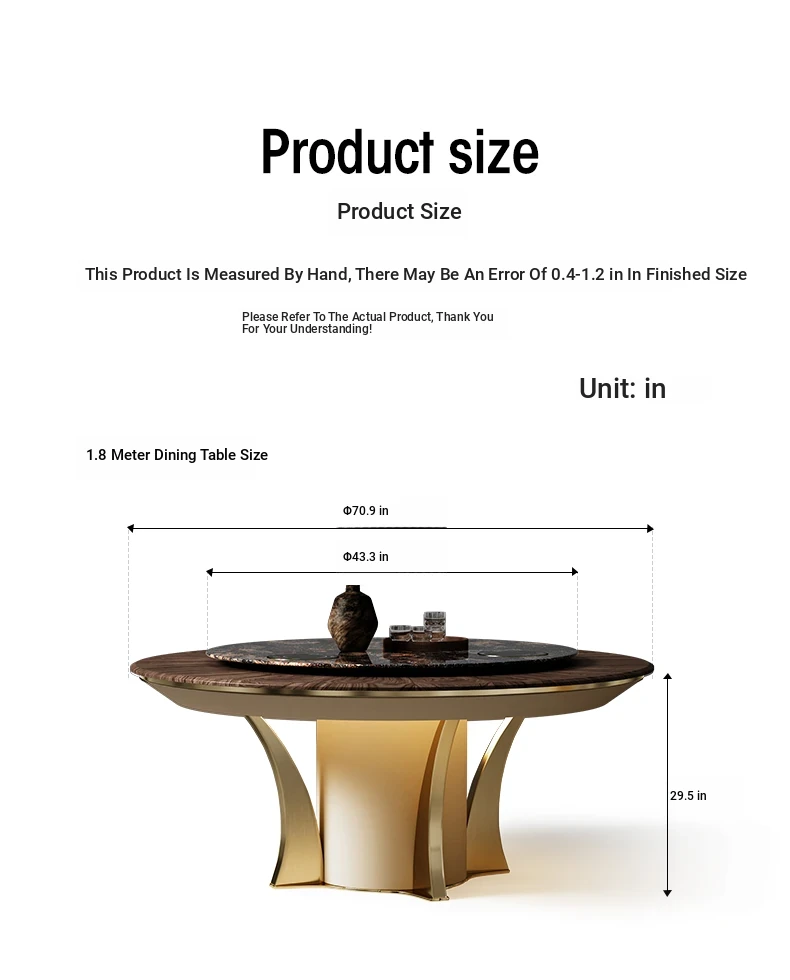 Electric Round Table 70.87in Black Walnut + Induction cooker + Platinum Diamond Turntable