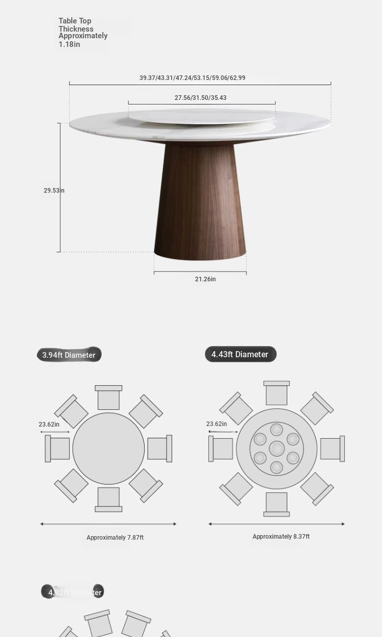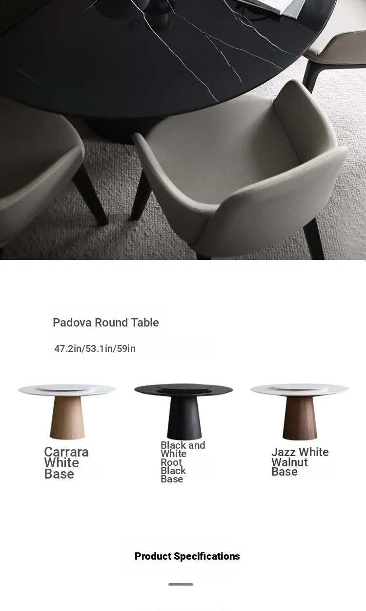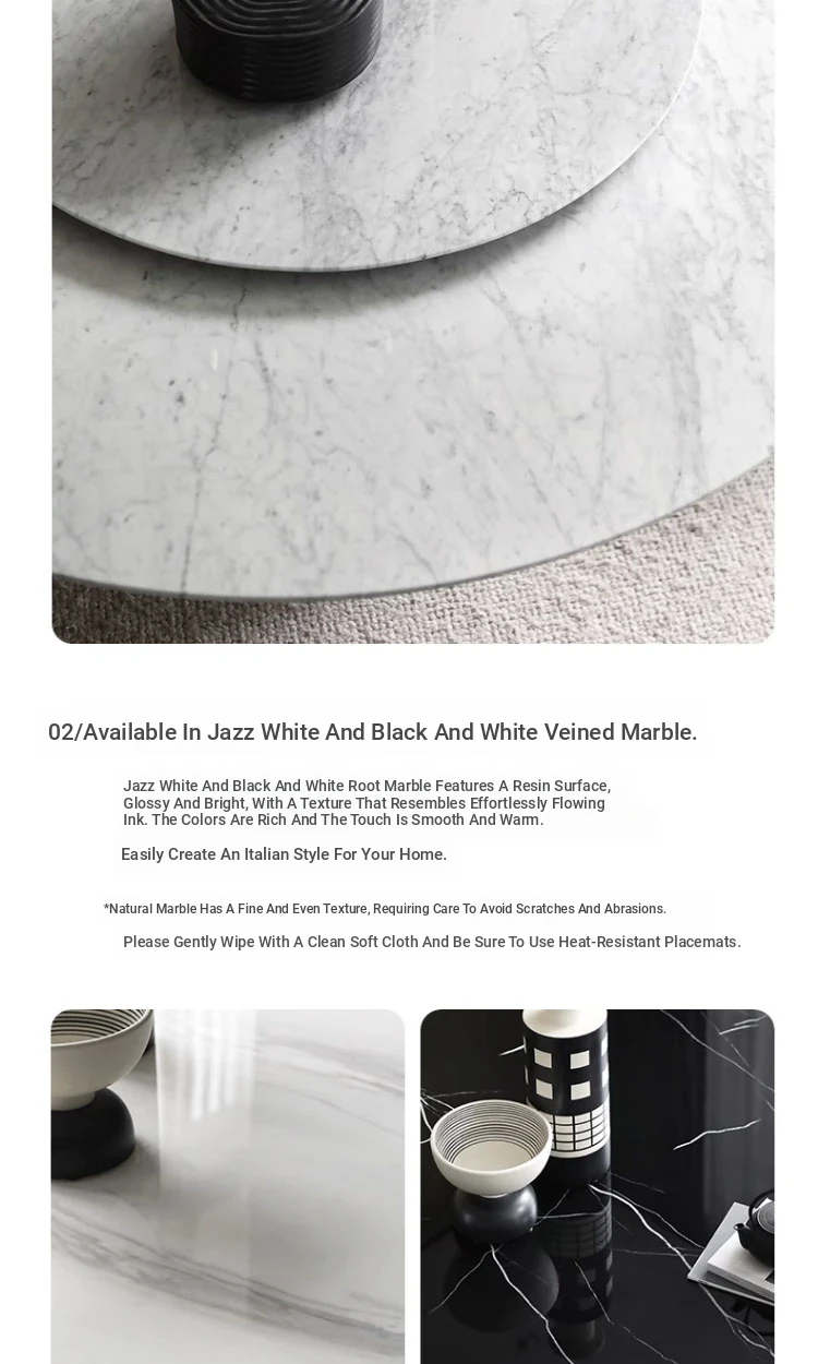 Italian Minimalist Pure Natural Marble Round Dining Table with Lazy Susan - High-End, Simple Design for Small Spaces, Featuring Luxurious Solid Wood and Stone Elements