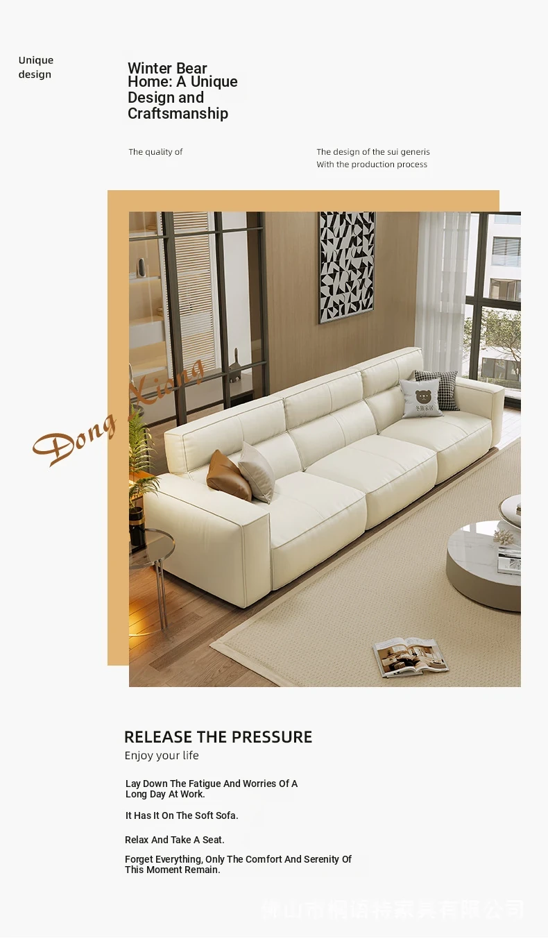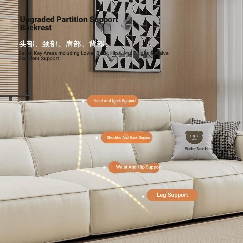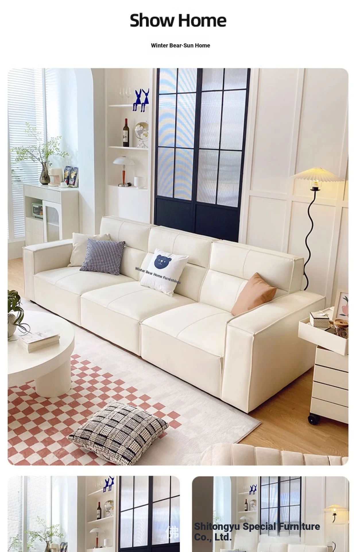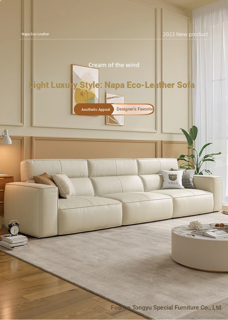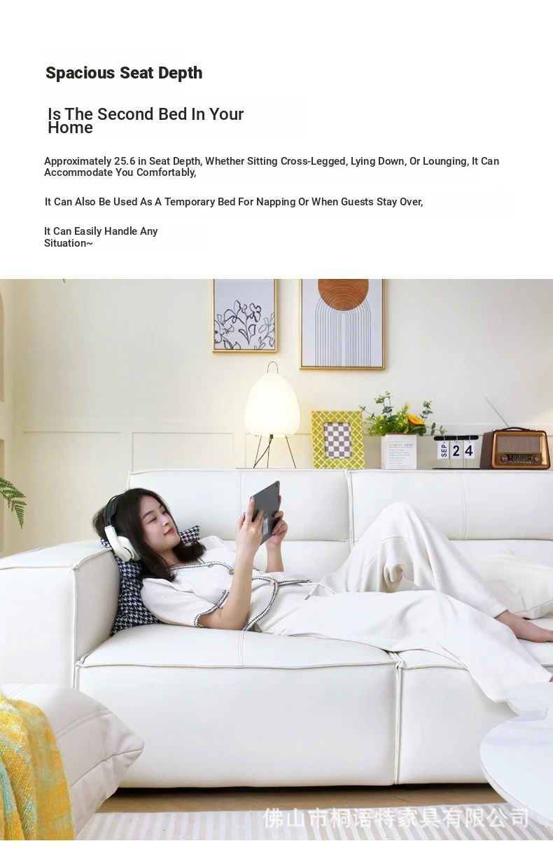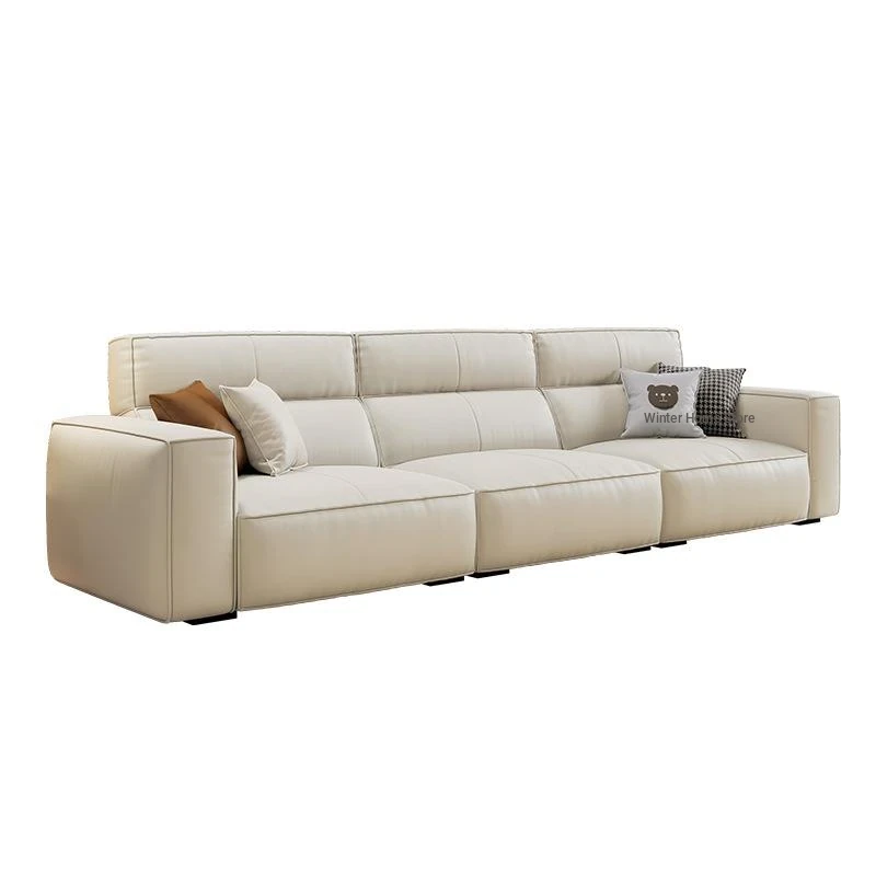 Italian Minimalist Top-Grain Leather Sofa - Creamy Aesthetic, Simple Luxury for Small Spaces, Home Use, Straight-Line Design with Latex Padding, Genuine Leather Sofa