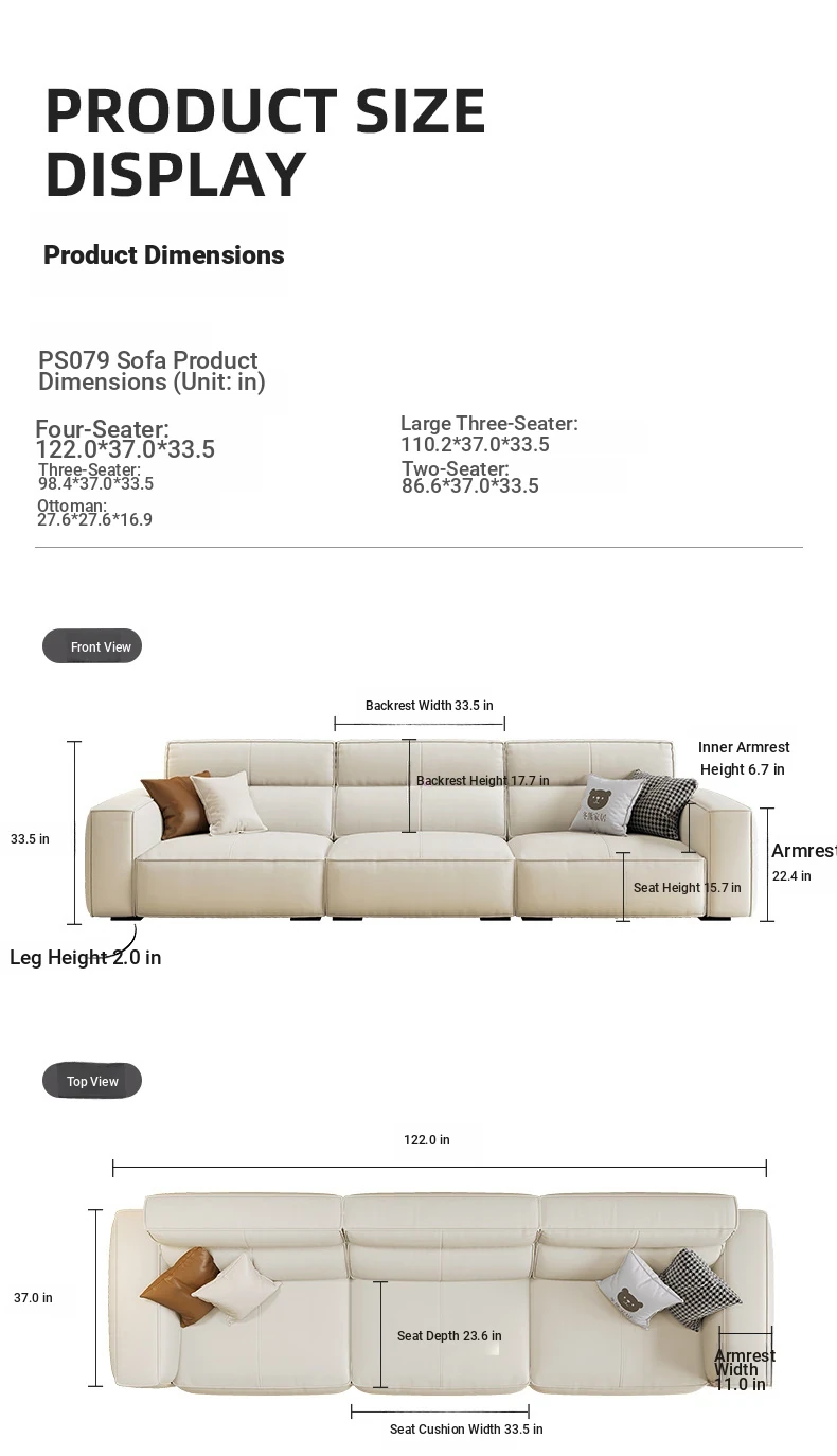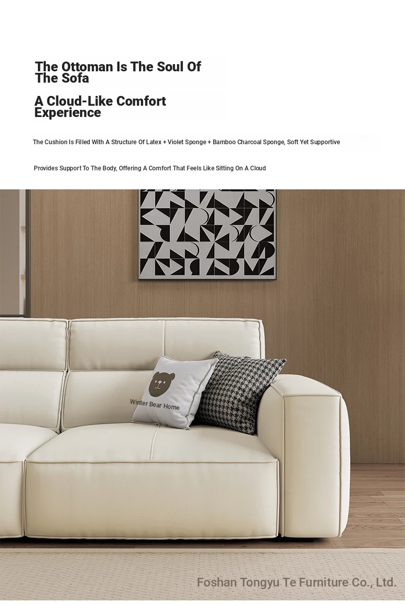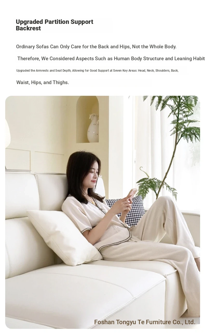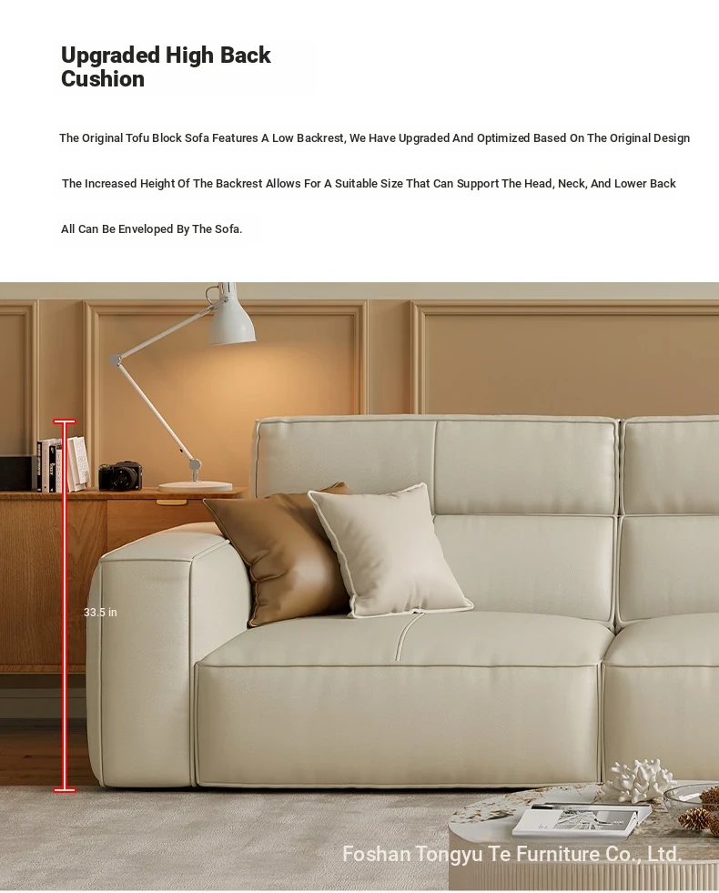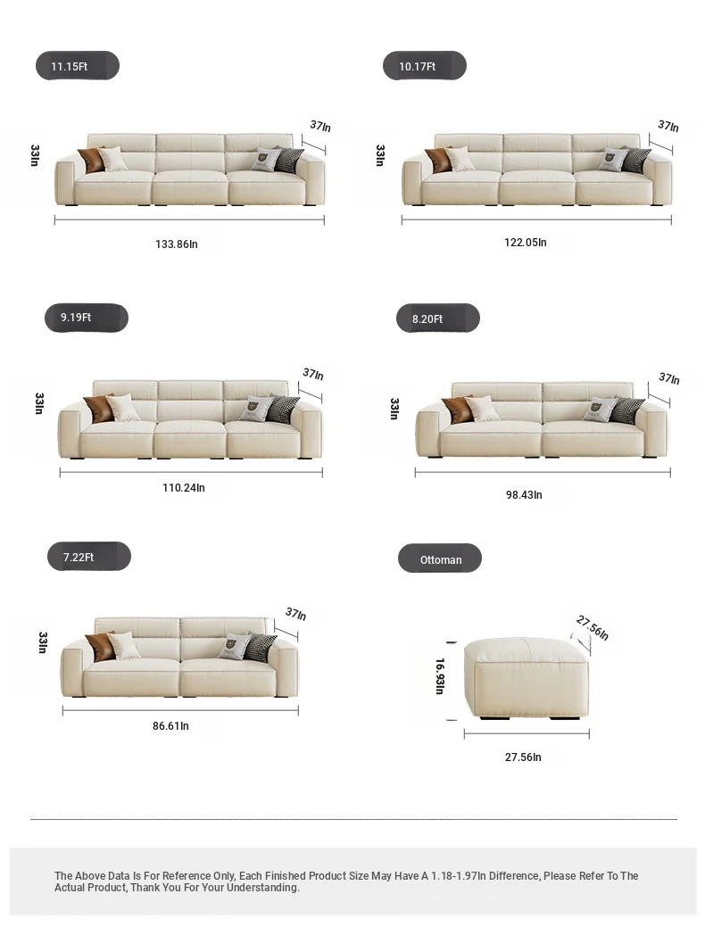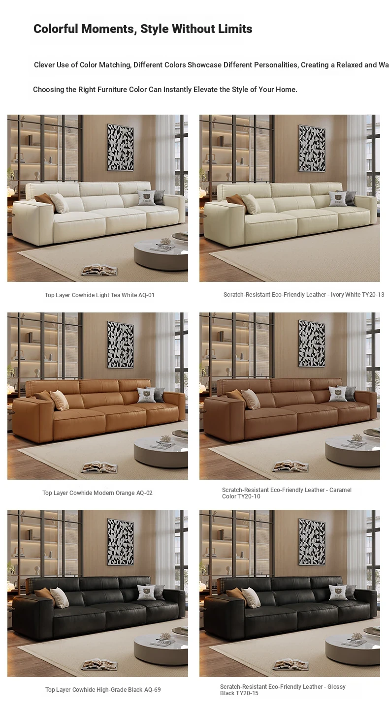 Italian Minimalist Top-Grain Leather Sofa - Creamy Aesthetic, Simple Luxury for Small Spaces, Home Use, Straight-Line Design with Latex Padding, Genuine Leather Sofa