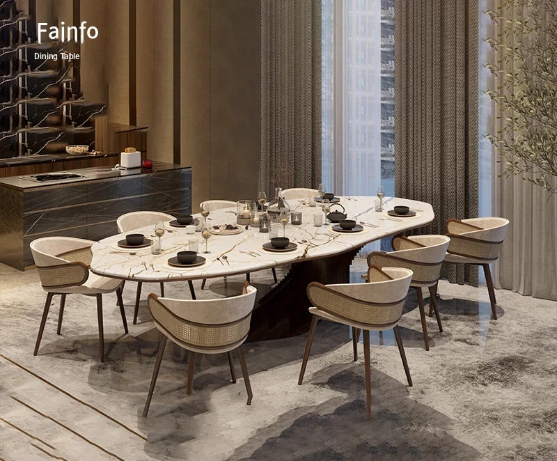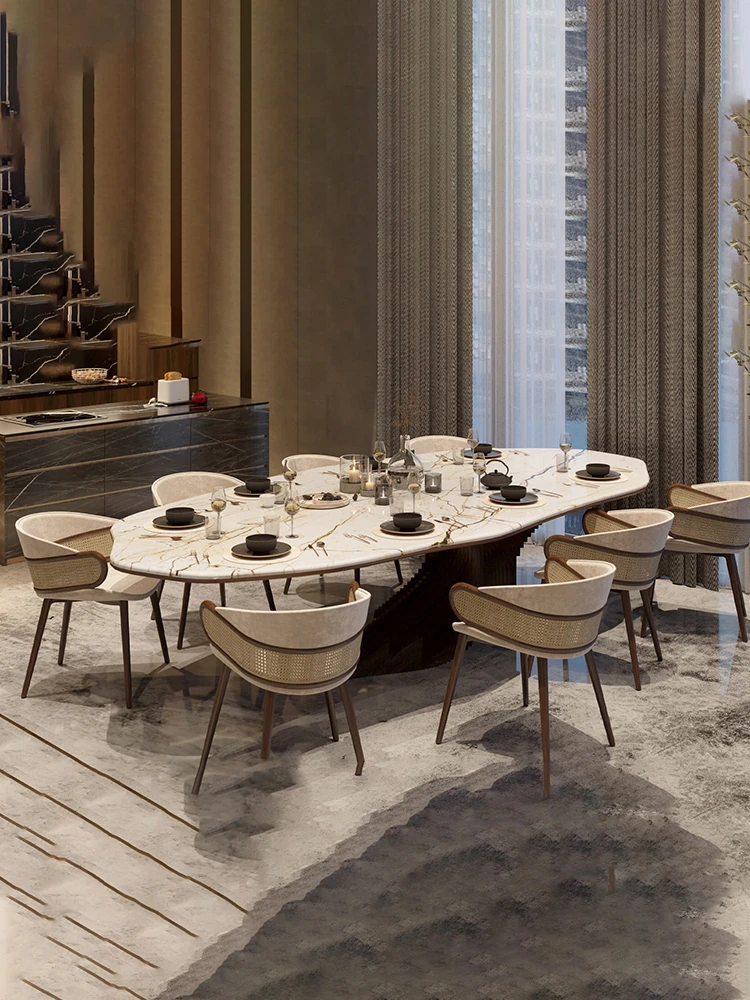 JUHENGYUAN Natural Marble Designer Dining Table - Unique Italian Minimalist Style for Luxury Villas