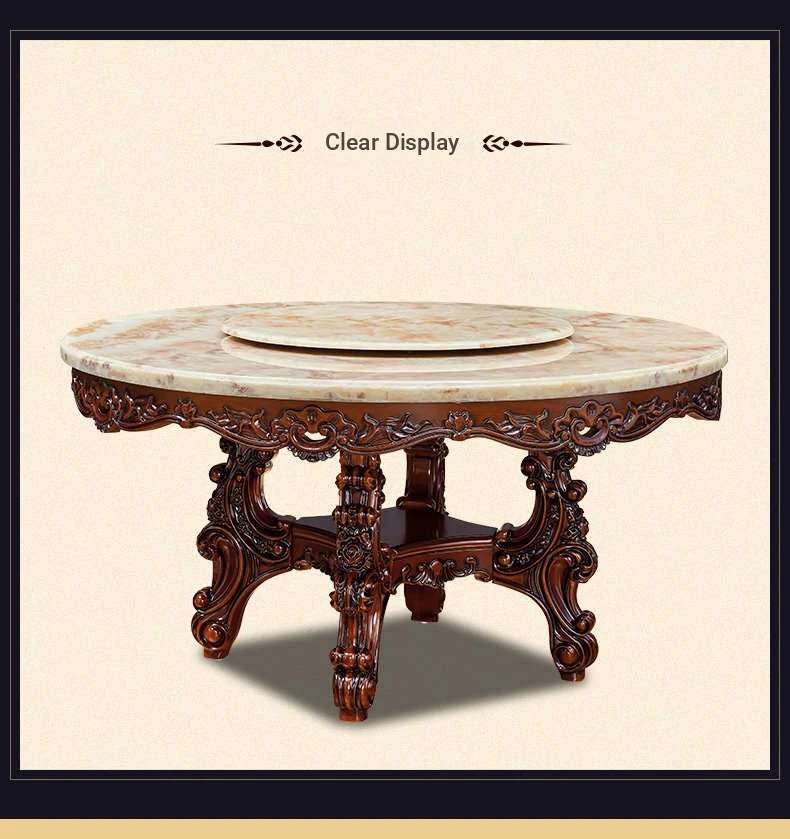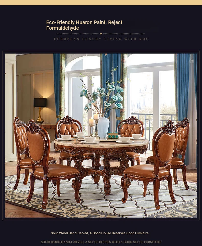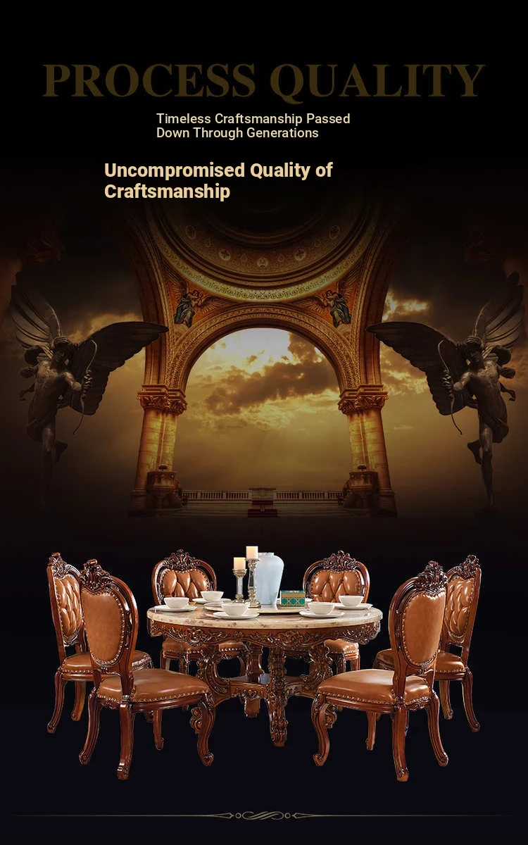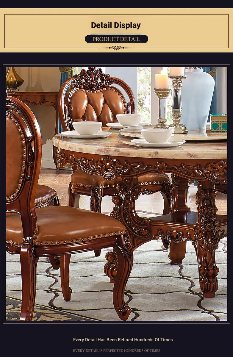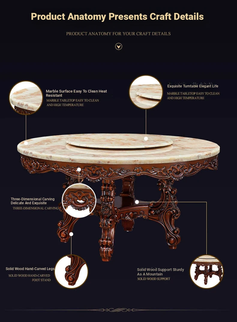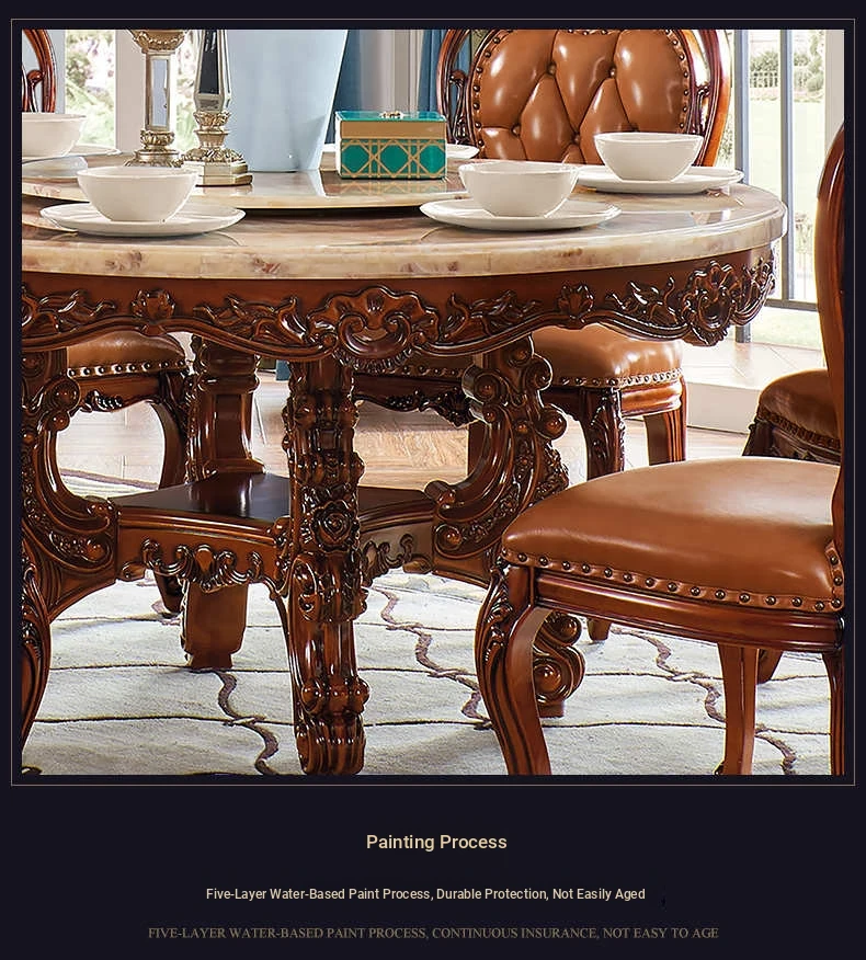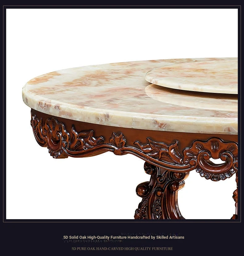 Luxurious European-style Natural Marble Dining Table Set with American Solid Oak - New Classical Round Garden Table and Chair Ensemble