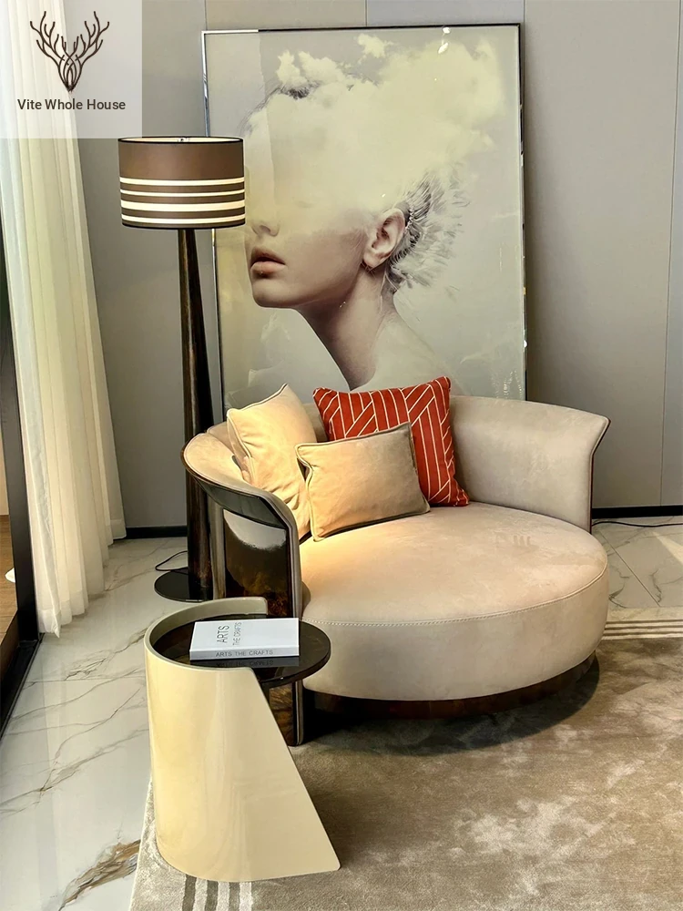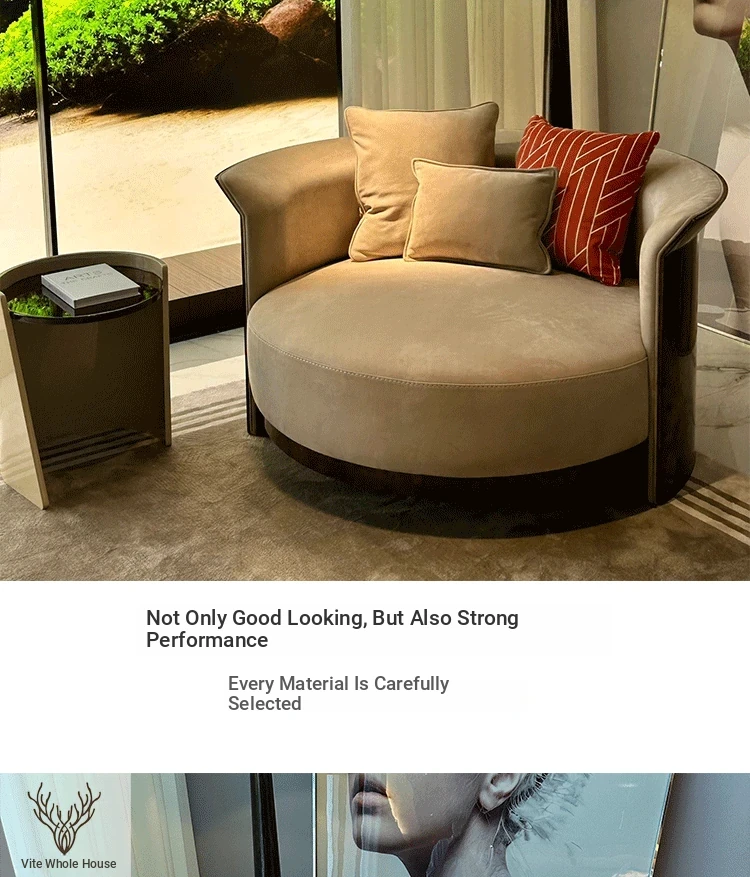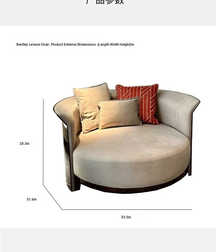 Luxury Bentley Round Couple Leisure Chair - Modern Italian Villa Style for Living Room, Bedroom, and Balcony - Premium Leather and Solid Wood Sofa Chair. Perfect for Romantic Spaces!