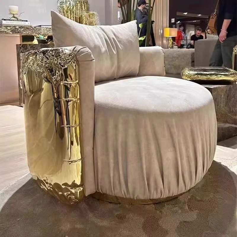 Luxury Designer Creative Velvet Sofa Chair – Modern Curved Stainless Steel Accent Chair for Villas, Living Rooms, and Hotels – Perfect Blend of Elegance and Comfort