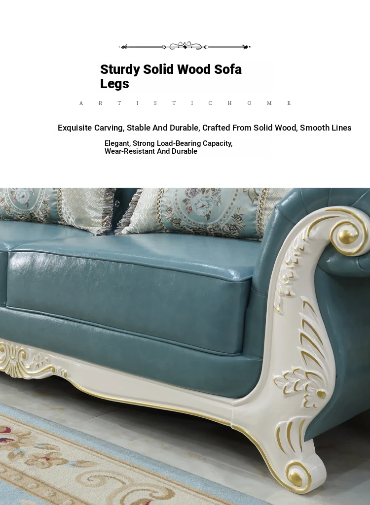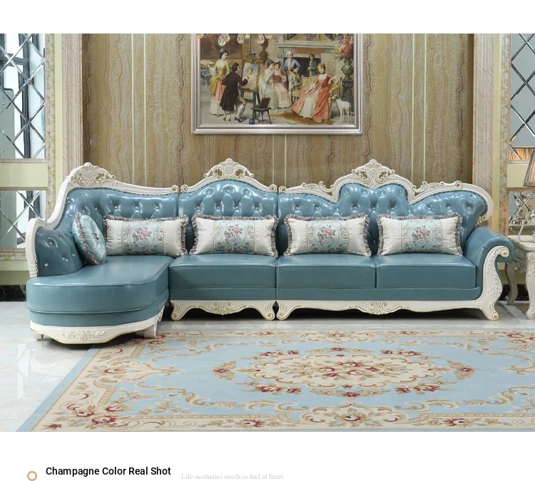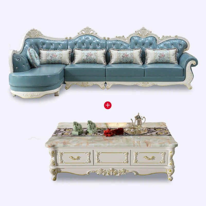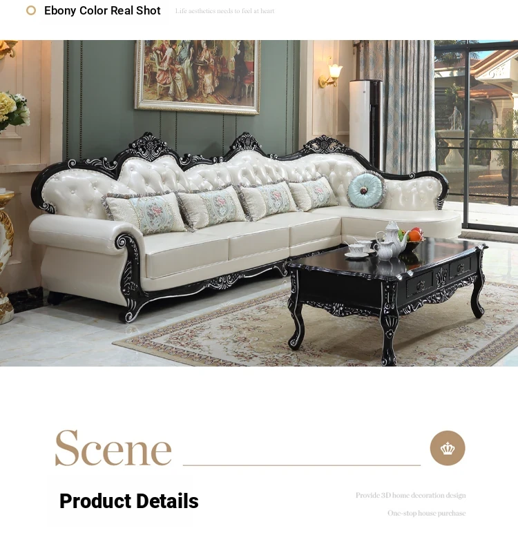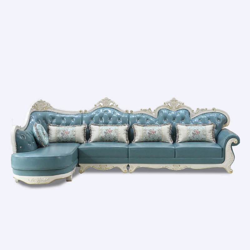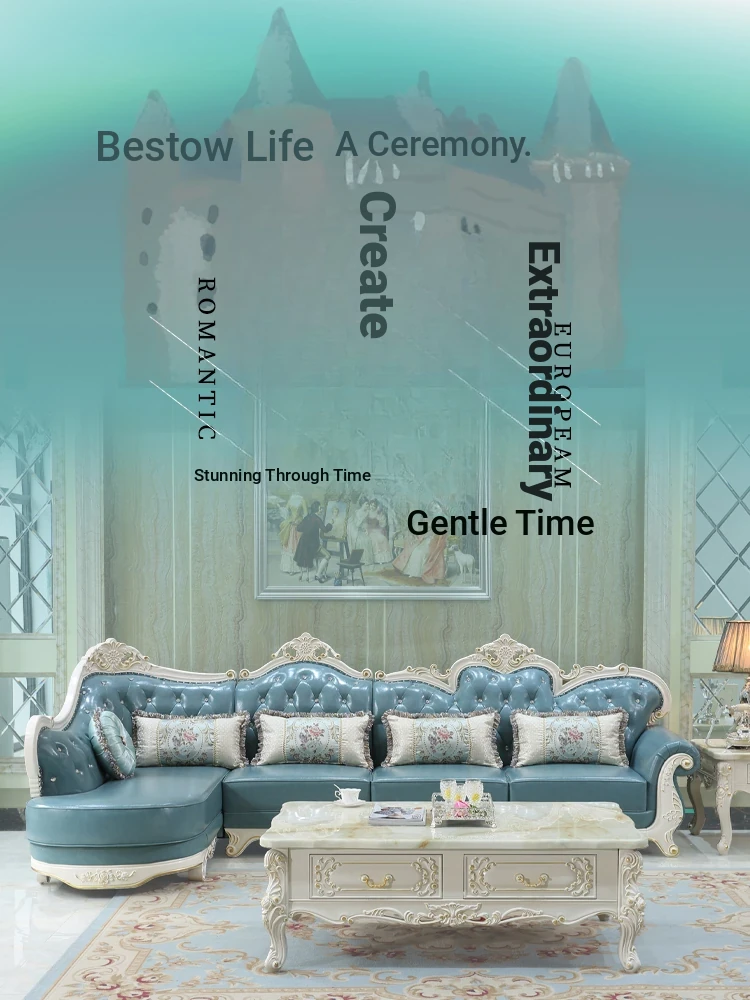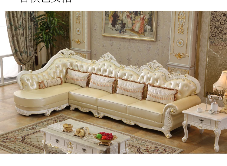 Luxury European Style Genuine Leather Corner Sofa Set - 2025 New Solid Wood Carved L-Shaped Leather Couch for Elegant Living Rooms
