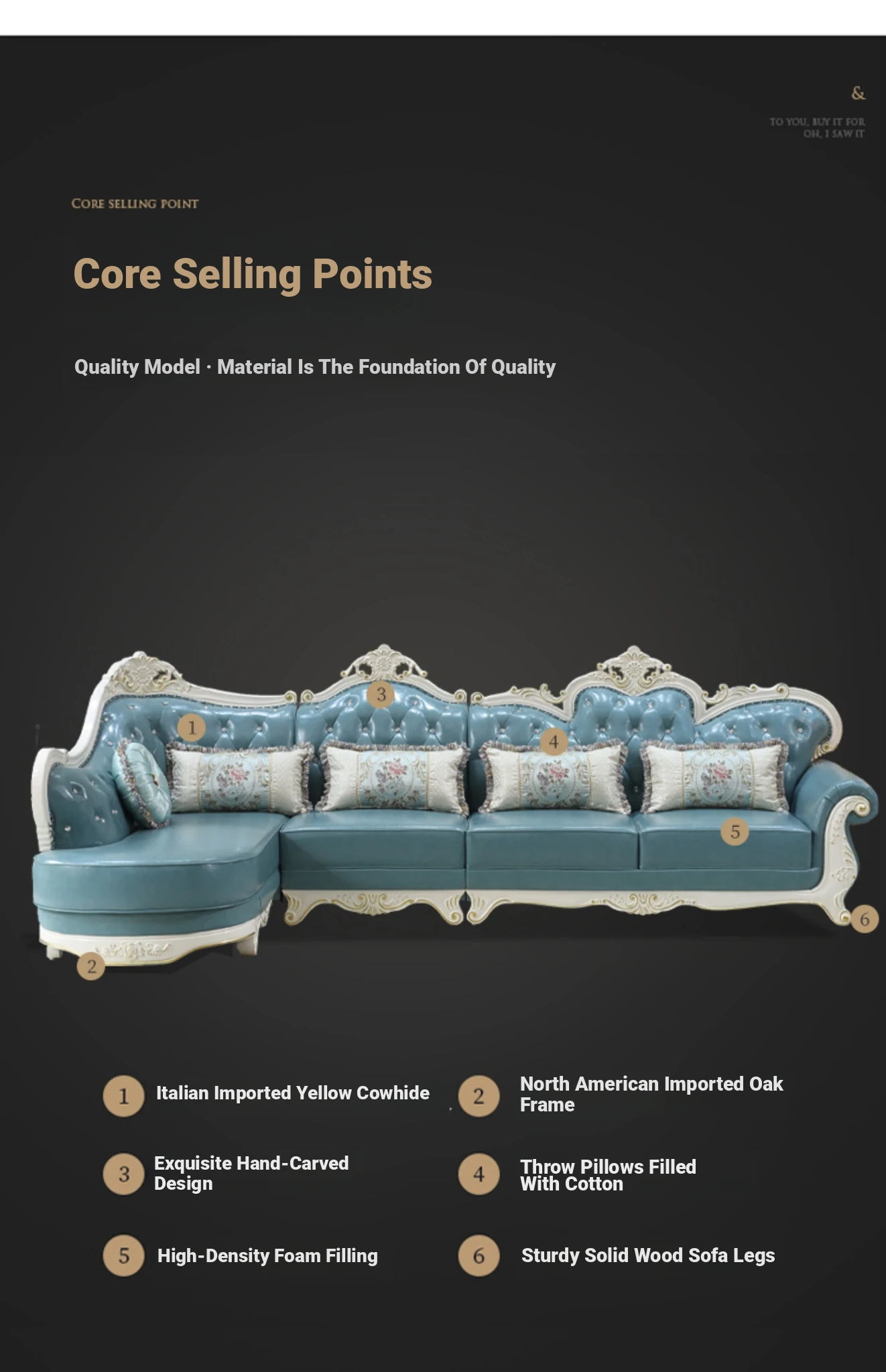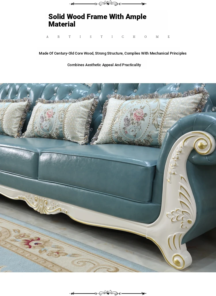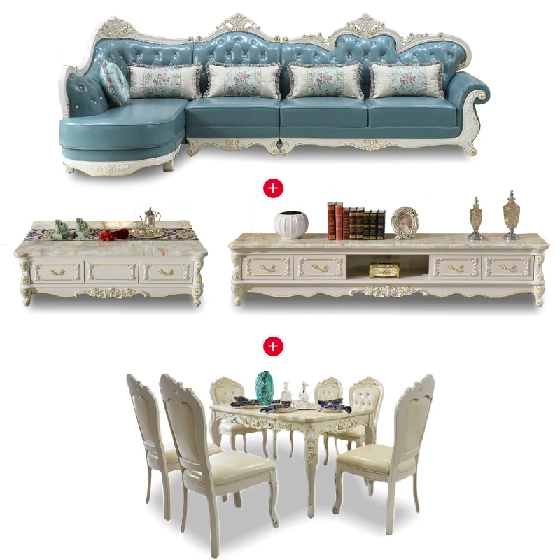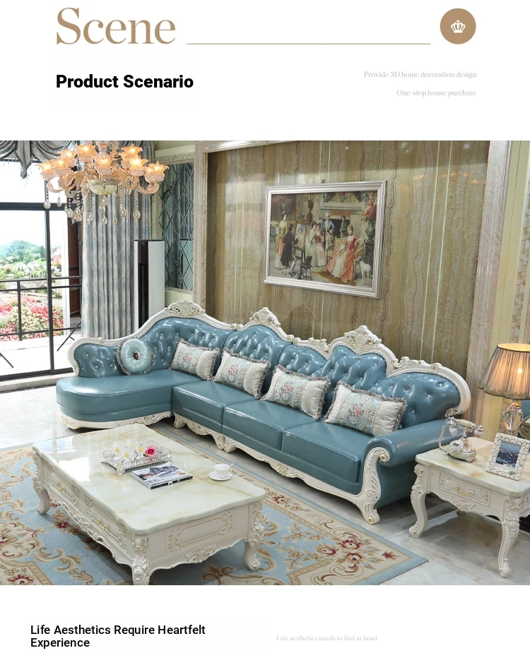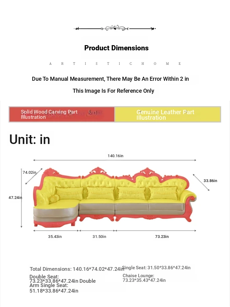 Luxury European Style Genuine Leather Corner Sofa Set - 2025 New Solid Wood Carved L-Shaped Leather Couch for Elegant Living Rooms