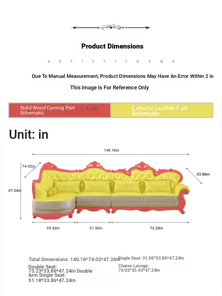 Small apartment corner Import small yellow cowhide (108.66in)