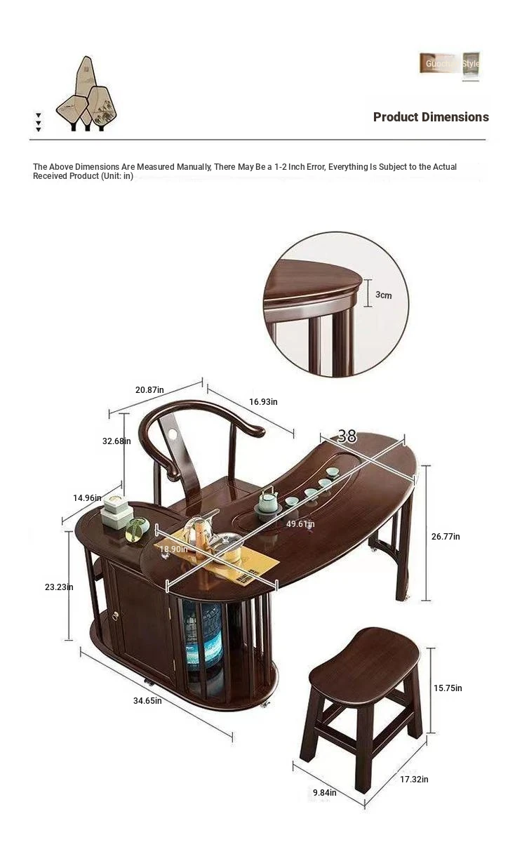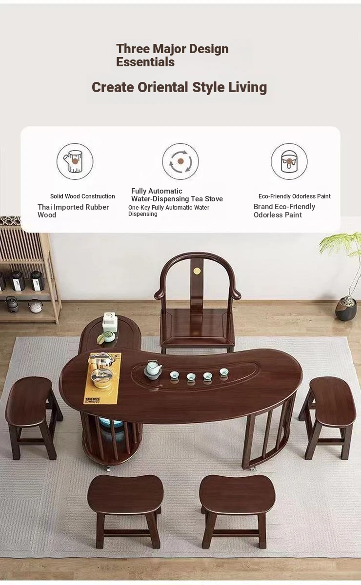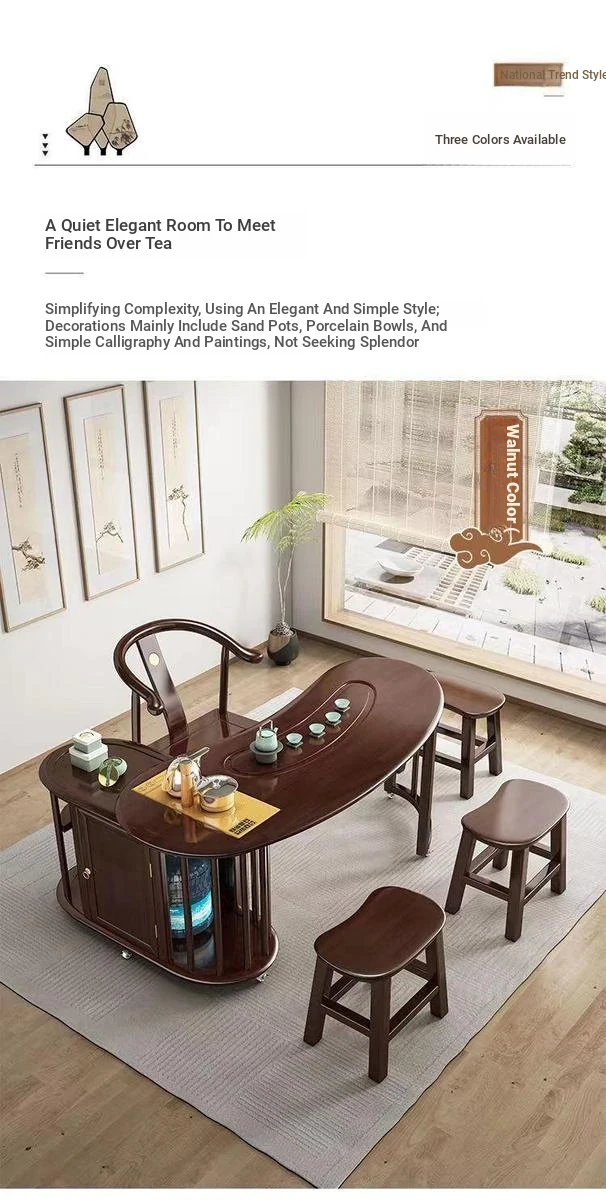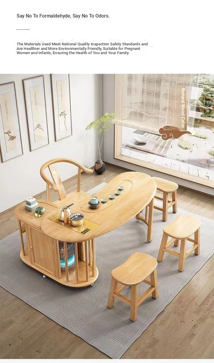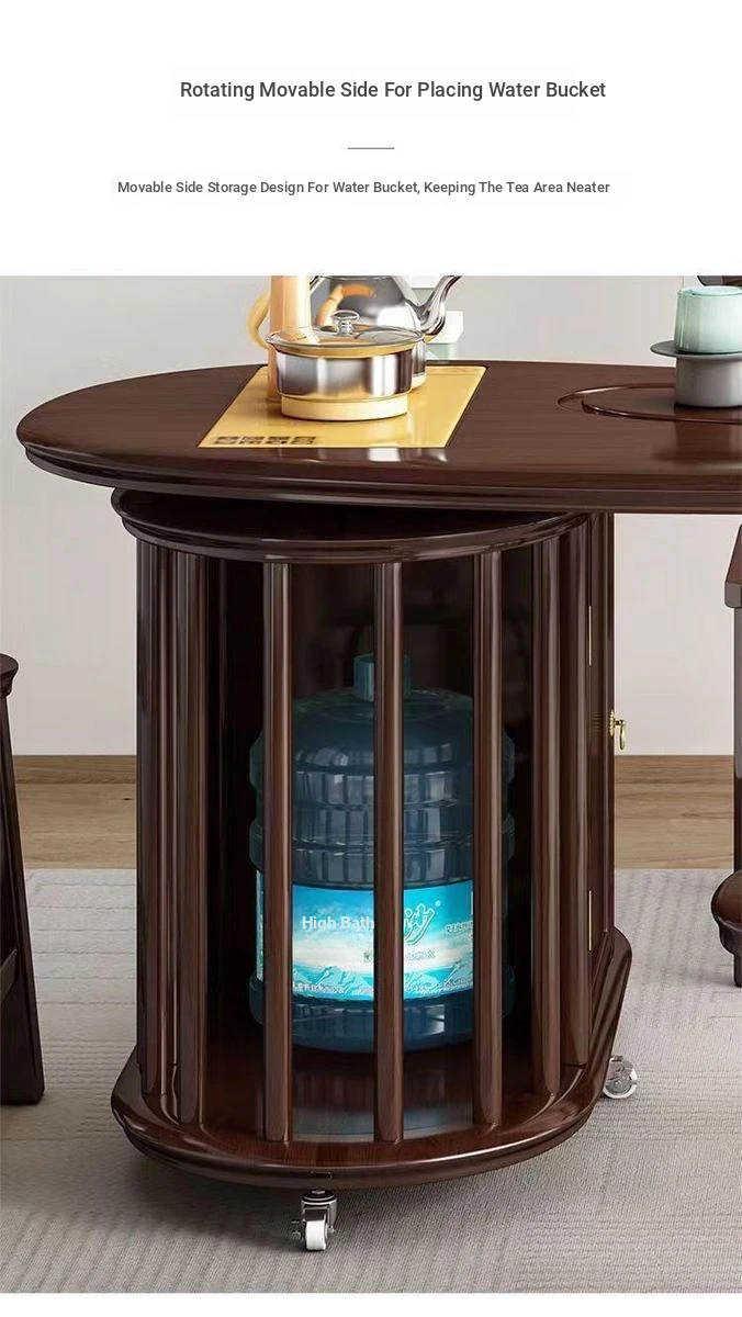 Modern Chinese Style Rotating Balcony Tea Table and Chair Set - Versatile Solid Wood, Movable Teapot and Tea Brewing Station in One