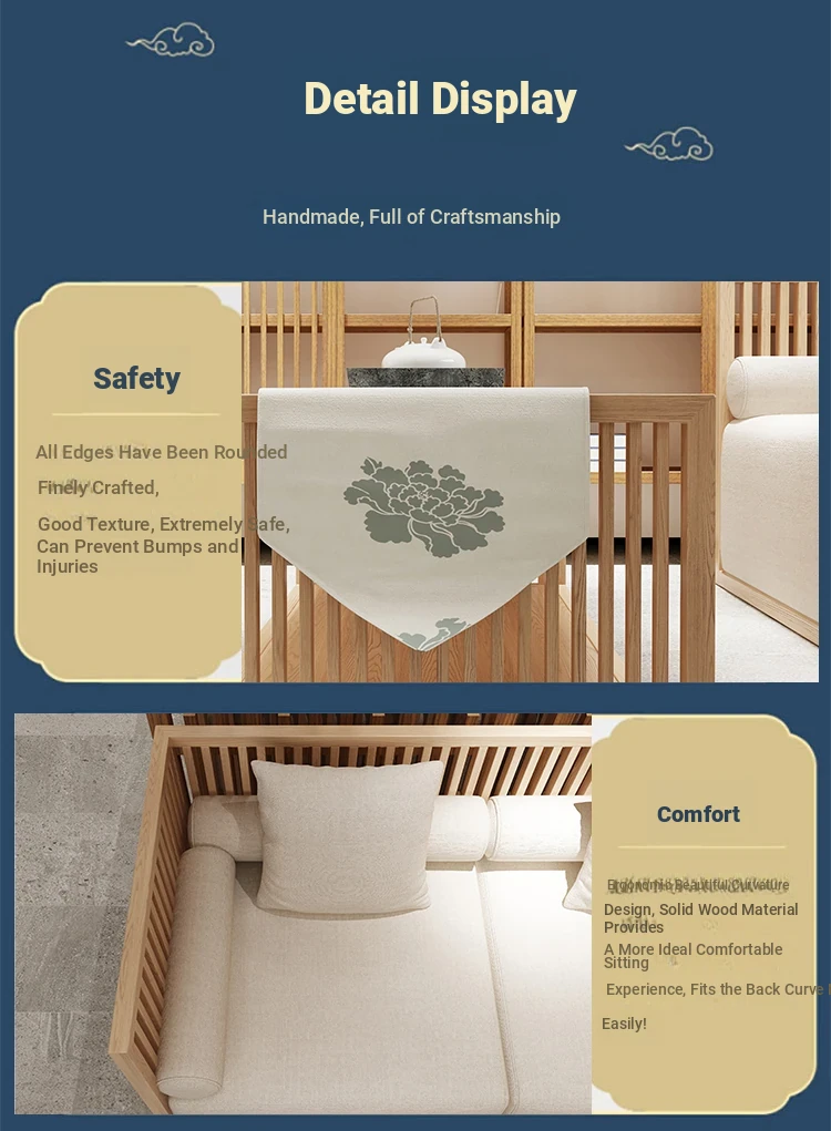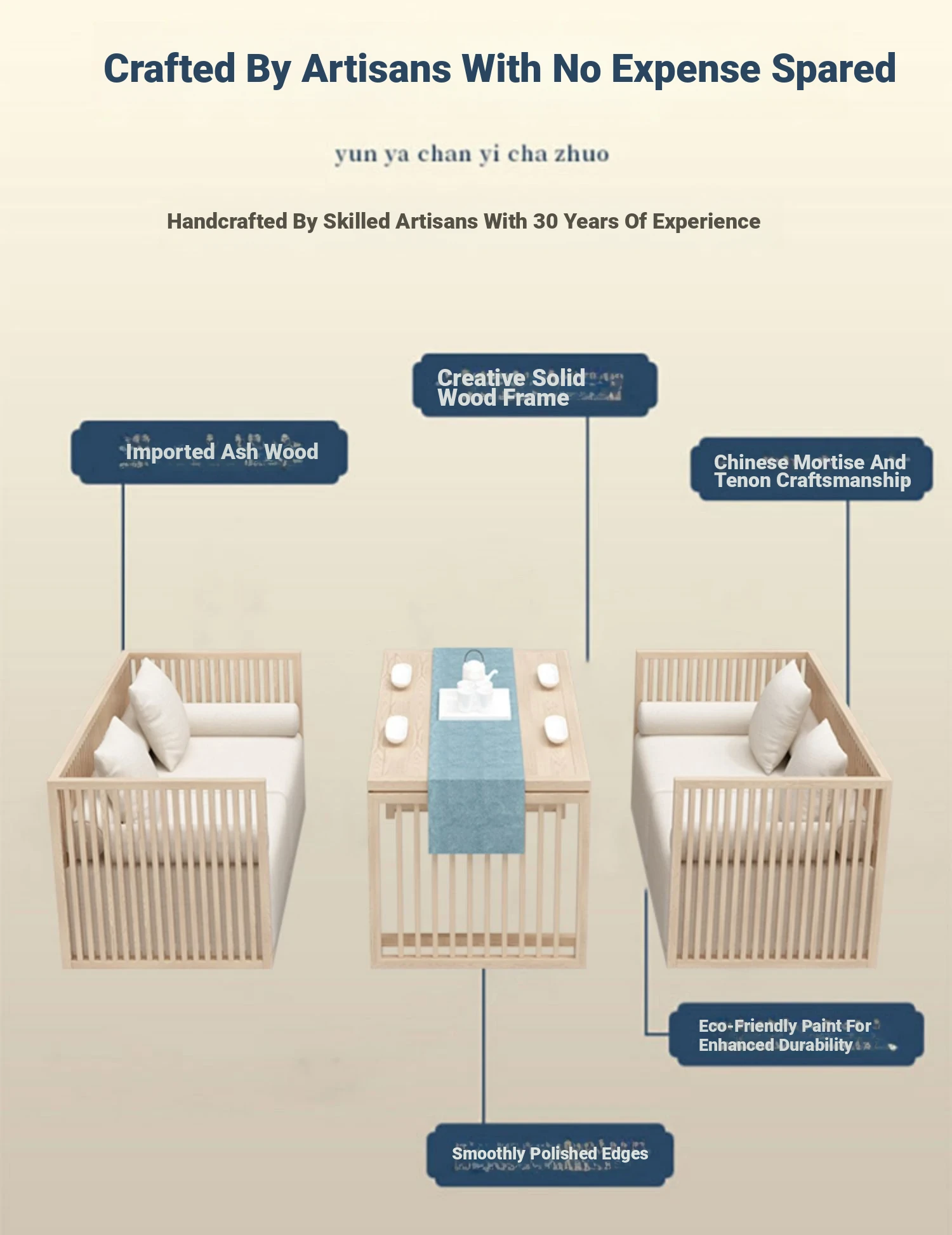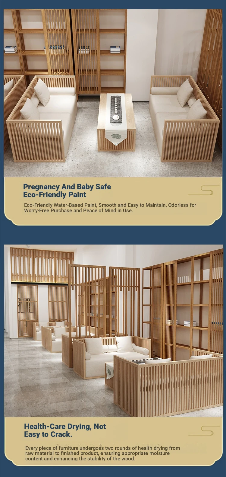 Modern Chinese Style Solid Ash Wood Lounge Area Sofa for Tea House, Business Negotiations, Commercial Bar, and Relaxing Restaurant Seating - Elegant Booth Design