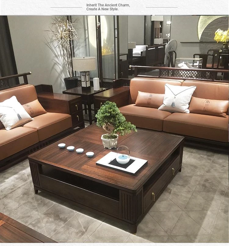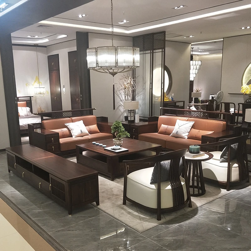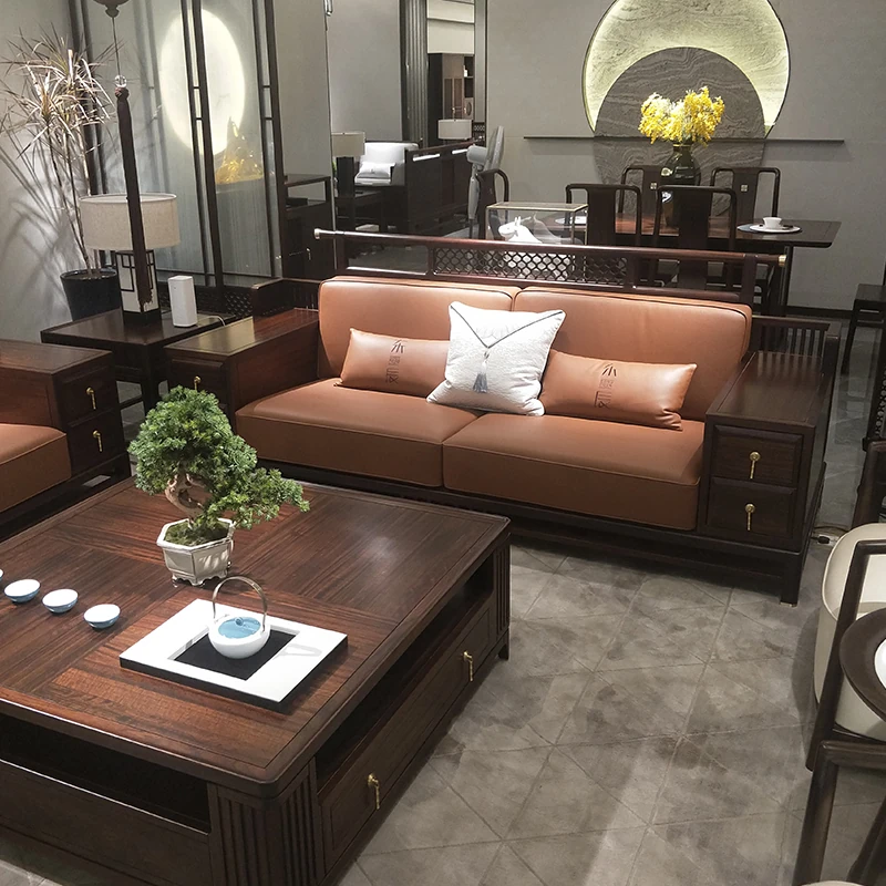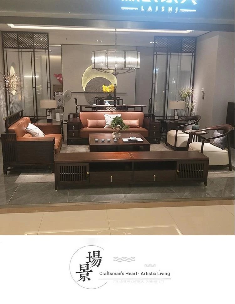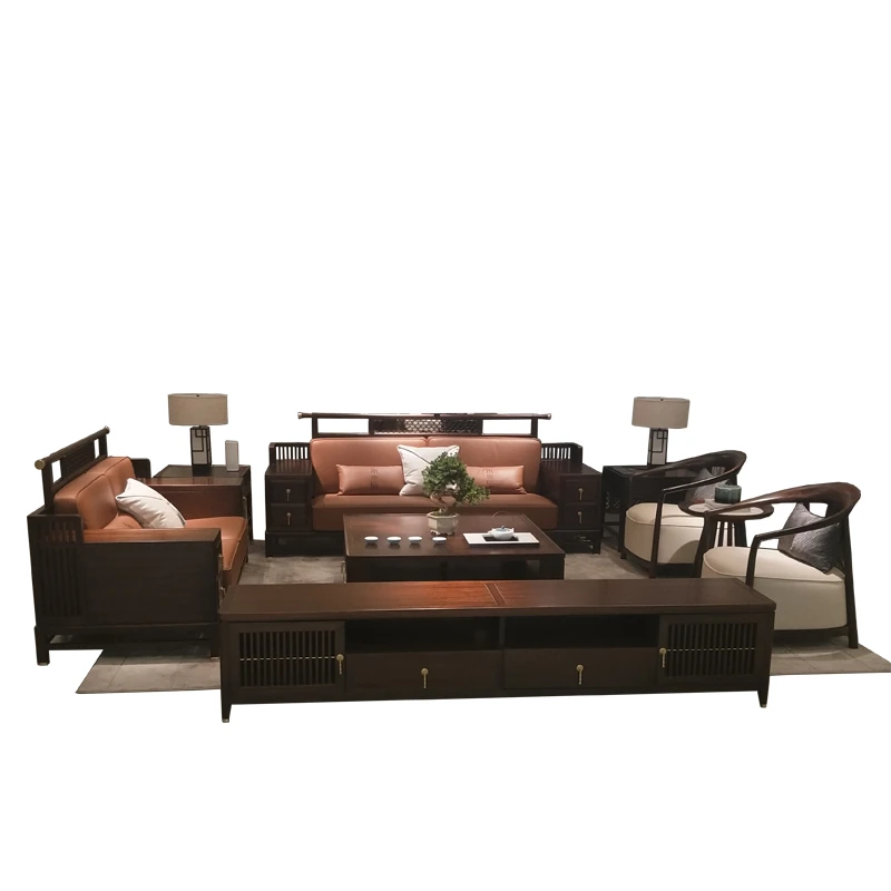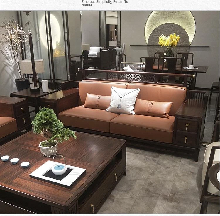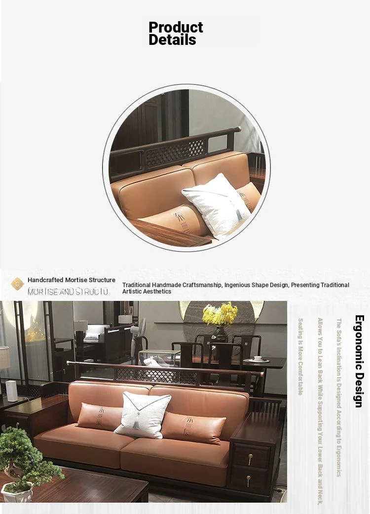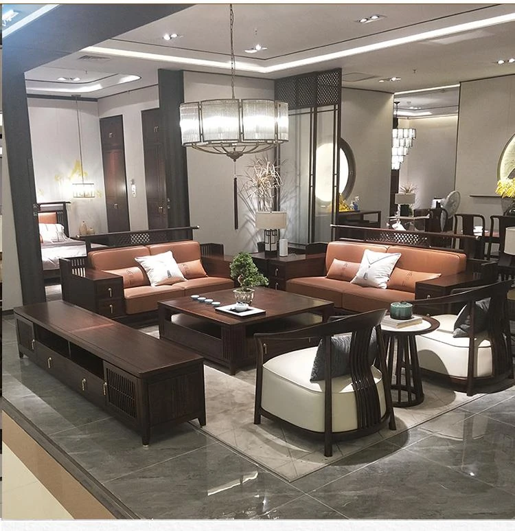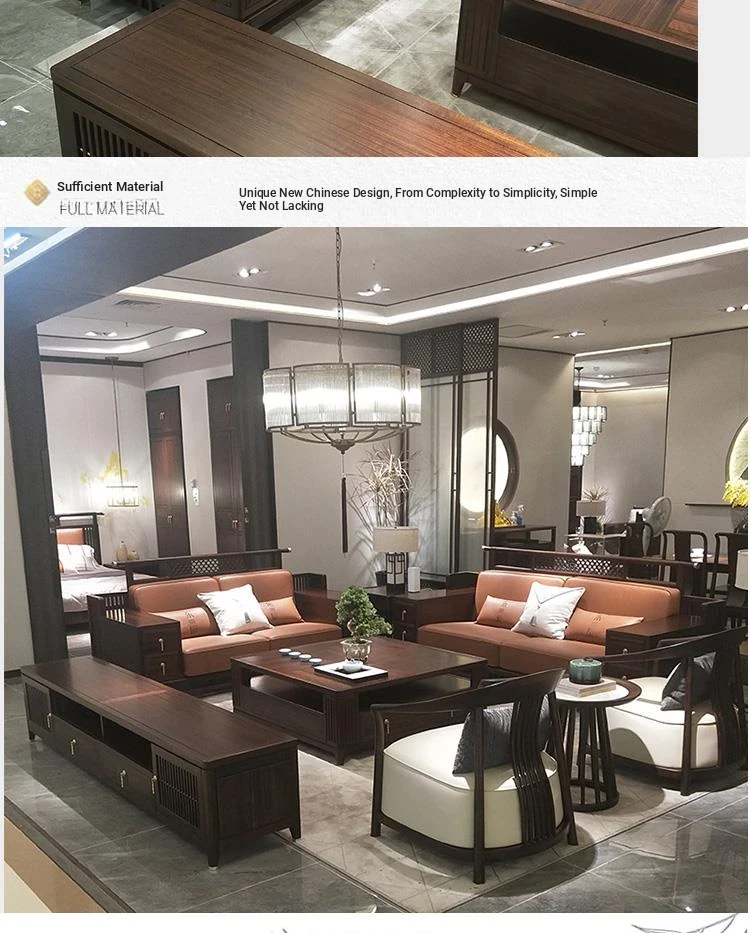 Modern Chinese Style Solid Wood Sofa Set for Living Room – Luxurious Yet Minimalist Design Perfect for Hotels and Villas, Embracing Zen Aesthetics with Elegant Chinese Flair.