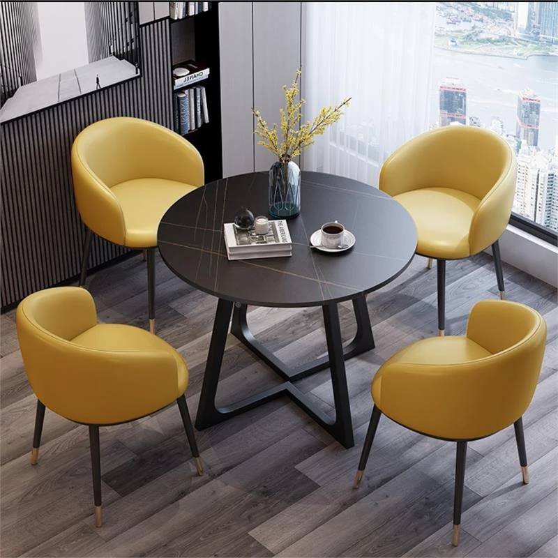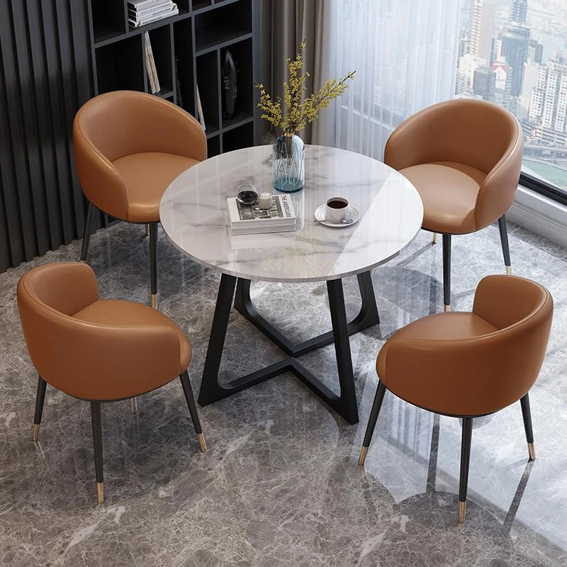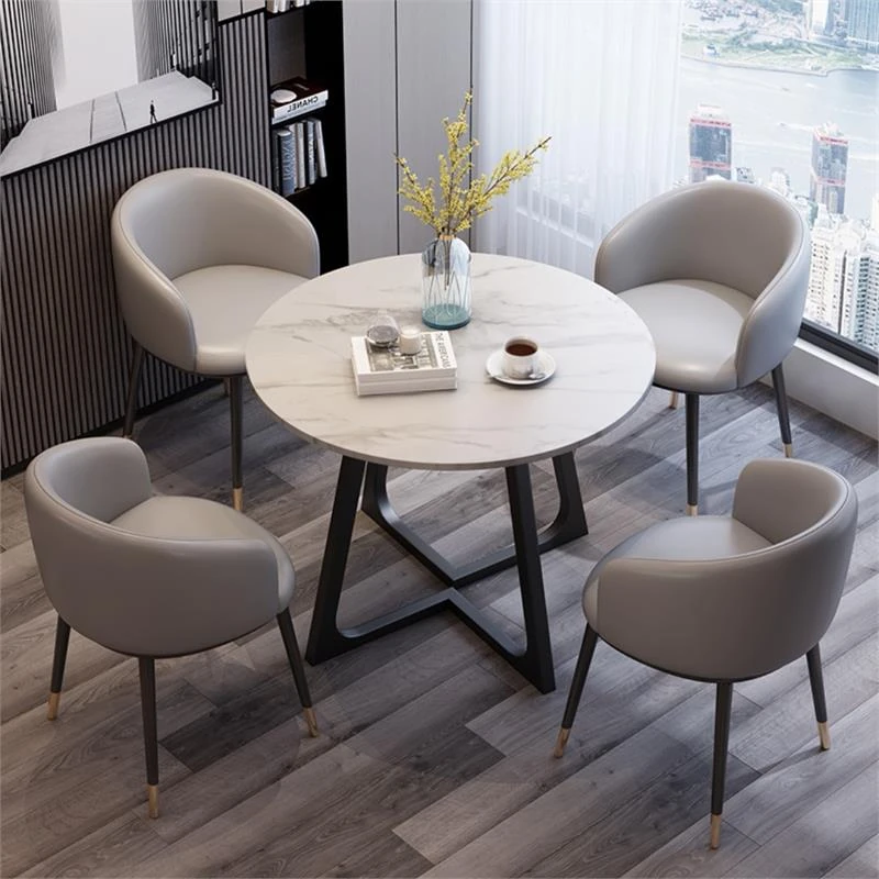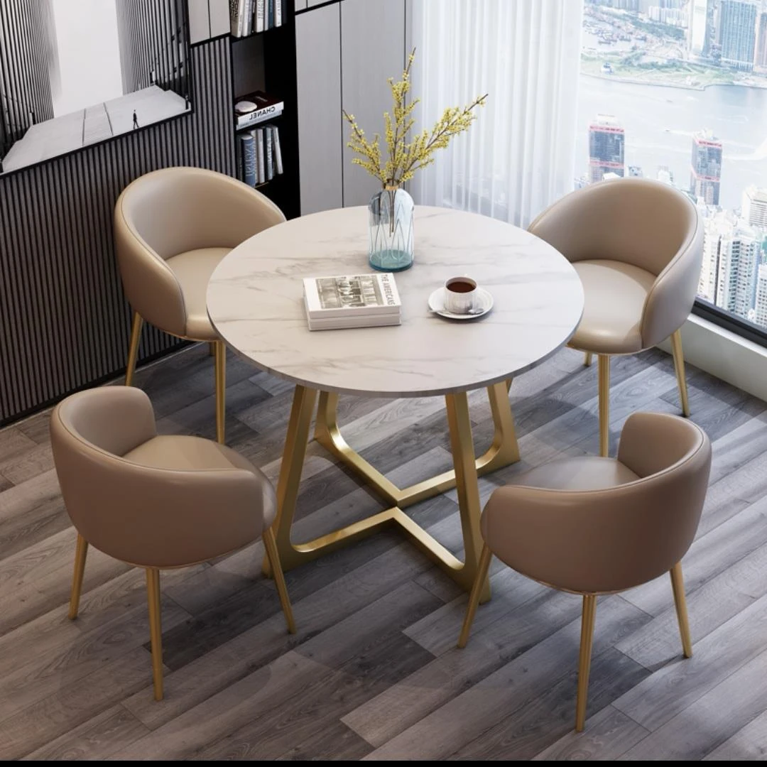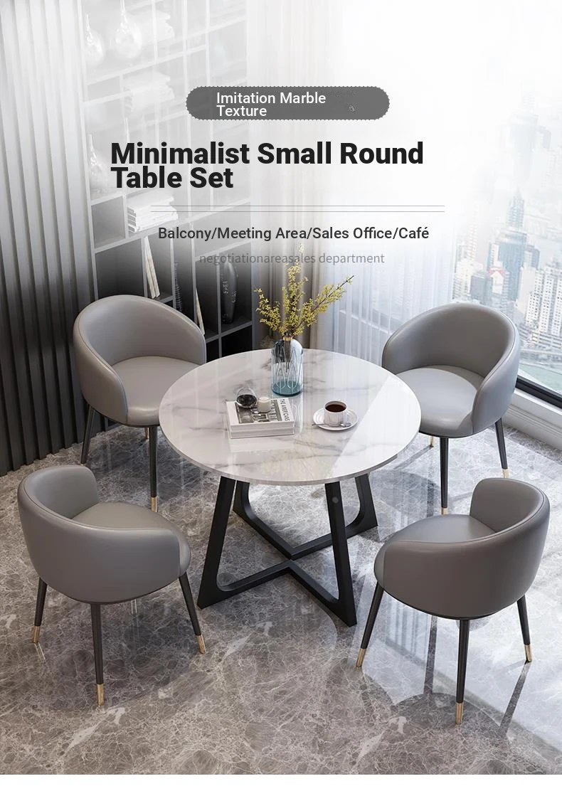 Modern Marble Luxury Round Table and Chair Set for Reception and Office Use – Elegant Sales Office Meeting Furniture with Stylish Ceramic Dining Table