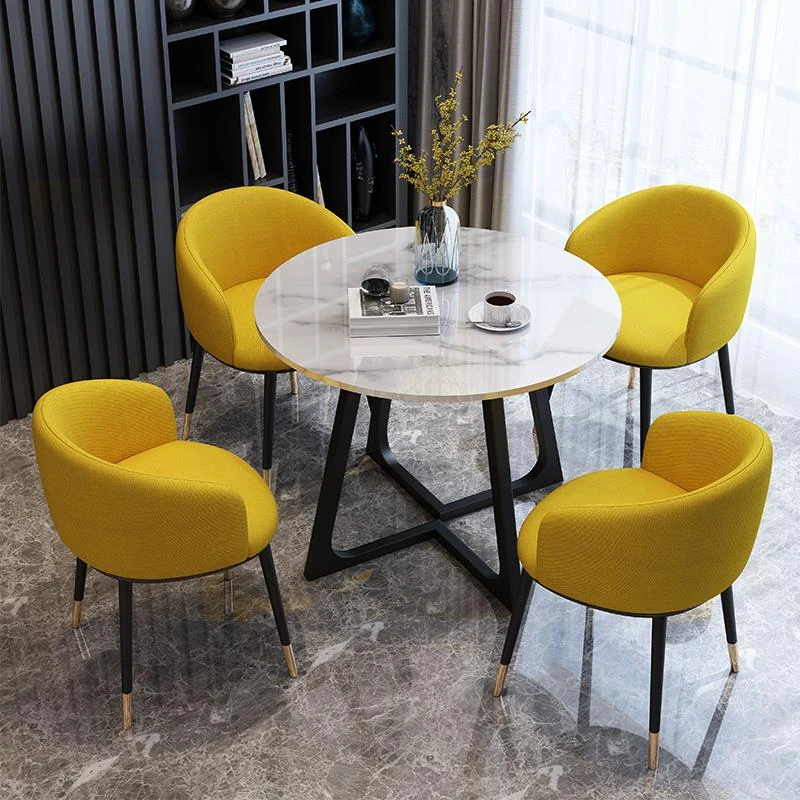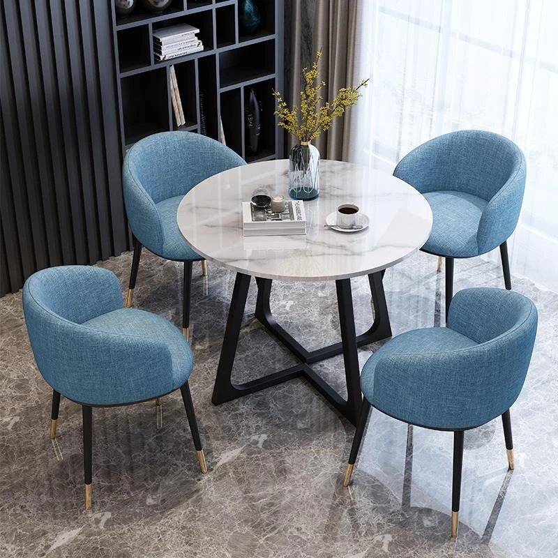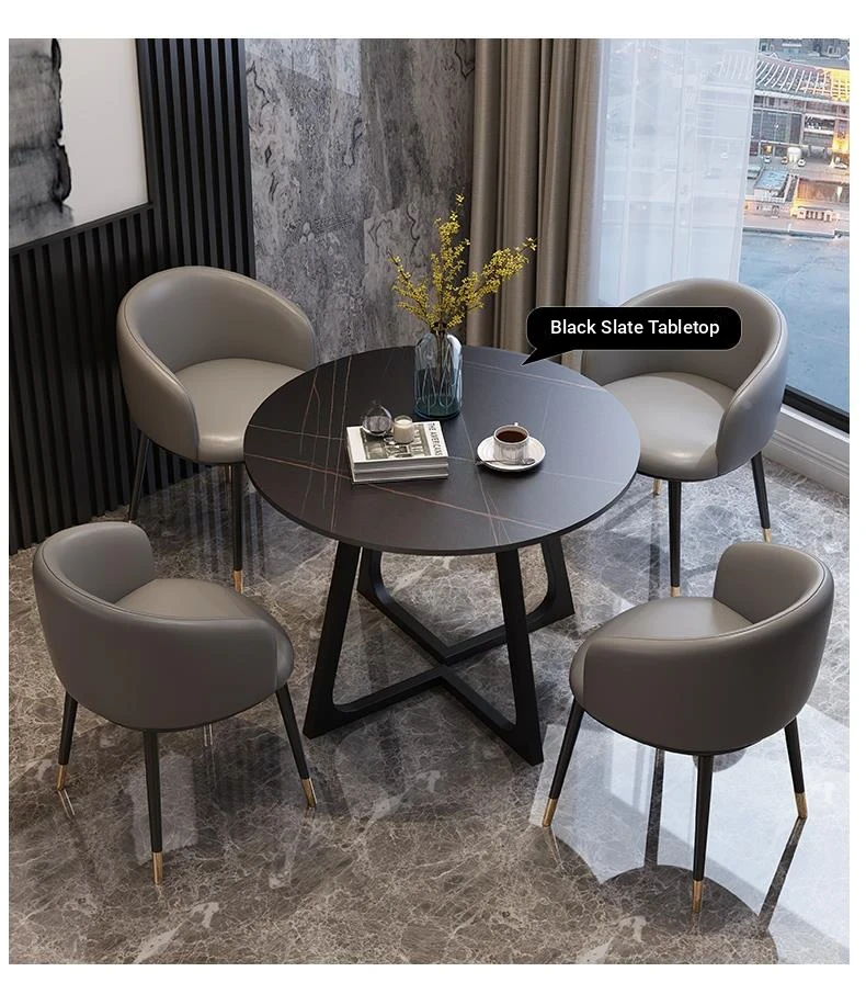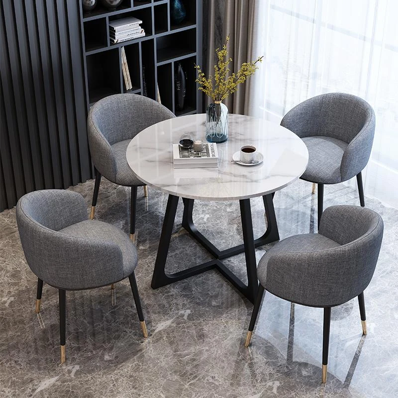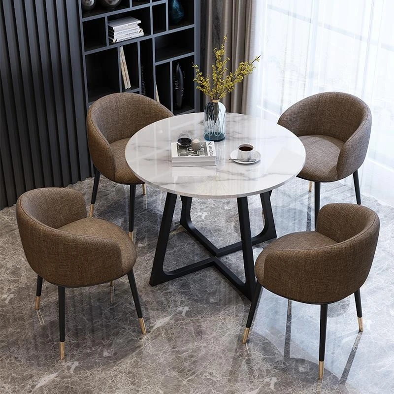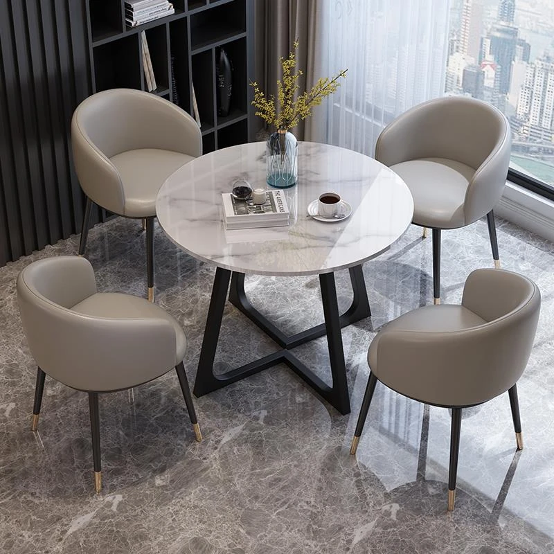 Modern Marble Luxury Round Table and Chair Set for Reception and Office Use – Elegant Sales Office Meeting Furniture with Stylish Ceramic Dining Table