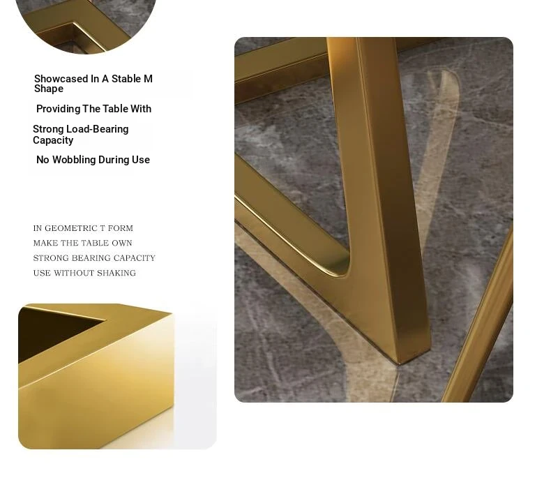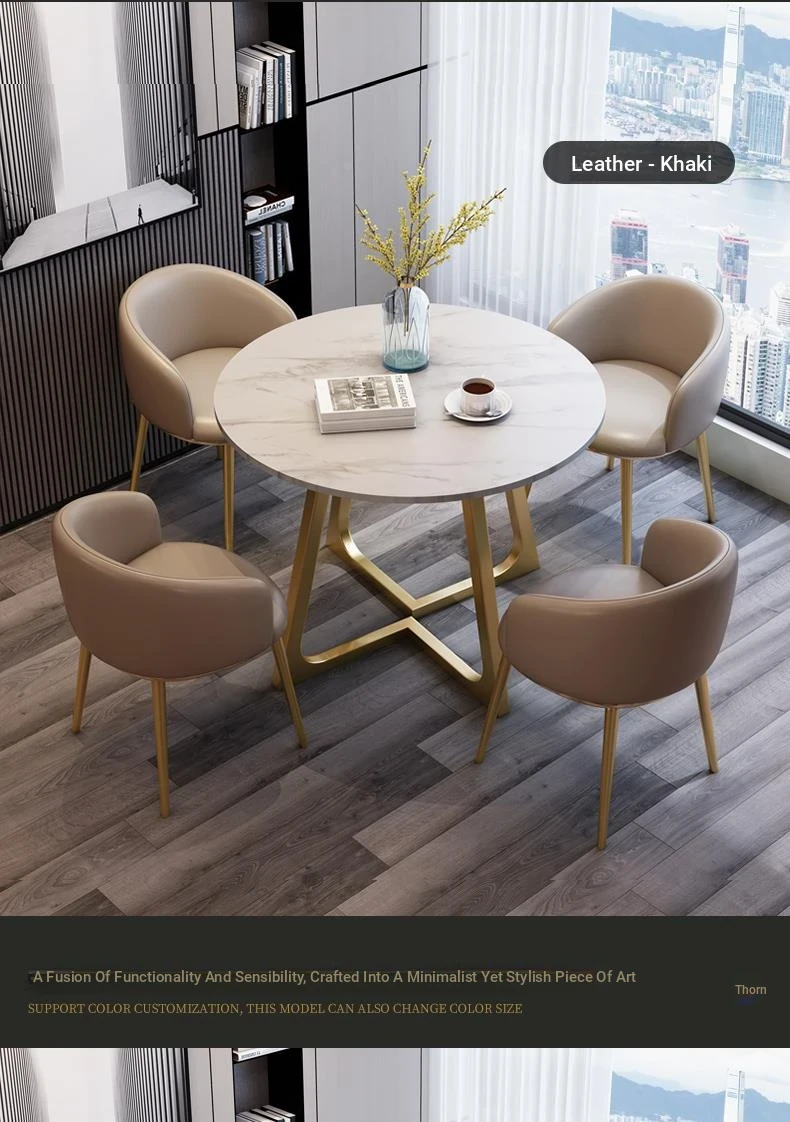 1 Table 4 chairs khaki (PU leather) Gold feet white matte rock plate