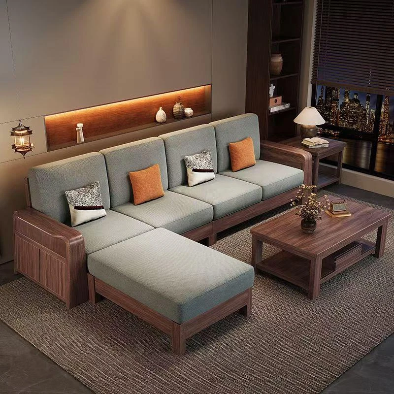 Modern Minimalist Solid Black Walnut Wood Sofa Set with Storage - Perfect for Small Living Rooms, Versatile for Winter and Summer Use, Crafted in South America.