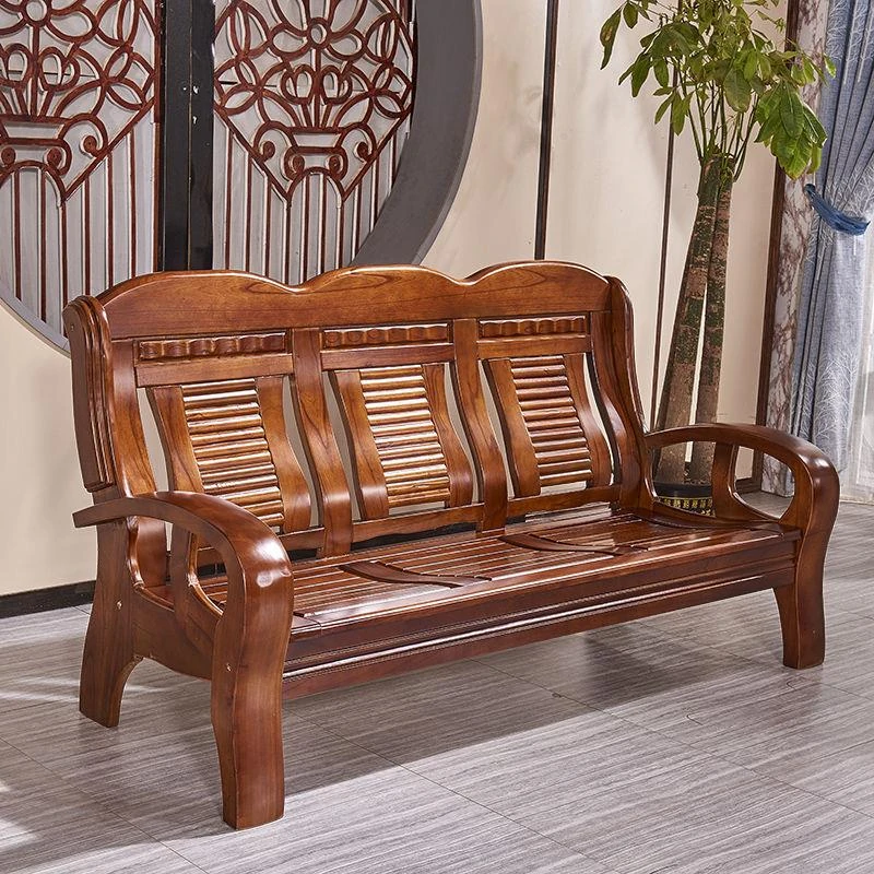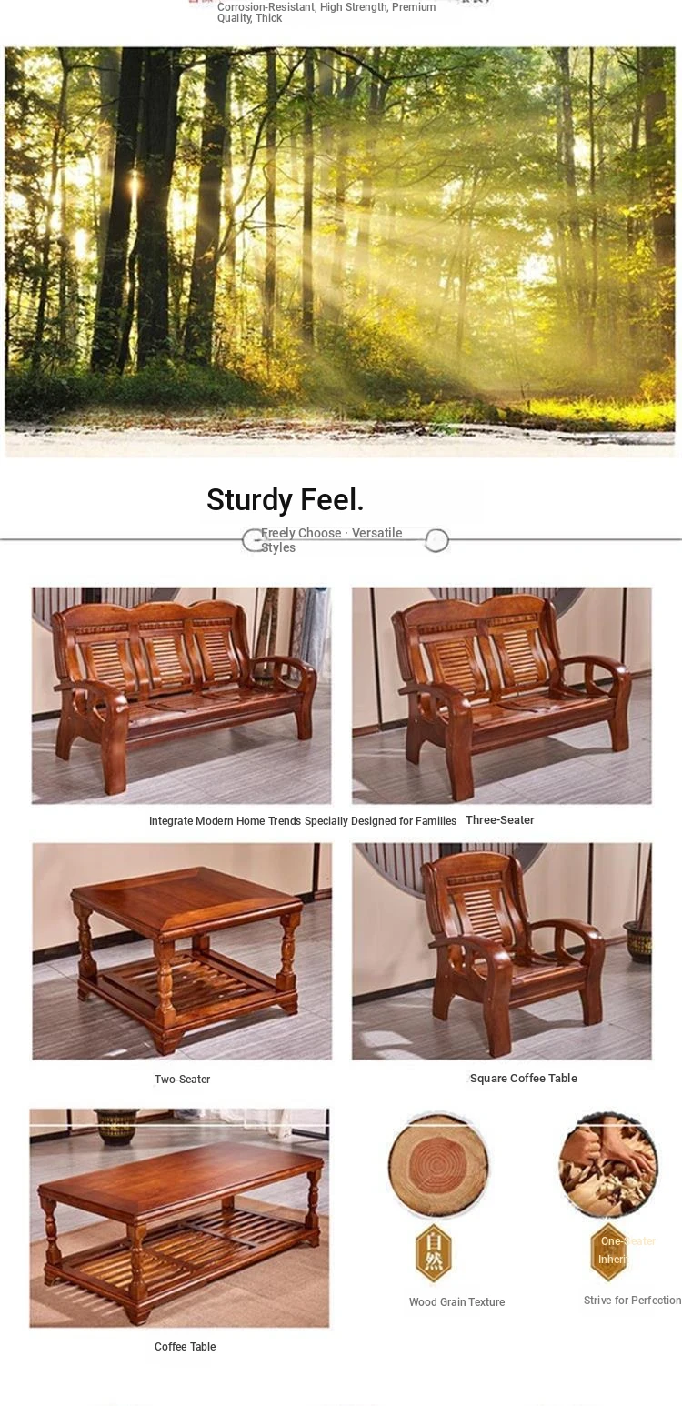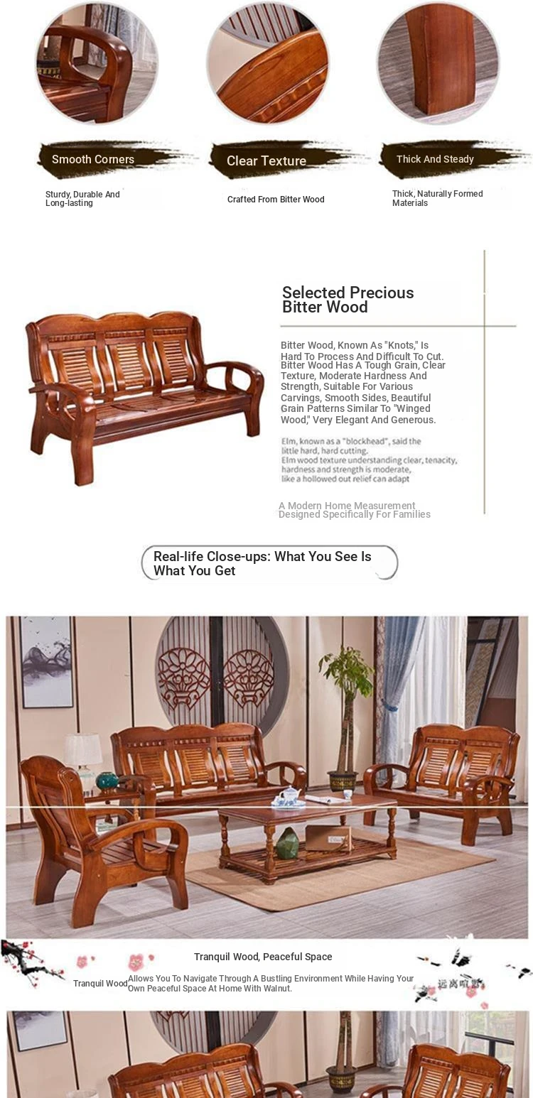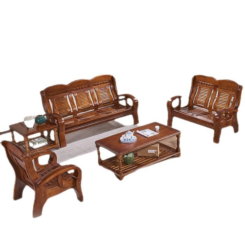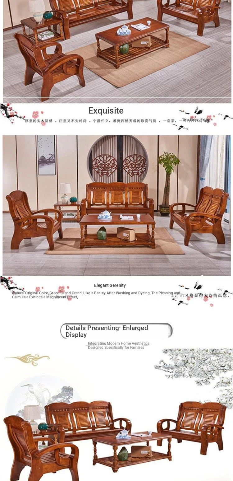 Modern Minimalist Solid Wood Sofa Set for Small Spaces - 1+2+3 Traditional Chinese Style Living Room Furniture, Perfect for Cozy Homes