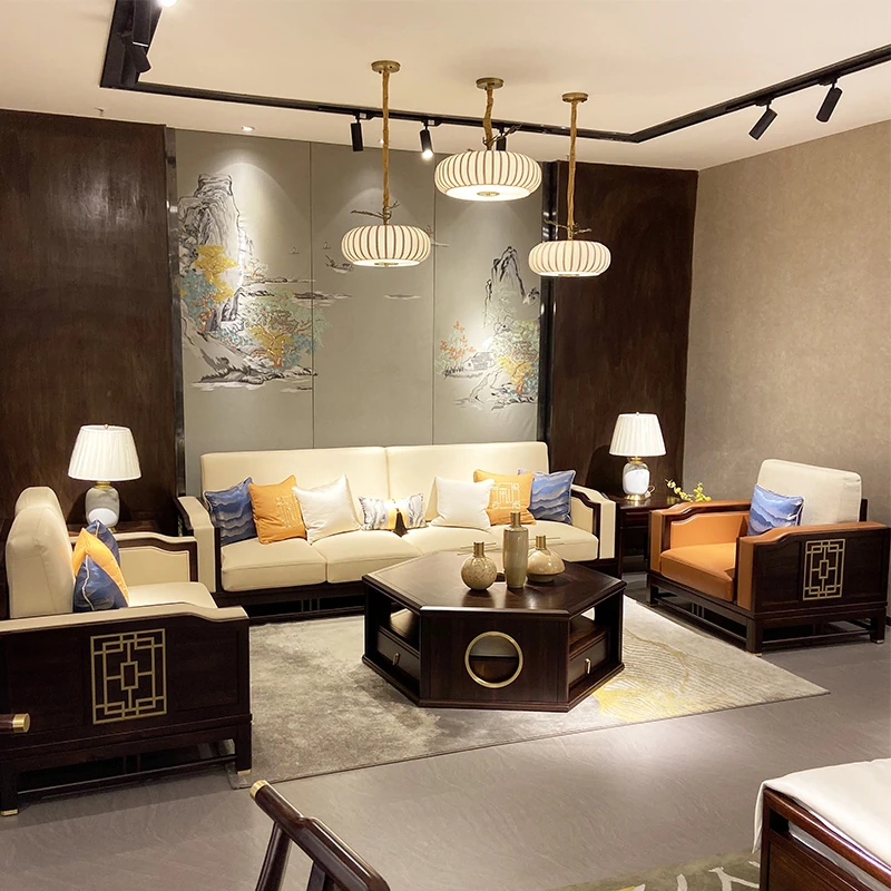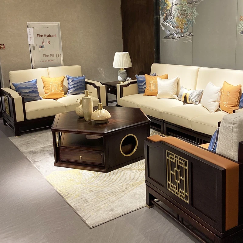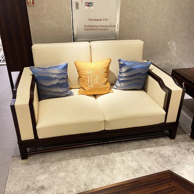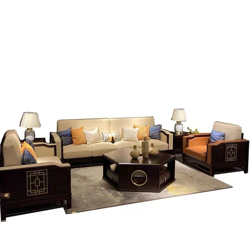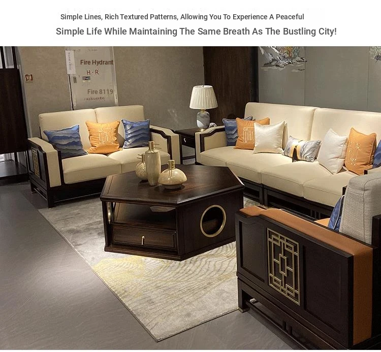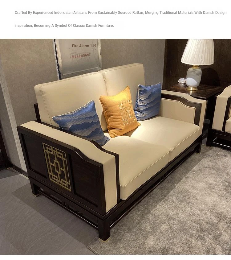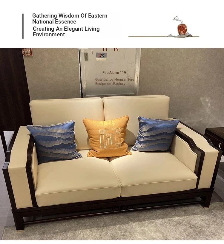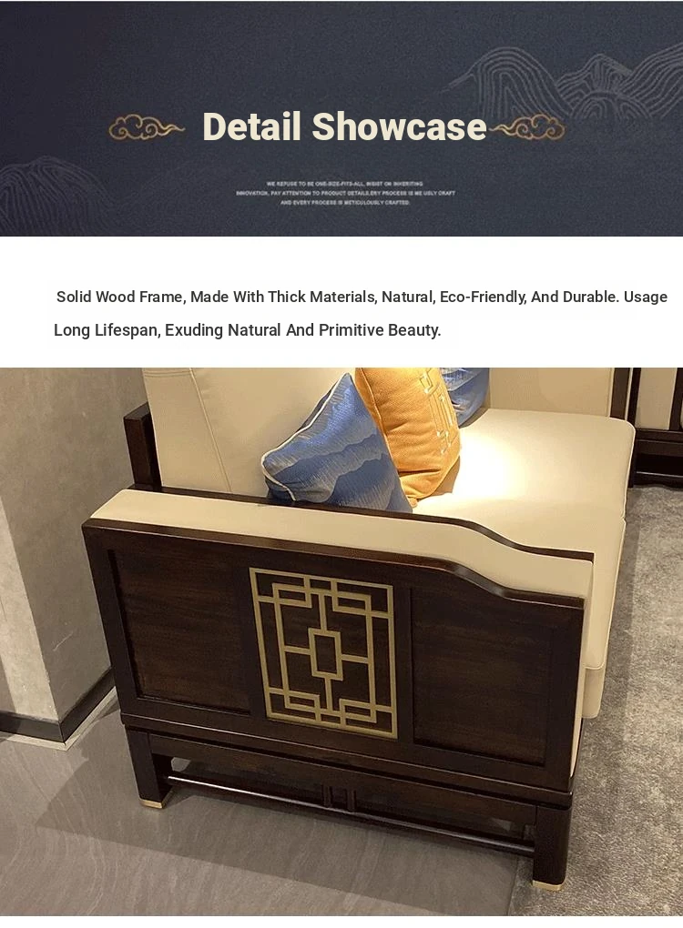 Modern Minimalist Solid Wood Sofa with Designer Touch - New Chinese Style Zen Aesthetic for Hotels, Offices, and Luxury Villas, Perfect for Large Spaces