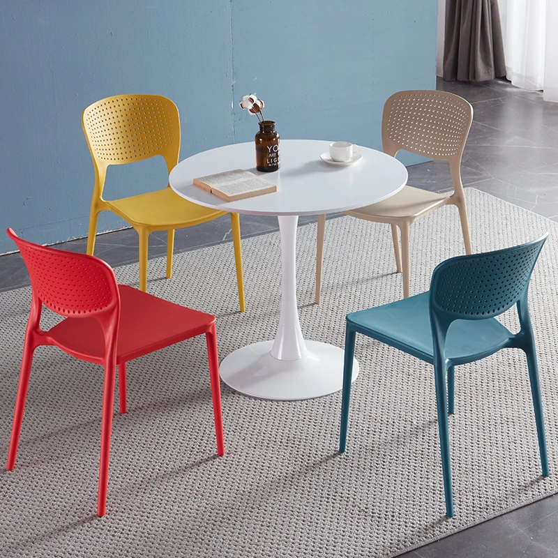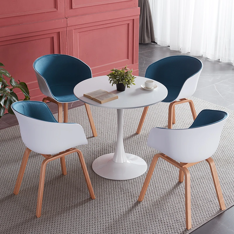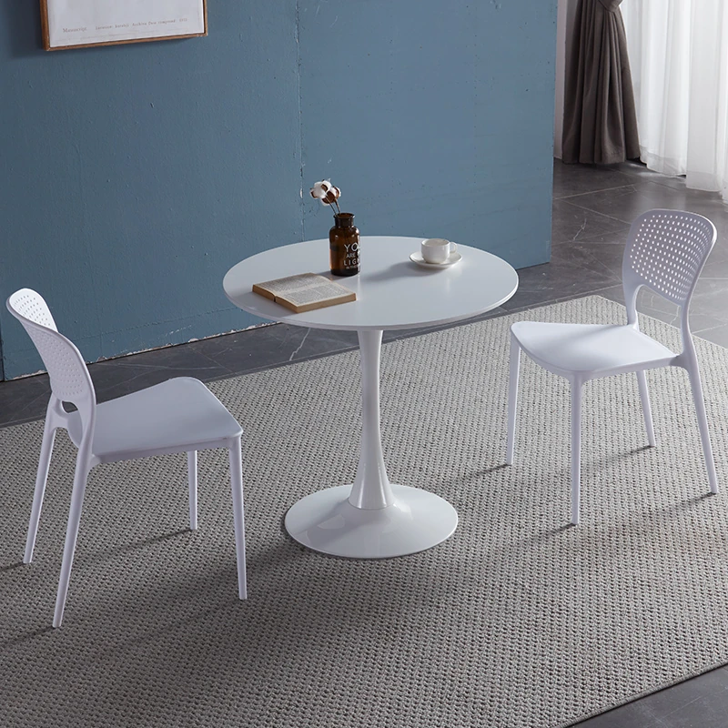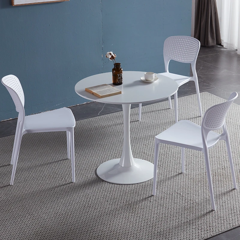 Modern Round Table and Chair Set for Mobile Stores and Reception Areas - Minimalist White Plastic Design, Perfect for Home and Business Use