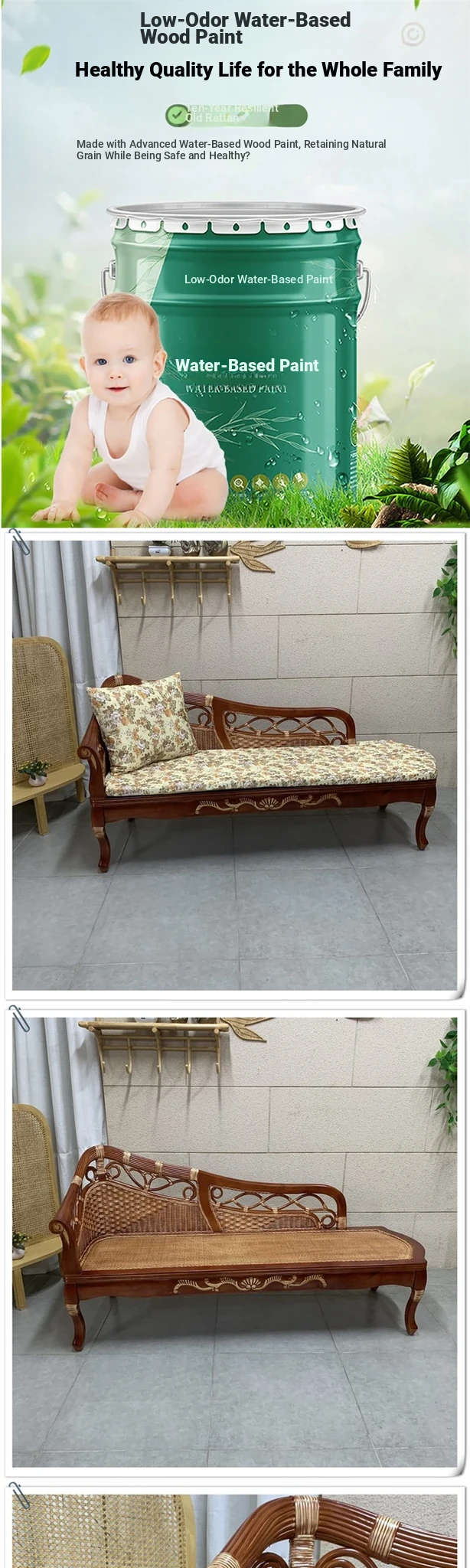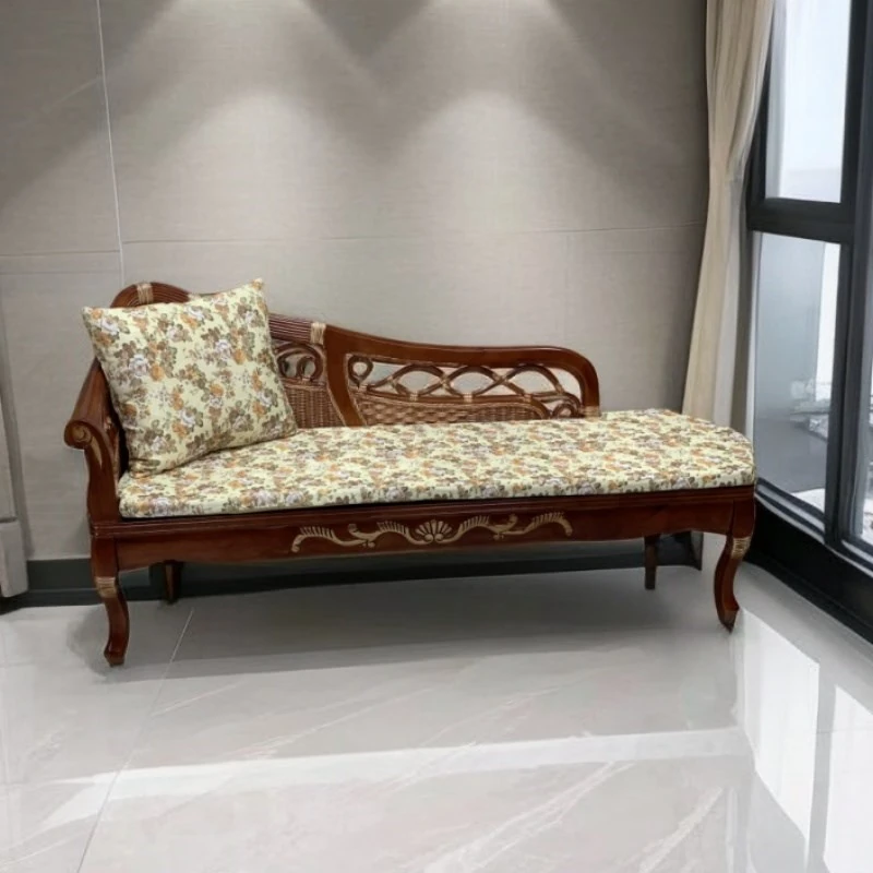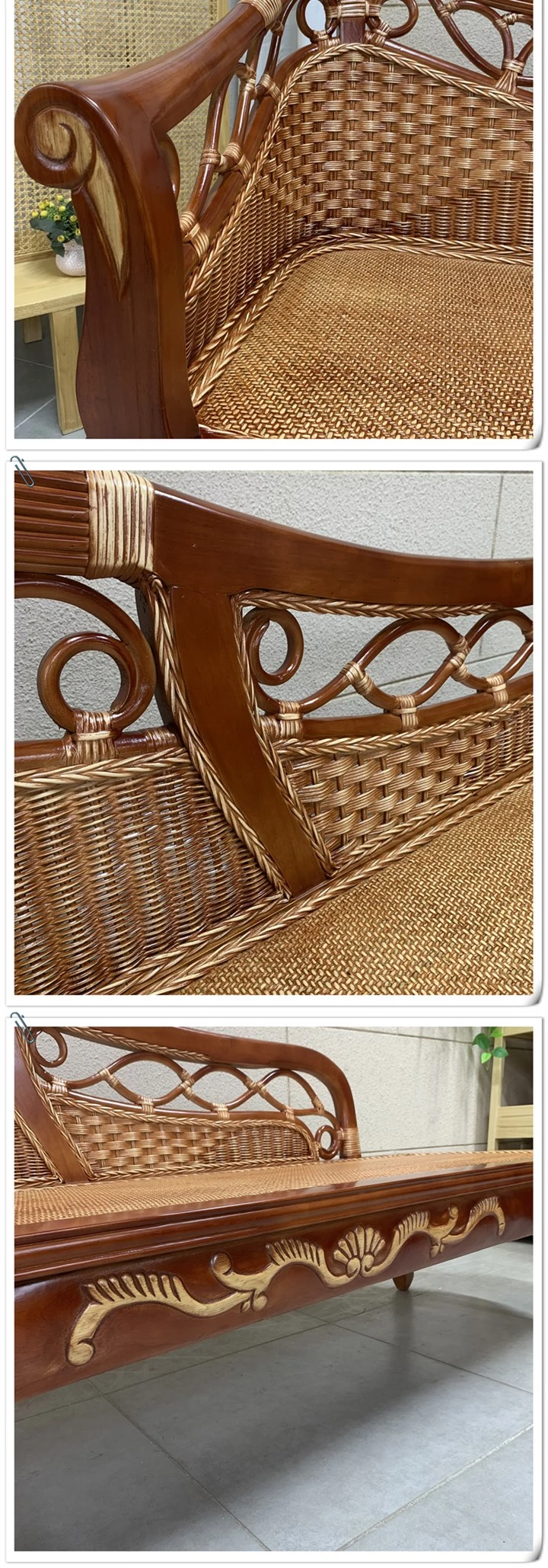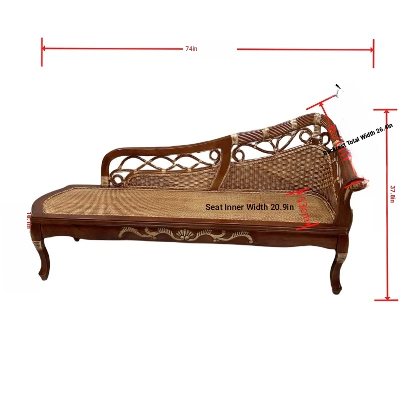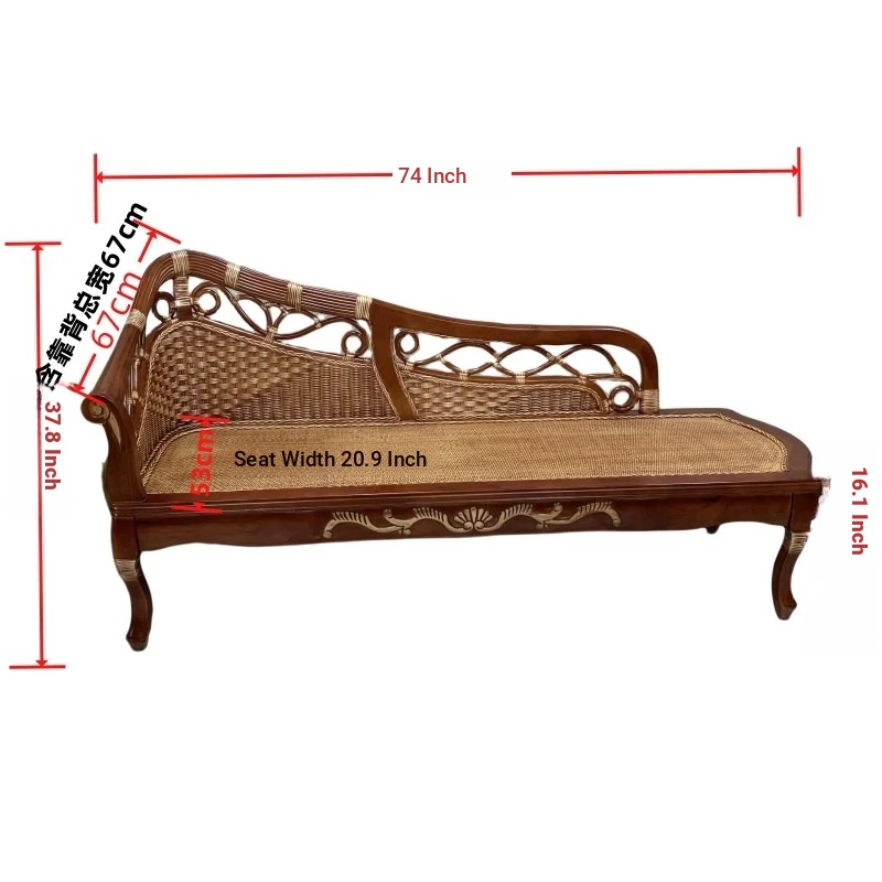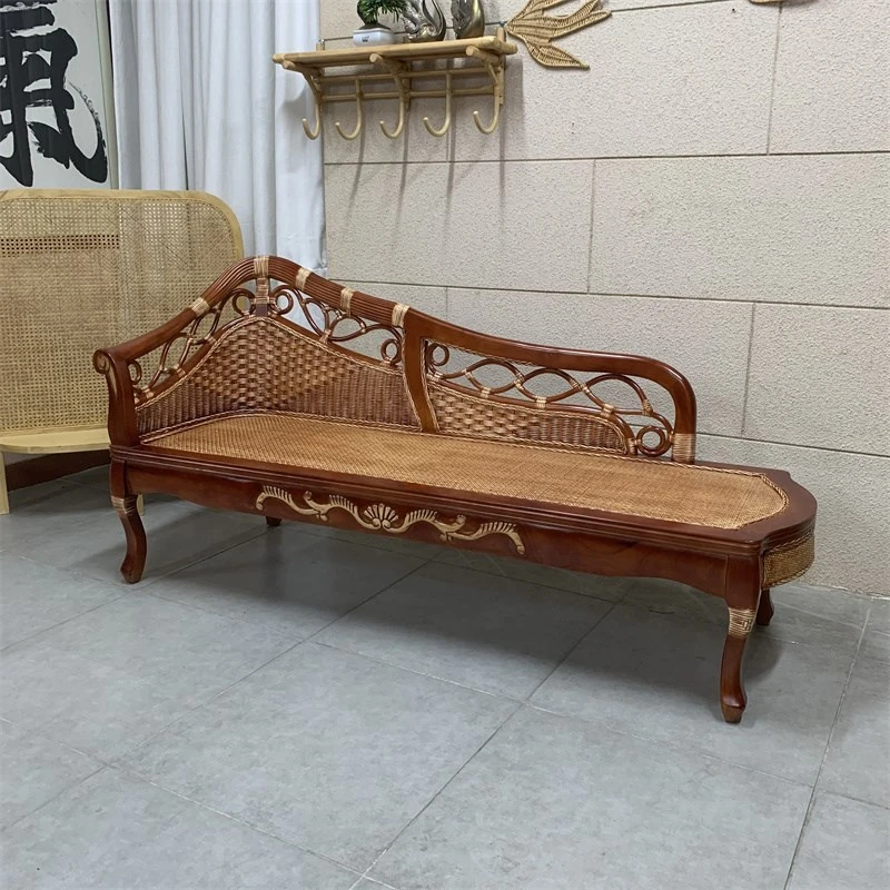 Natural Rattan Chaise Lounge - Solid Wood Daybed Sofa for Living Room & Study, Comfortable Three-Person Rattan Weaving Sofa, Perfect for Relaxation and Style