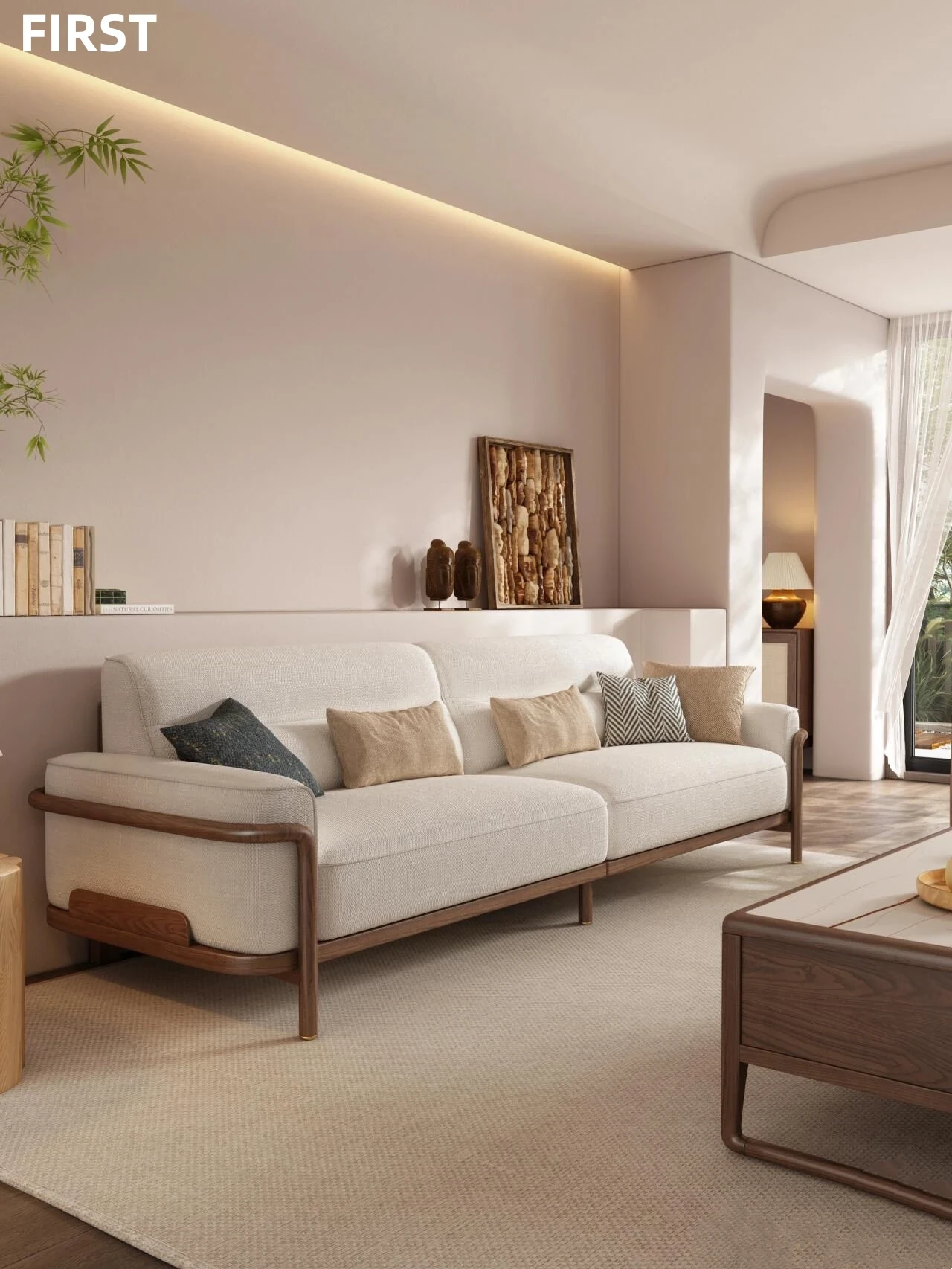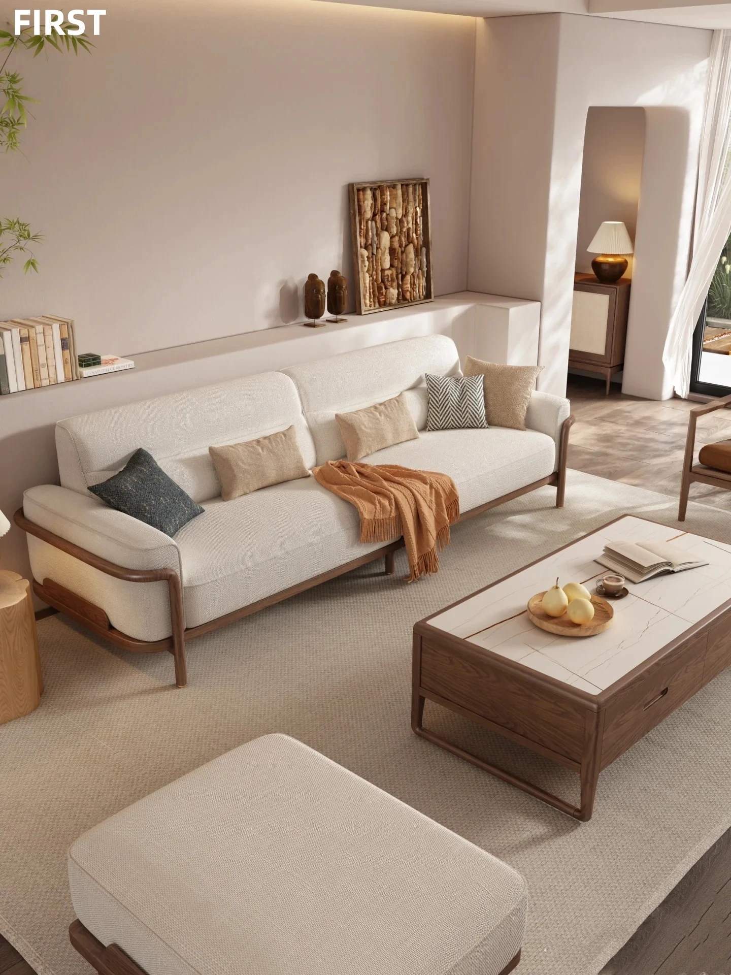 New Chinese Style High-End Minimalist Full Solid Wood Fabric Sofa for Small to Medium Living Rooms, Hotels, and Guesthouses – Stylish New Straight-Line Design