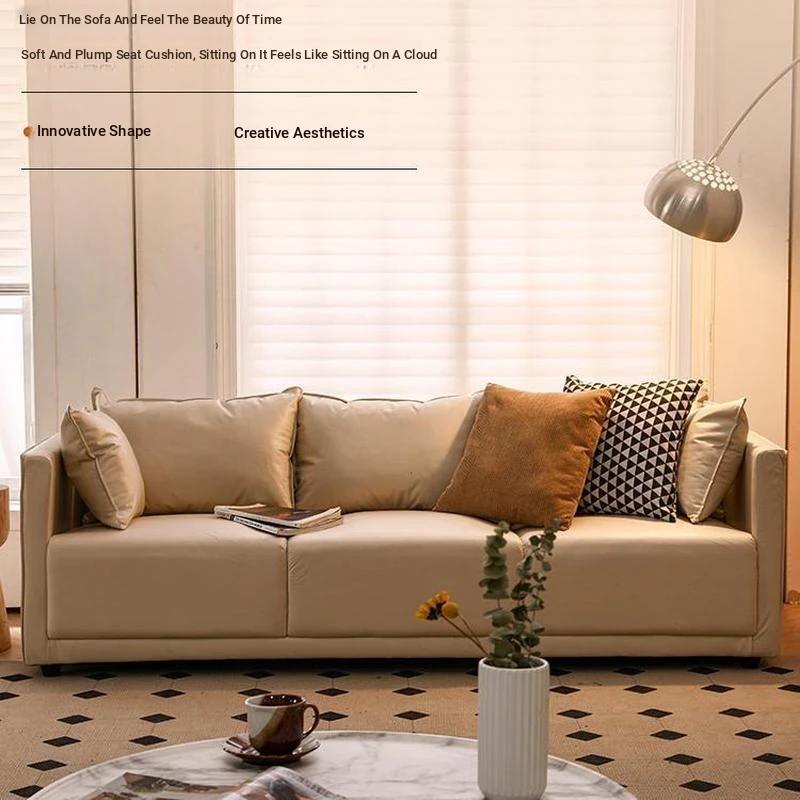 Nordic Cream Style Tech Fabric Sofa for Small Spaces - Cat-Proof, Double & Triple Seat Spring Sofa for Living Room, Trendy Design