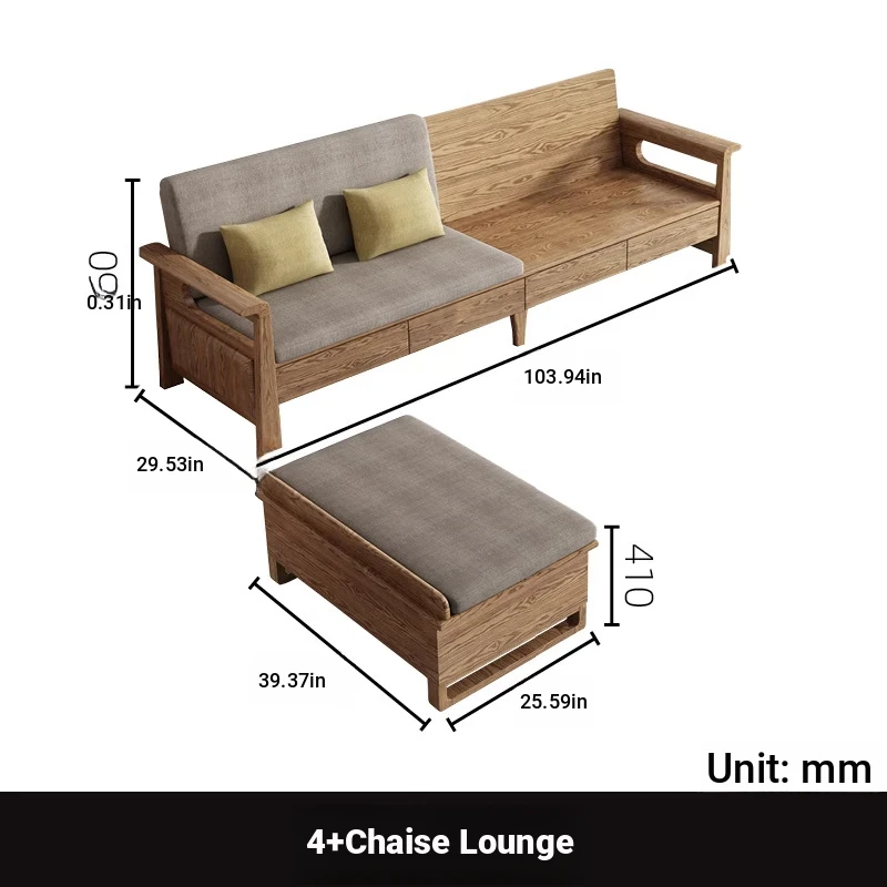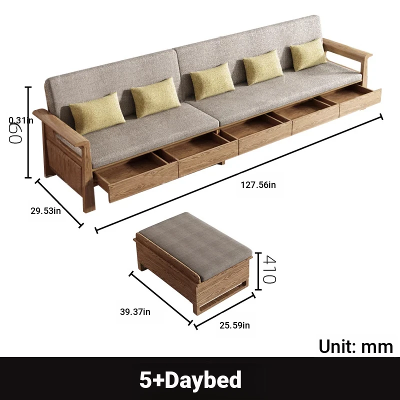 5 + chaise with storage drawers