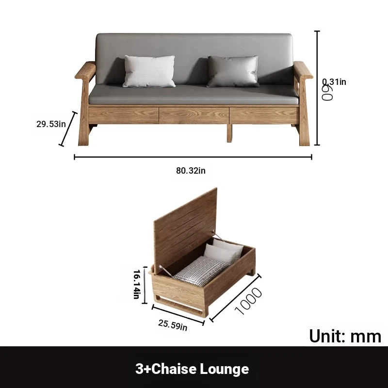 3 + chaise with storage drawers