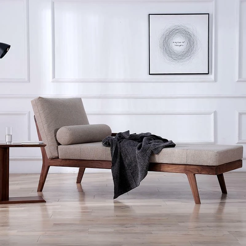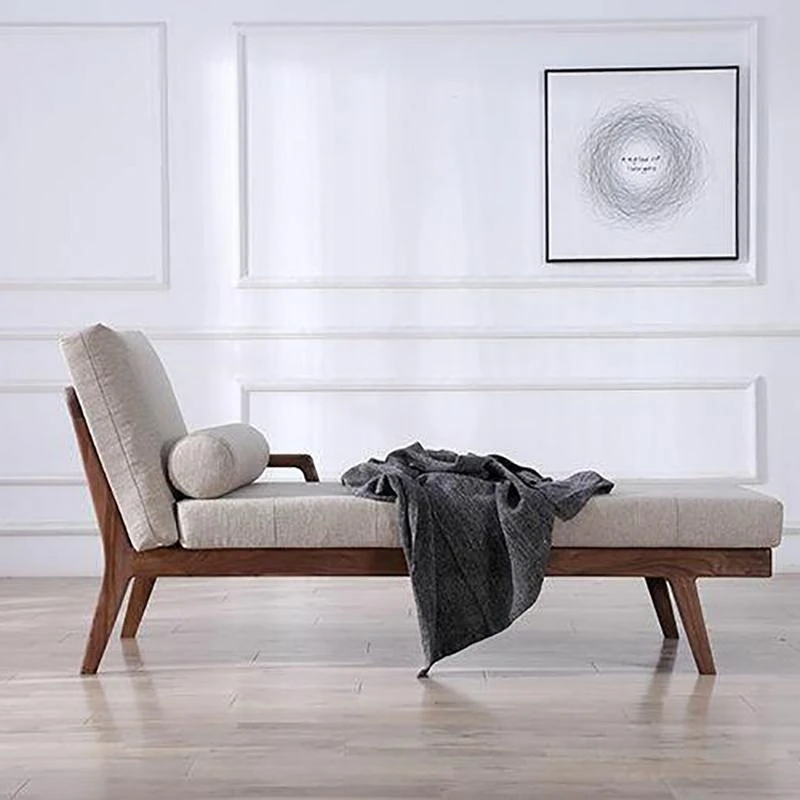North American Black Walnut and Ash Wood Sofa Bed - New Chinese Style Recliner for Office, Hotel, and B&B - Elegant Chaise Lounge for Living Room Furniture