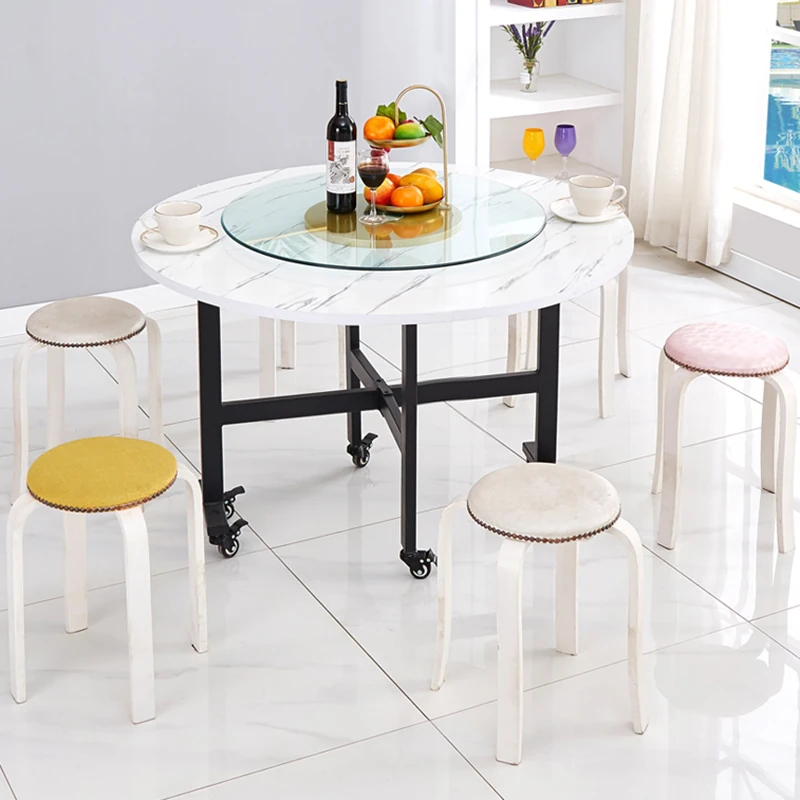 Portable Round Folding Dining Table with Wheels - Ideal for Small Living Spaces, Perfect for Family Meals and Gatherings