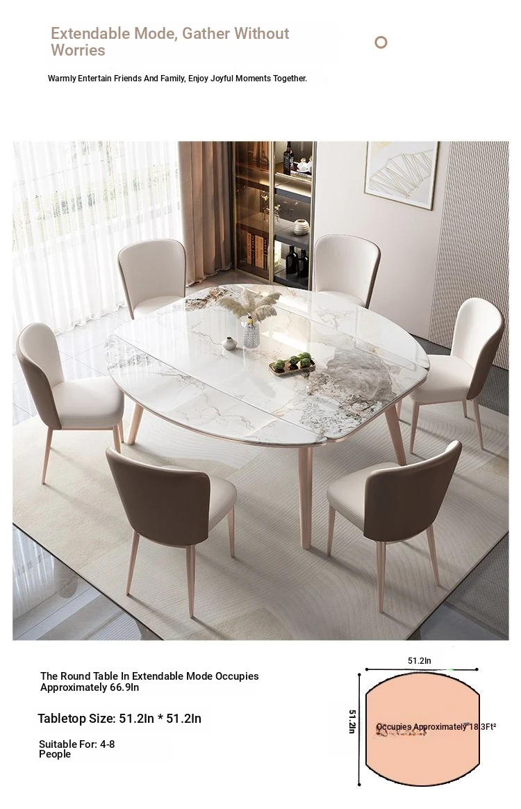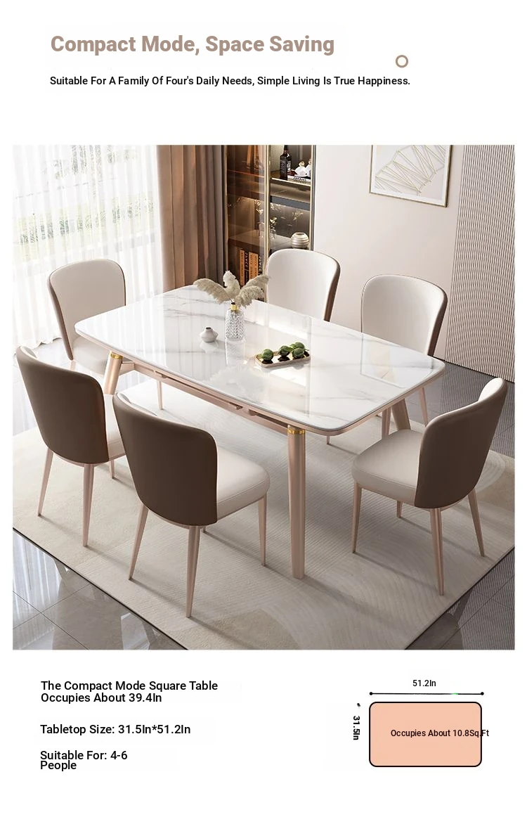 [0.47in Rock Plate] Telescopic Dining Table + Guangpai Chair * 6