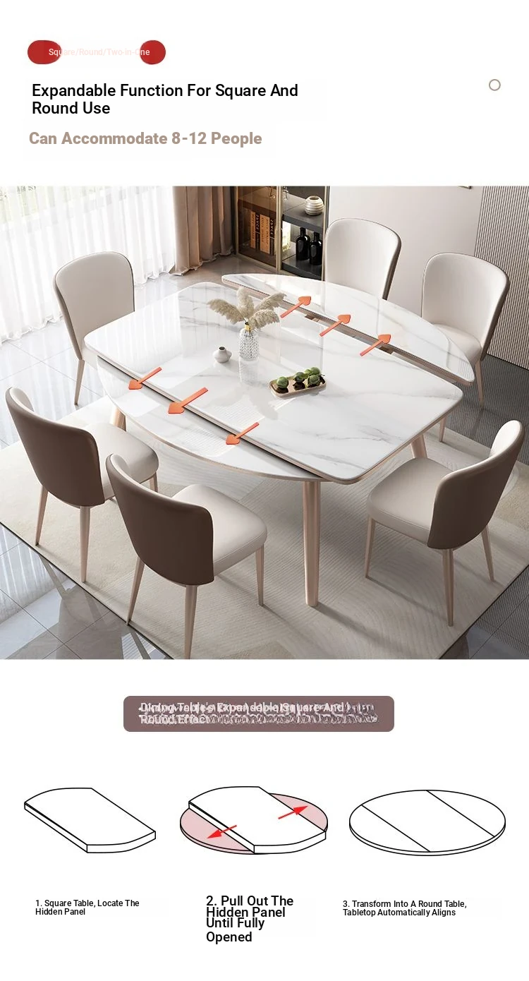 [0.47in Rock Plate] Telescopic Dining Table + Guangpai Chair * 8
