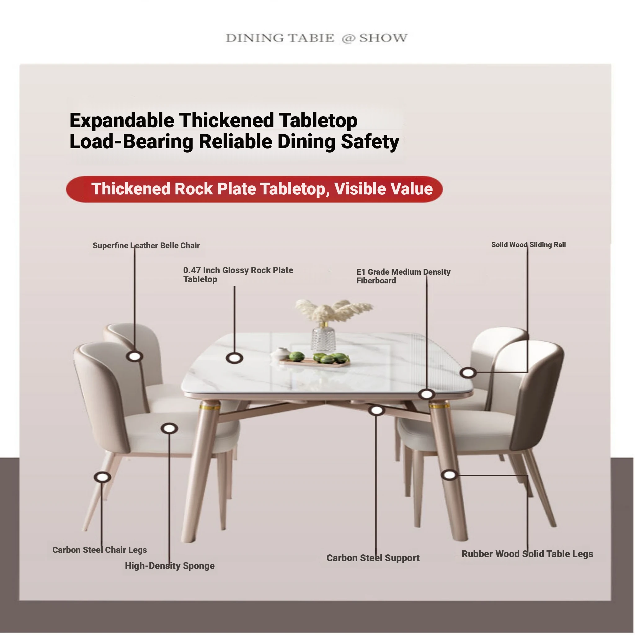 [0.47in Rock Plate] Telescopic Dining Table + Guangpai Chair * 4
