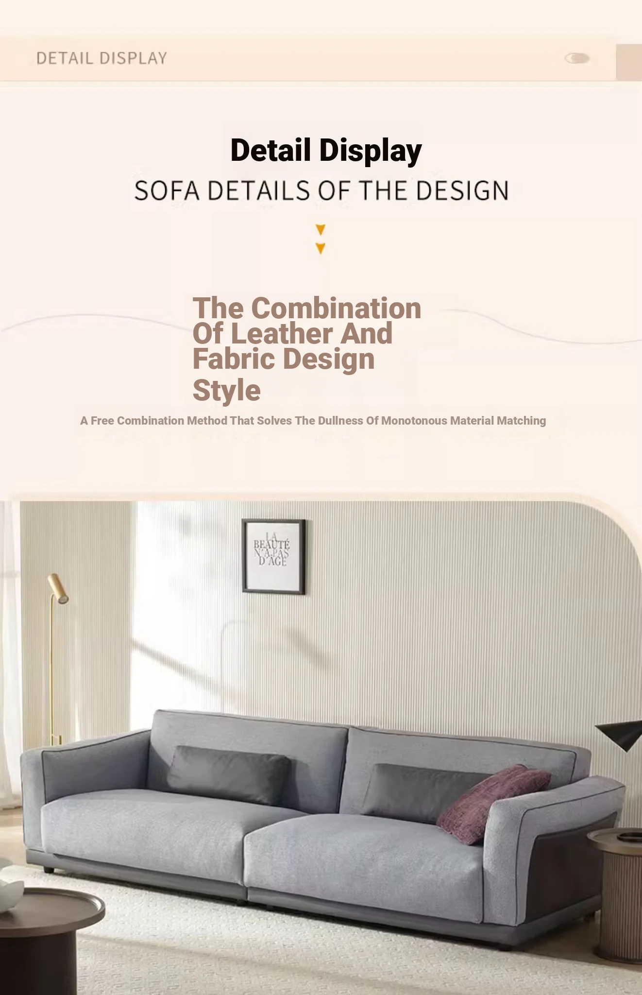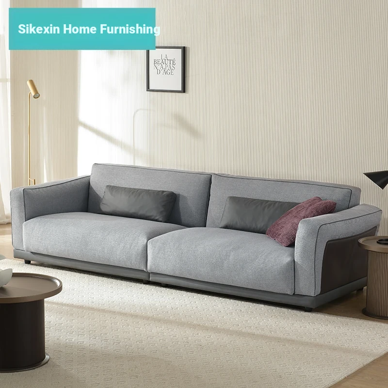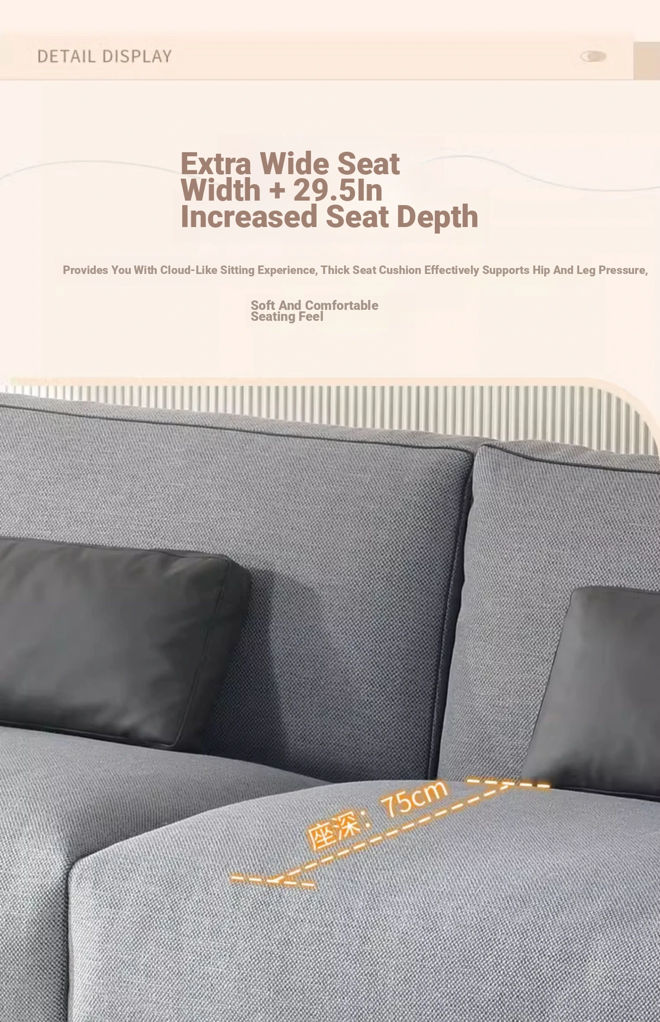 Skeexin FS1263 Modern Minimalist Luxury Wide Deep Seat Cotton Linen Tech Leather Sofa - Elegant Store Model for Ultimate Comfort