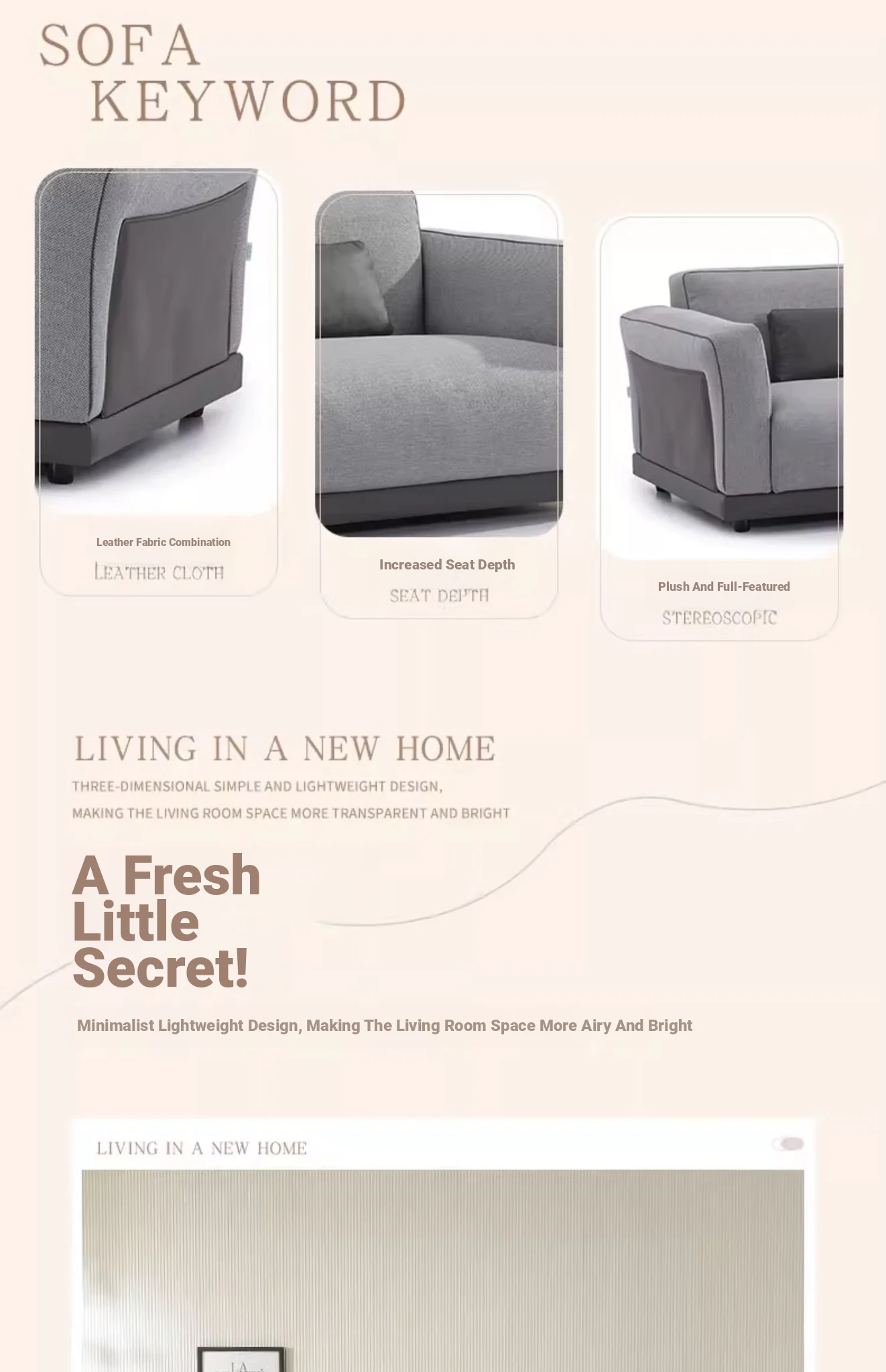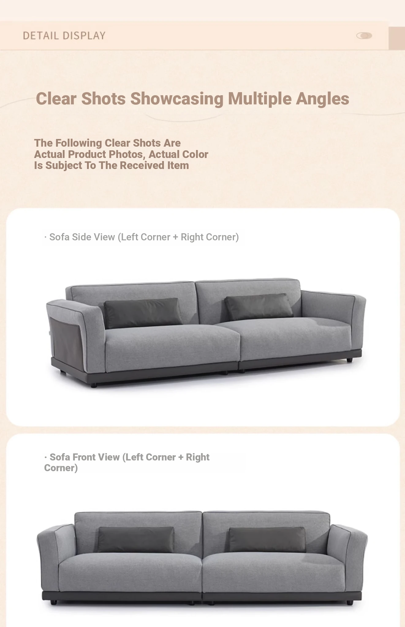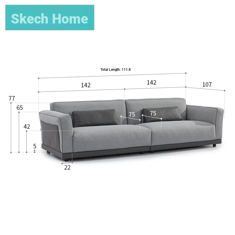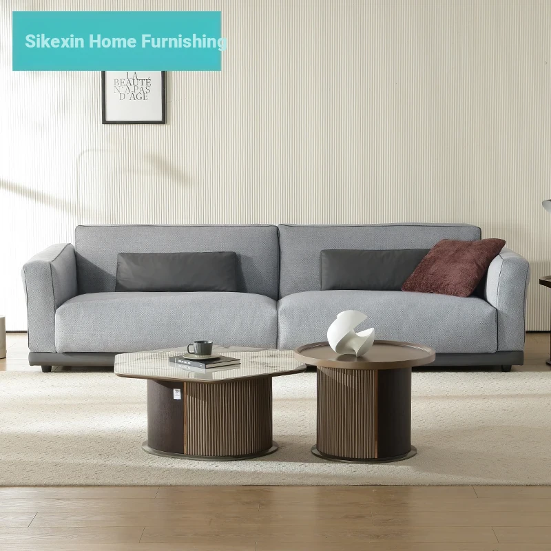 Skeexin FS1263 Modern Minimalist Luxury Wide Deep Seat Cotton Linen Tech Leather Sofa - Elegant Store Model for Ultimate Comfort
