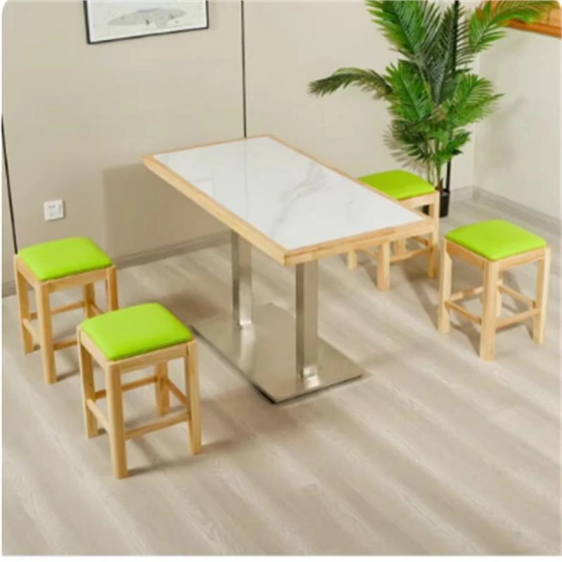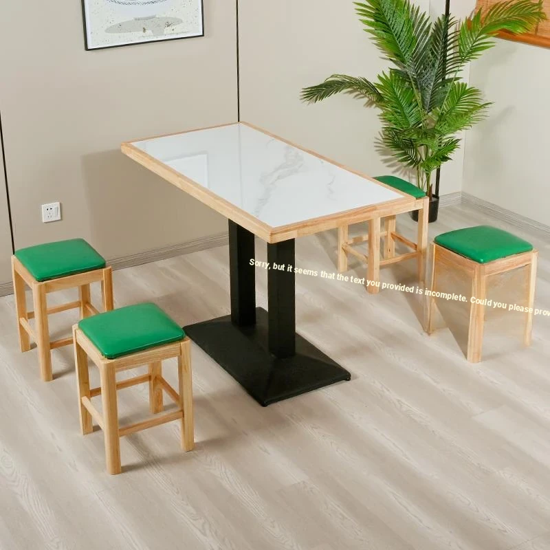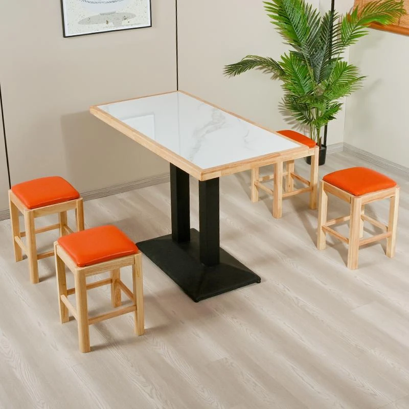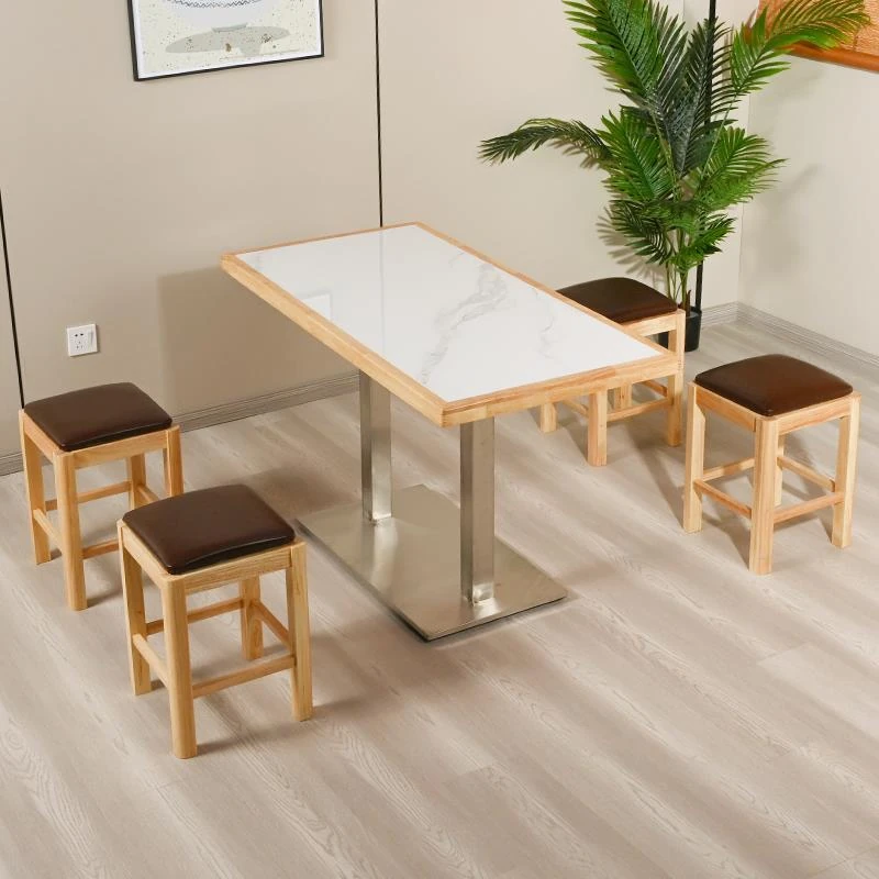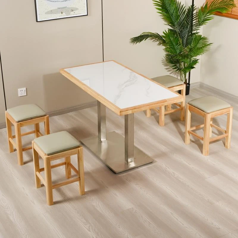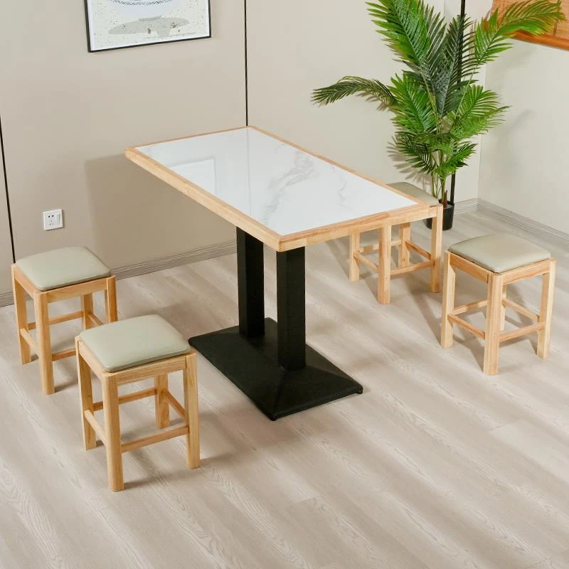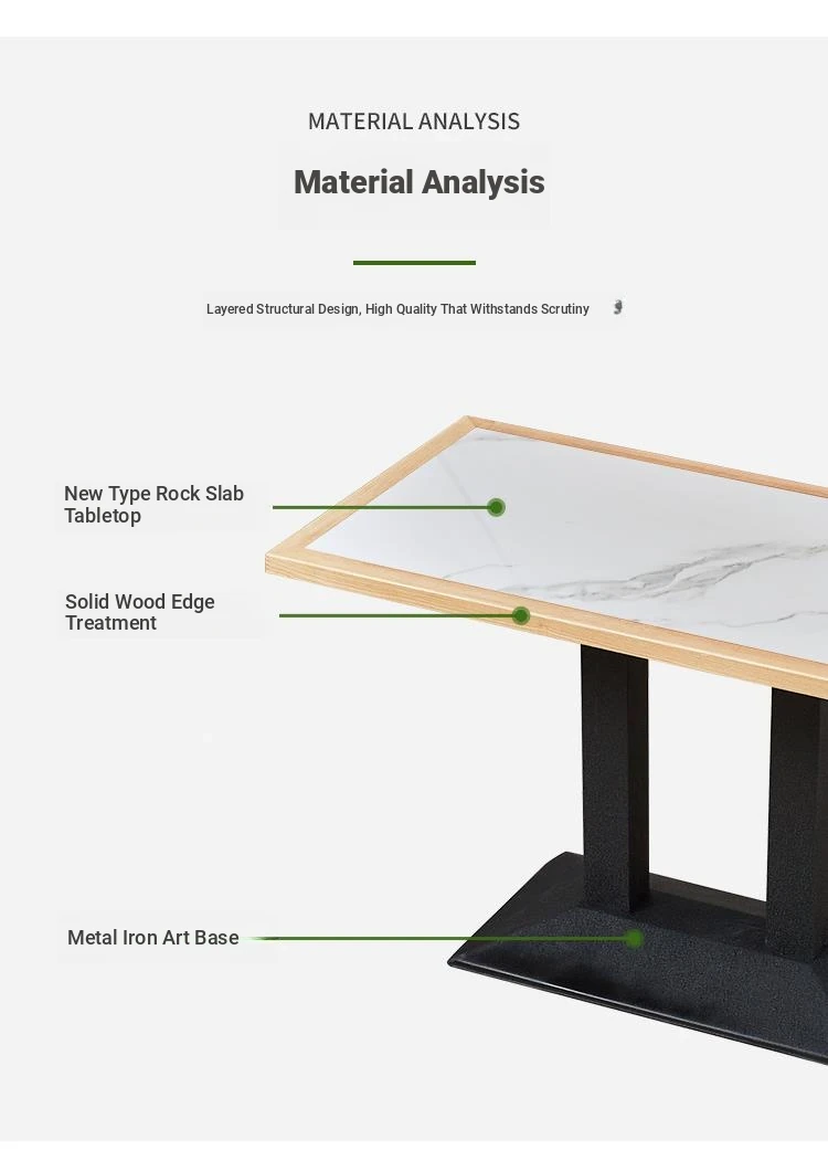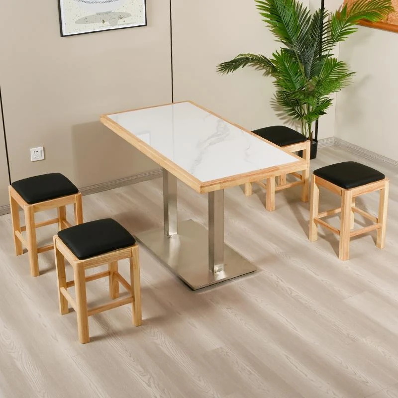 Solid Wood Rock Plate Dining Table for Commercial Use - Ideal for Snack Bars, Milk Tea Shops, Cafés, Hot Pot Restaurants, BBQs, and Fast Food Outlets. Perfect Blend of Style and Durability for Your Dining Experience!