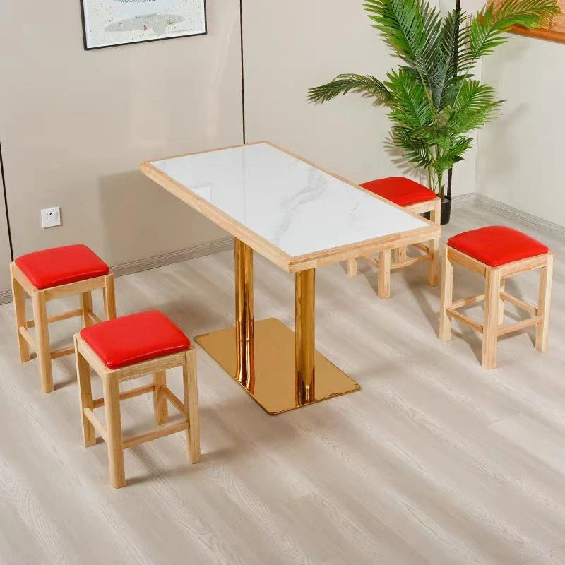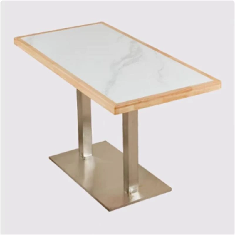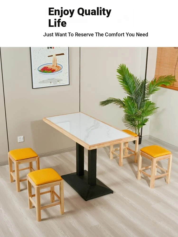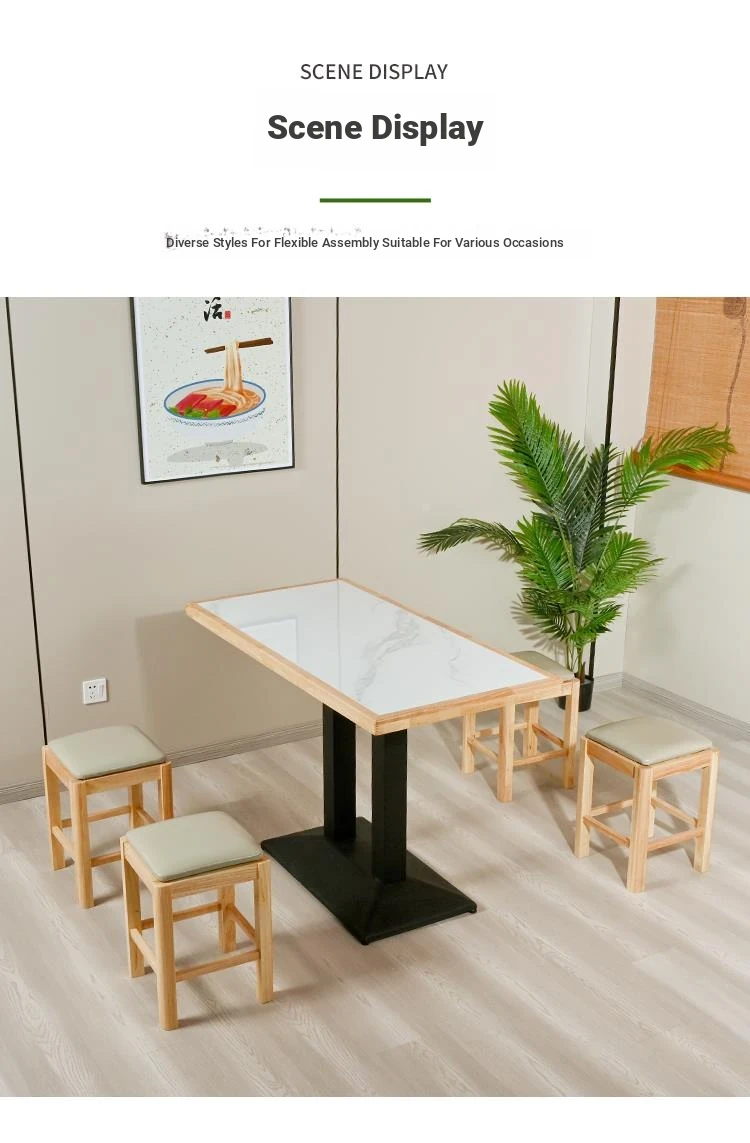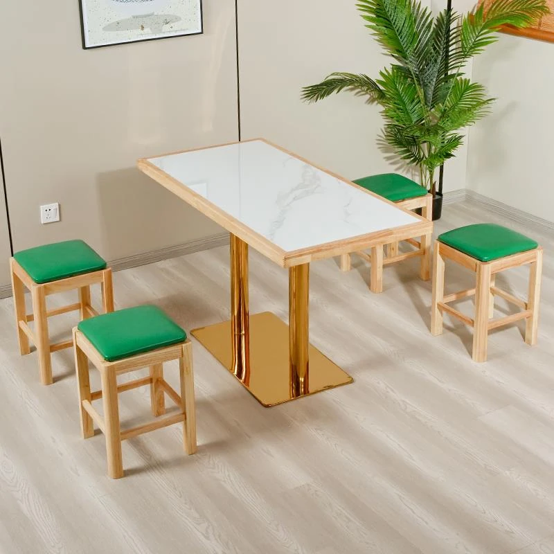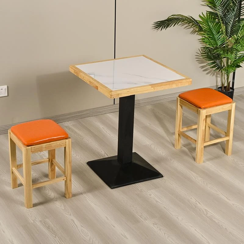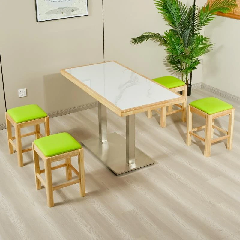 Solid Wood Rock Plate Dining Table for Commercial Use - Ideal for Snack Bars, Milk Tea Shops, Cafés, Hot Pot Restaurants, BBQs, and Fast Food Outlets. Perfect Blend of Style and Durability for Your Dining Experience!