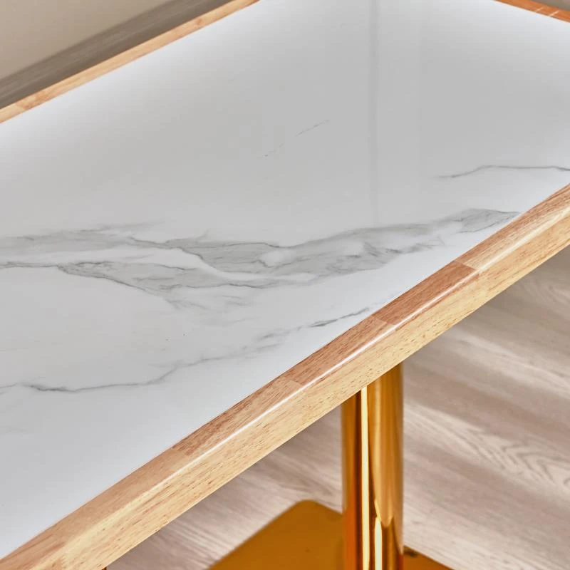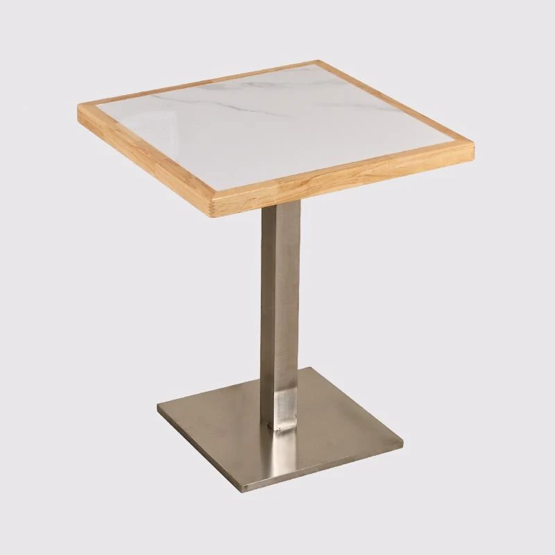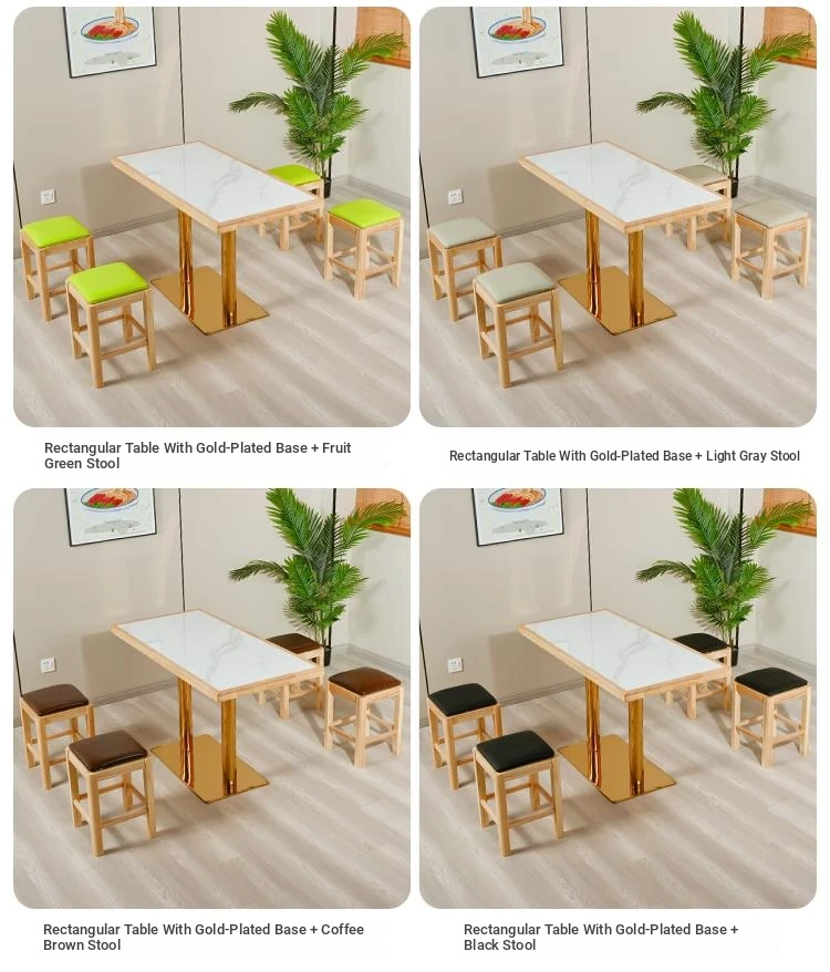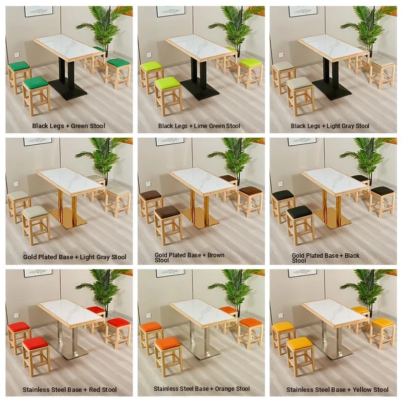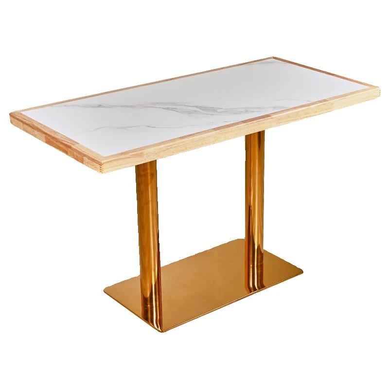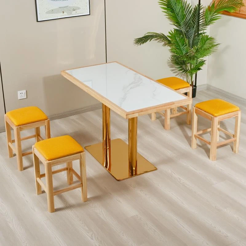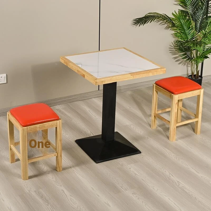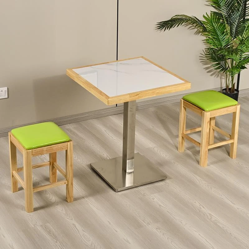 Solid Wood Rock Plate Dining Table for Commercial Use - Ideal for Snack Bars, Milk Tea Shops, Cafés, Hot Pot Restaurants, BBQs, and Fast Food Outlets. Perfect Blend of Style and Durability for Your Dining Experience!