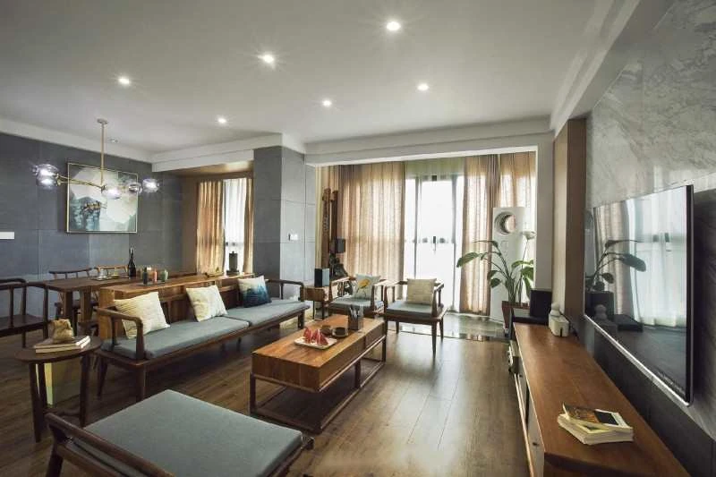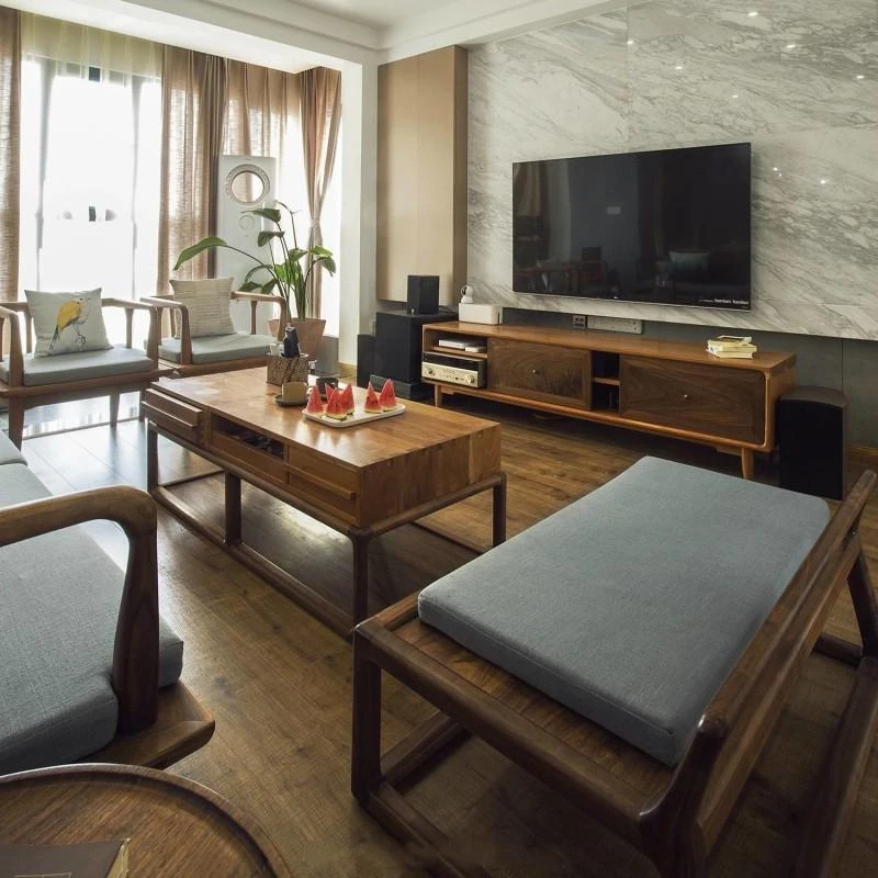 Stylish Black Walnut Round Dining Table with Expandable Island Design - Modern K-Style Chinese Tea Table, Zen-Inspired Solid Wood Furniture for Home Use