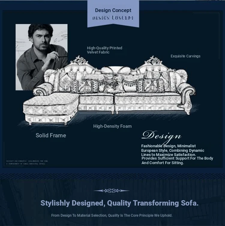Stylish European Fabric Sofa Set for Living Room – Modern L-Shaped Corner Chaise Lounge with Solid Wood, Perfect for Small to Large Spaces, Luxurious Design