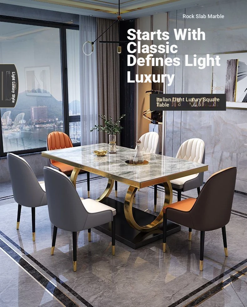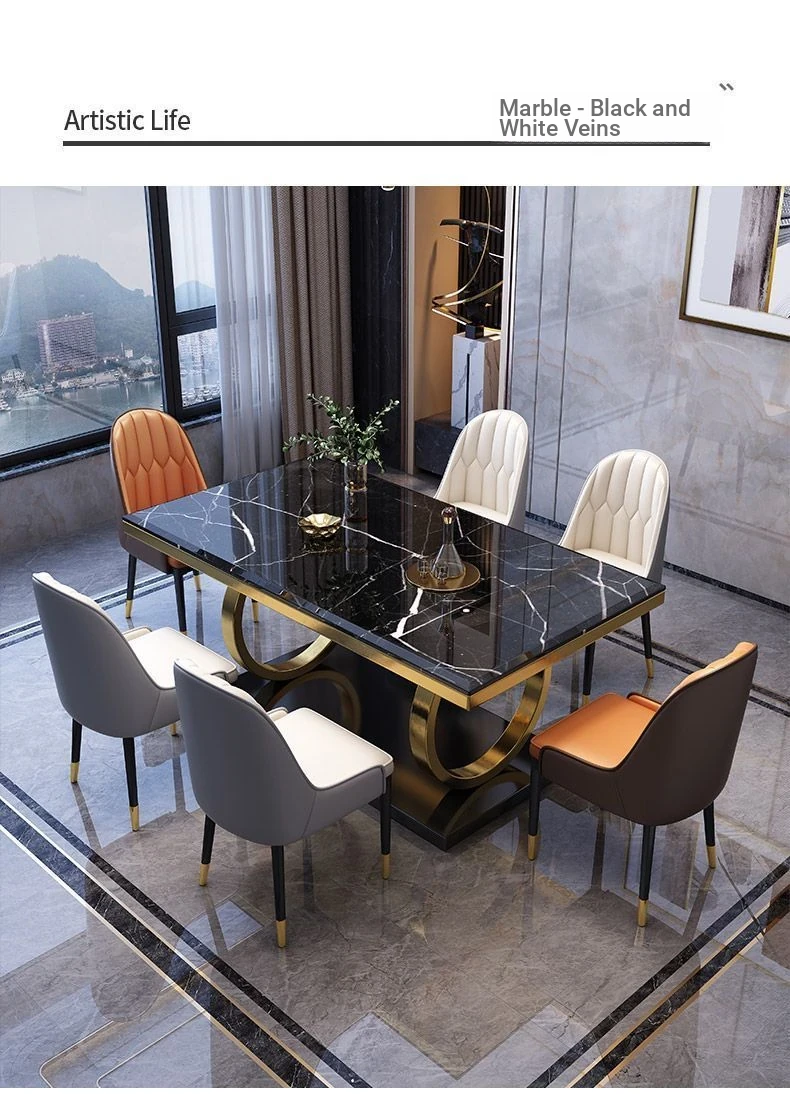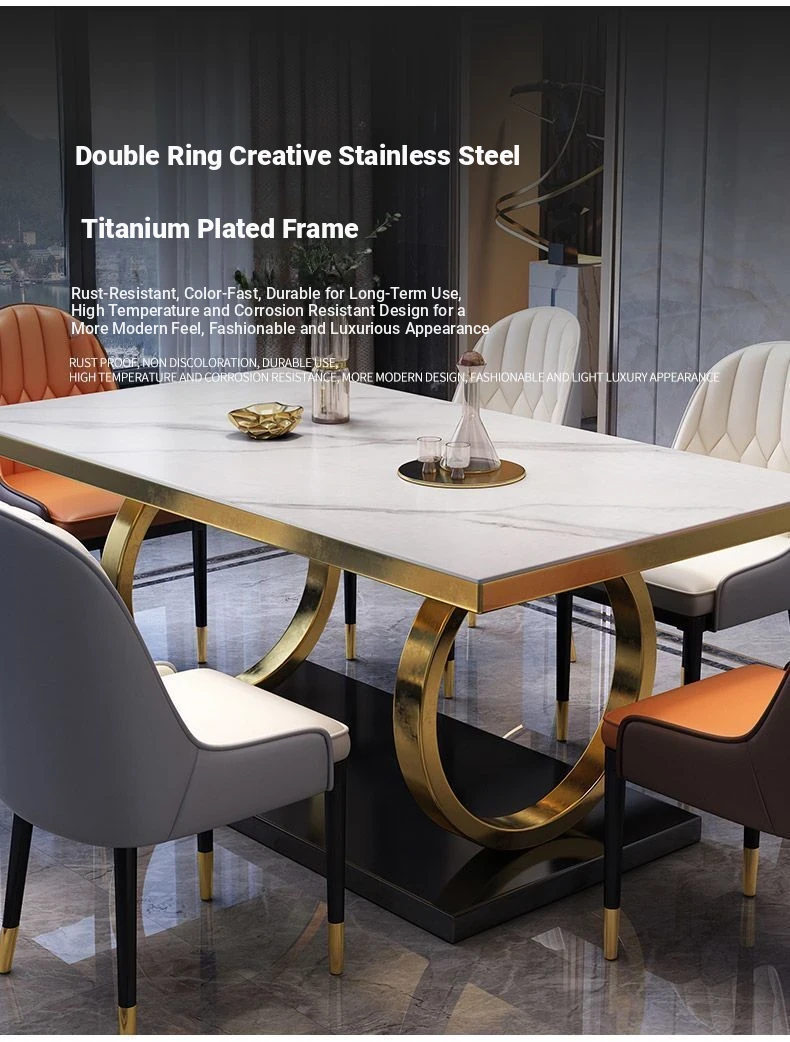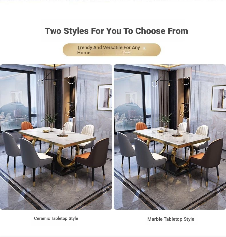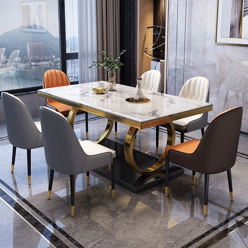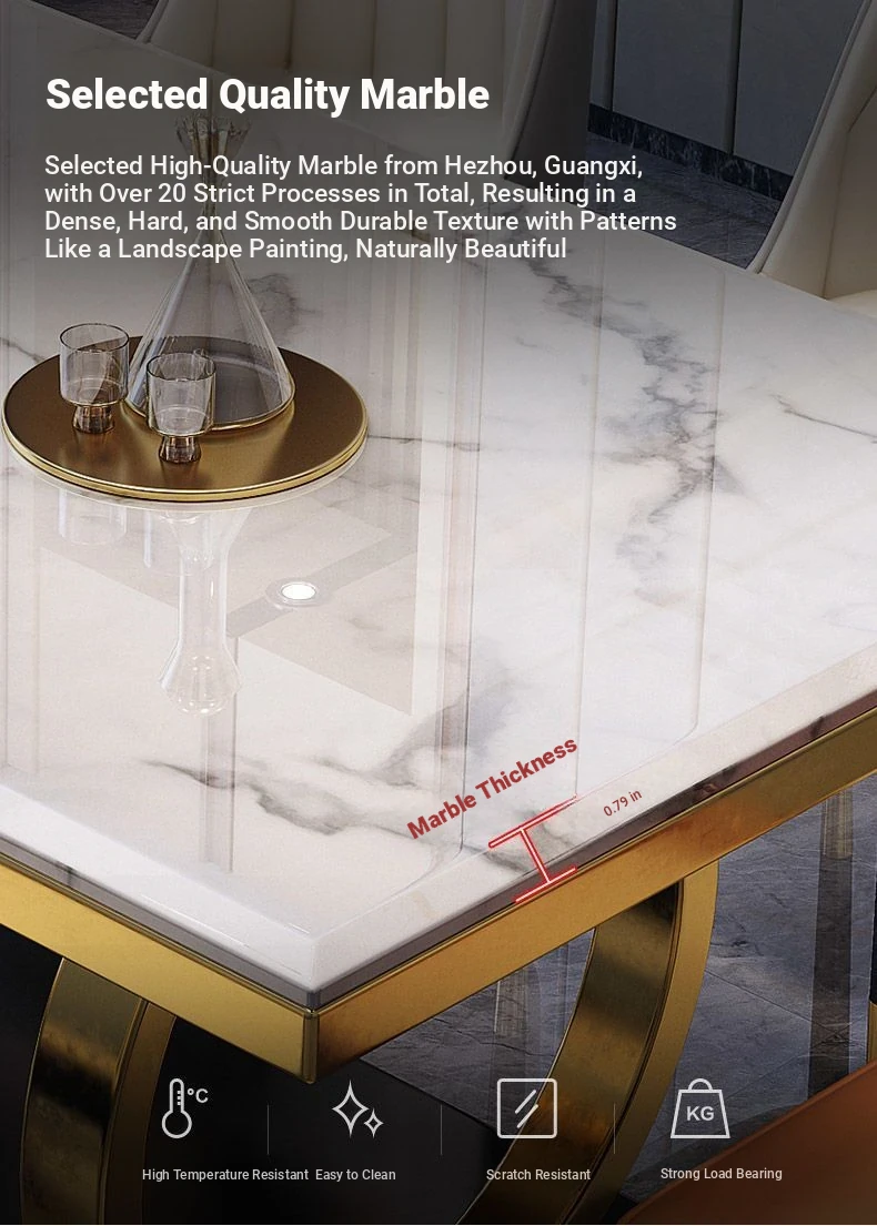Stylish Rectangular Marble Dining Table Set with Chairs for Small Spaces – Durable Ceramic Surface & Rust-Resistant Stainless Steel Legs – Perfect for Modern Home Dining