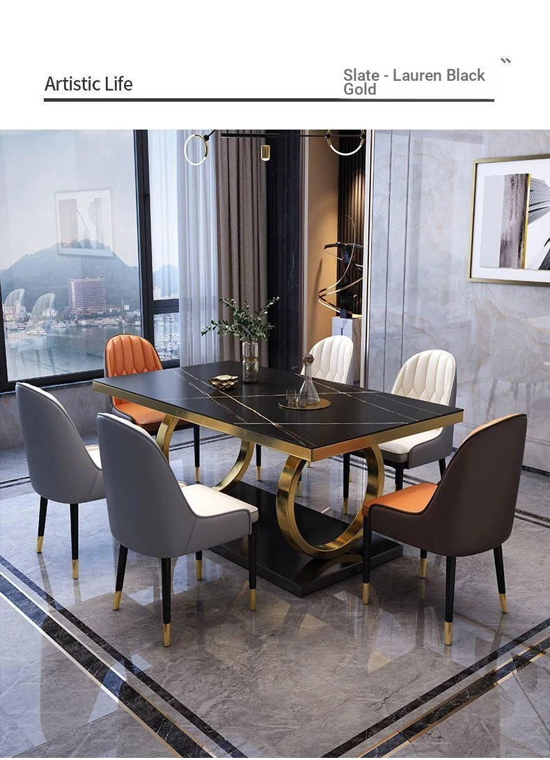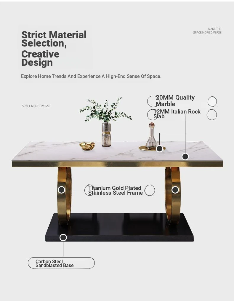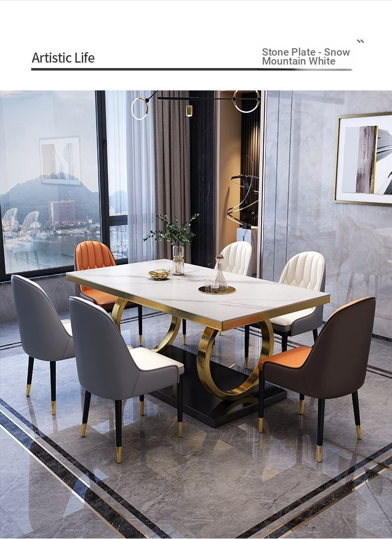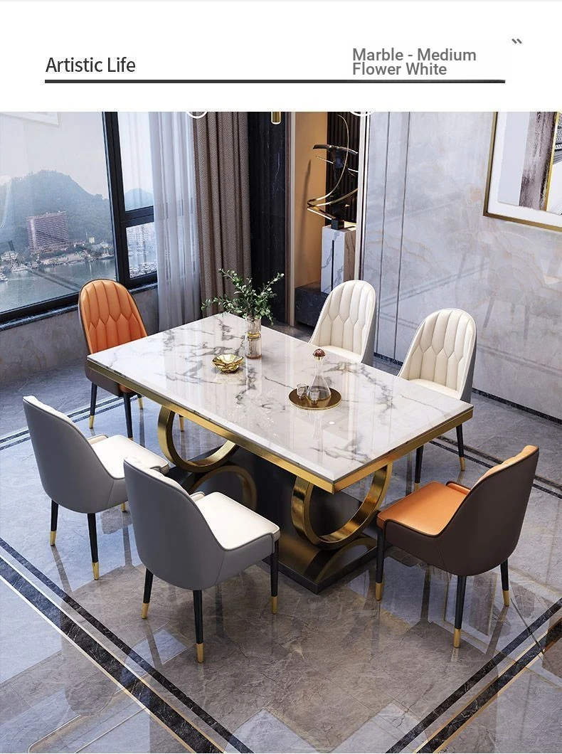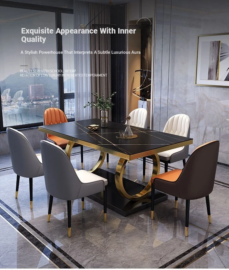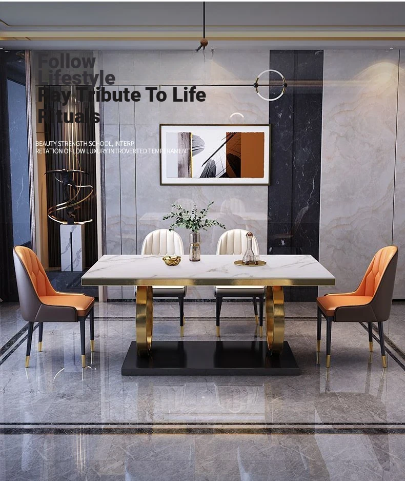 Stylish Rectangular Marble Dining Table Set with Chairs for Small Spaces – Durable Ceramic Surface & Rust-Resistant Stainless Steel Legs – Perfect for Modern Home Dining