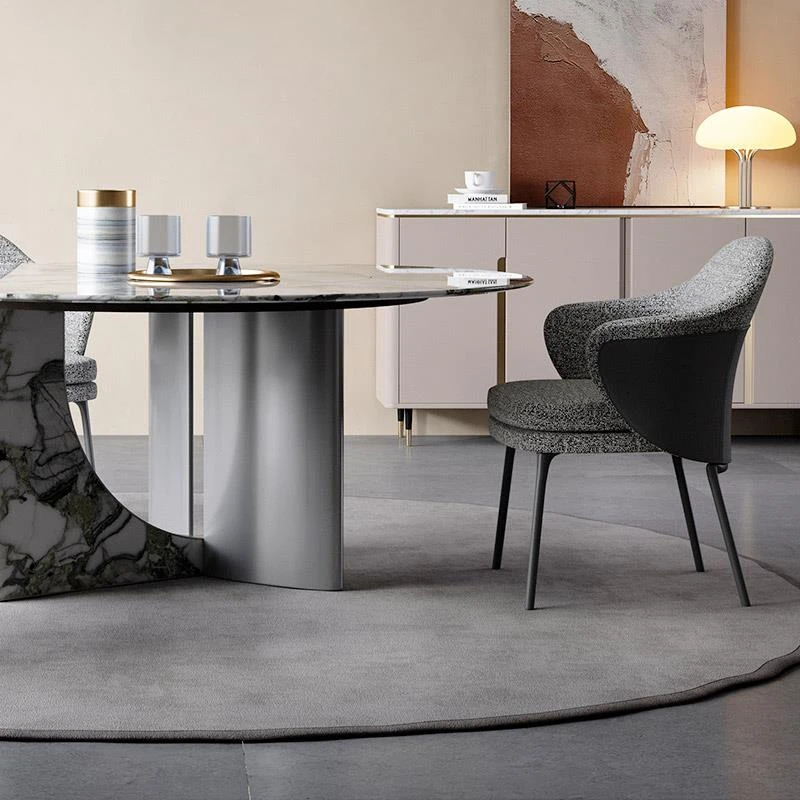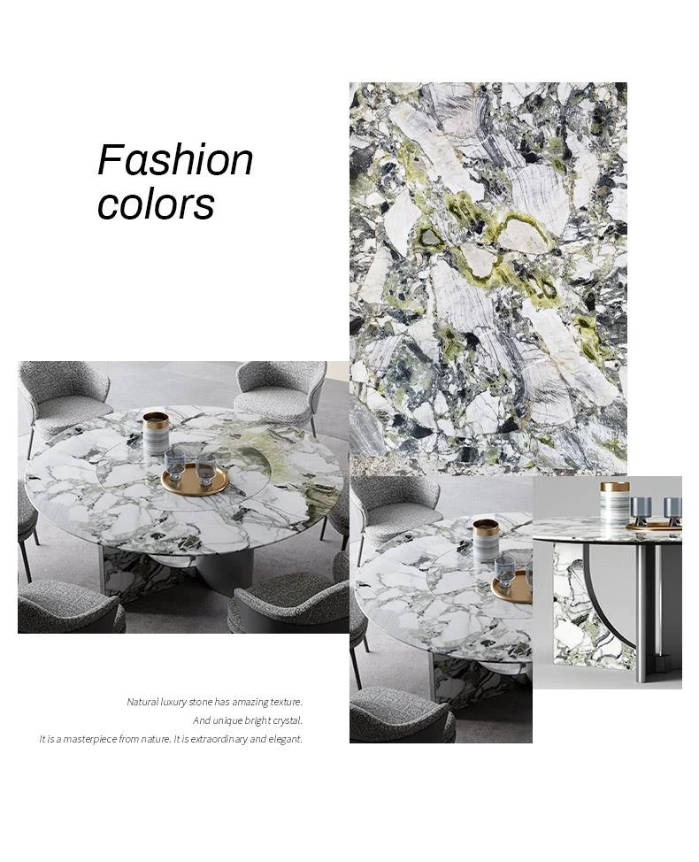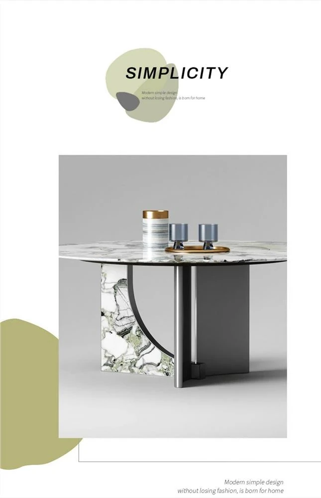 Natural marble round table [59.06 in with turntable] +8 dining chairs