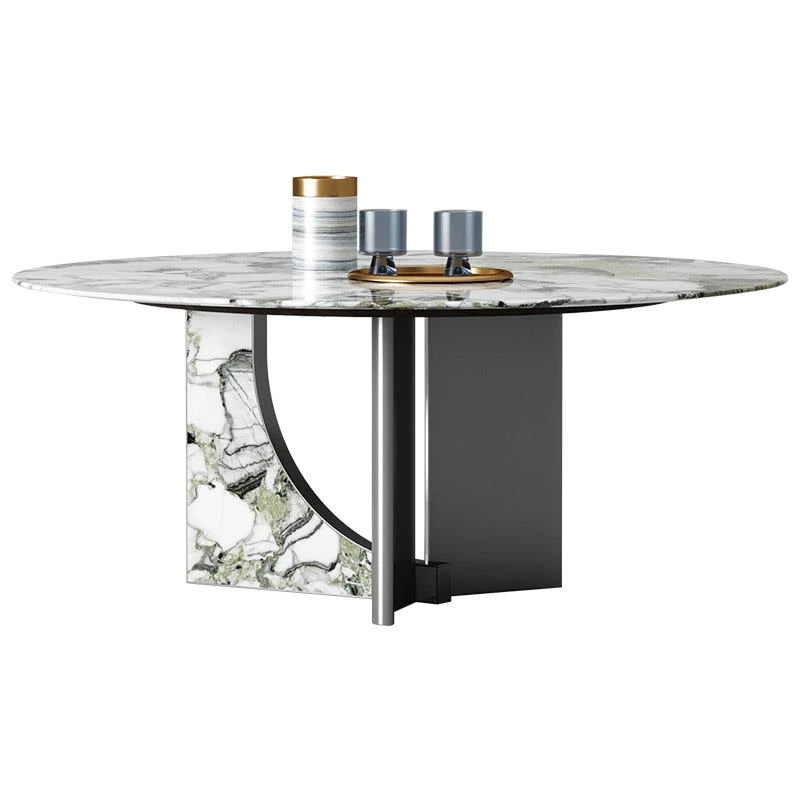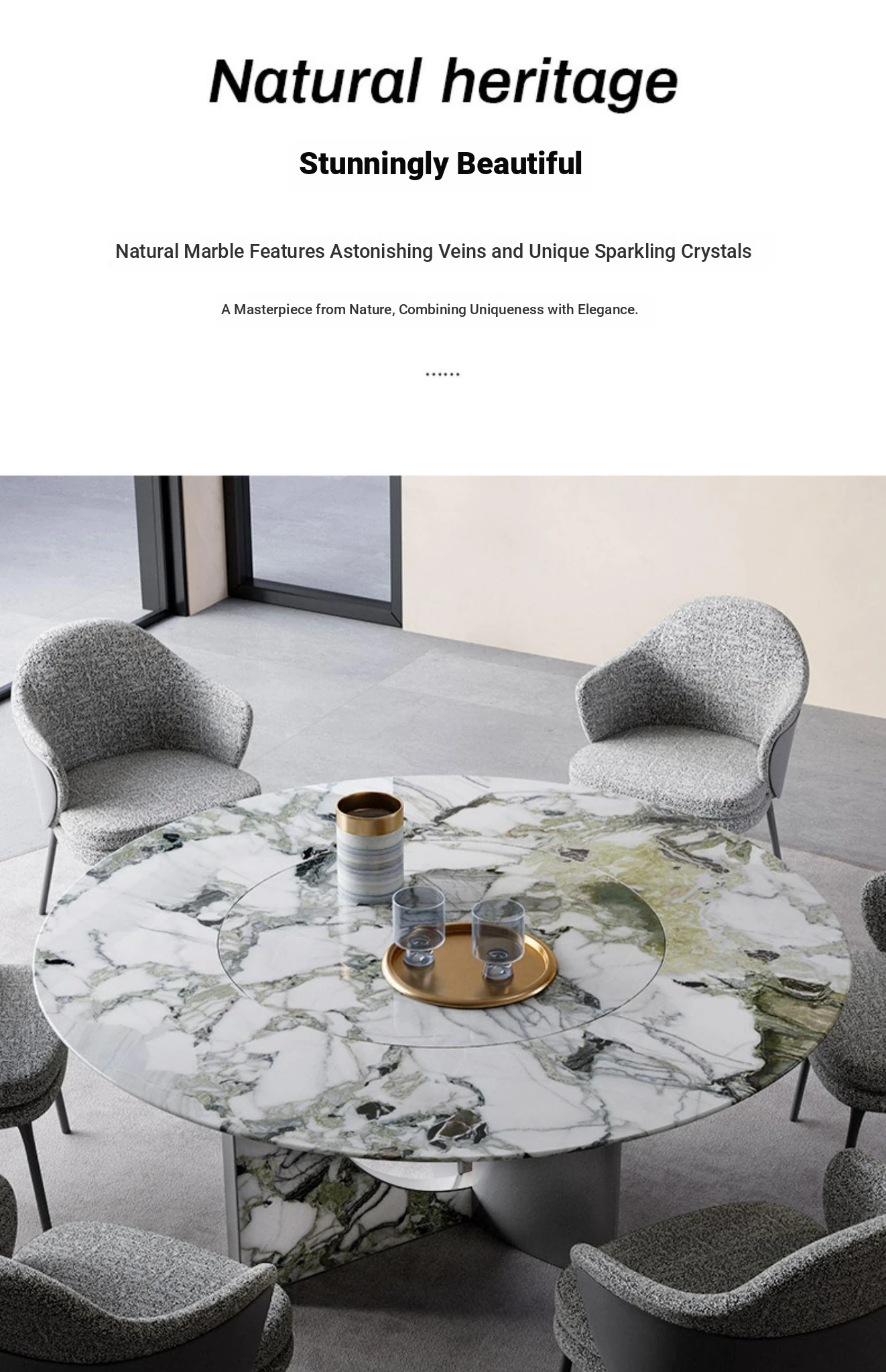 Natural marble round table [59.06 in without turntable] +8 dining chairs